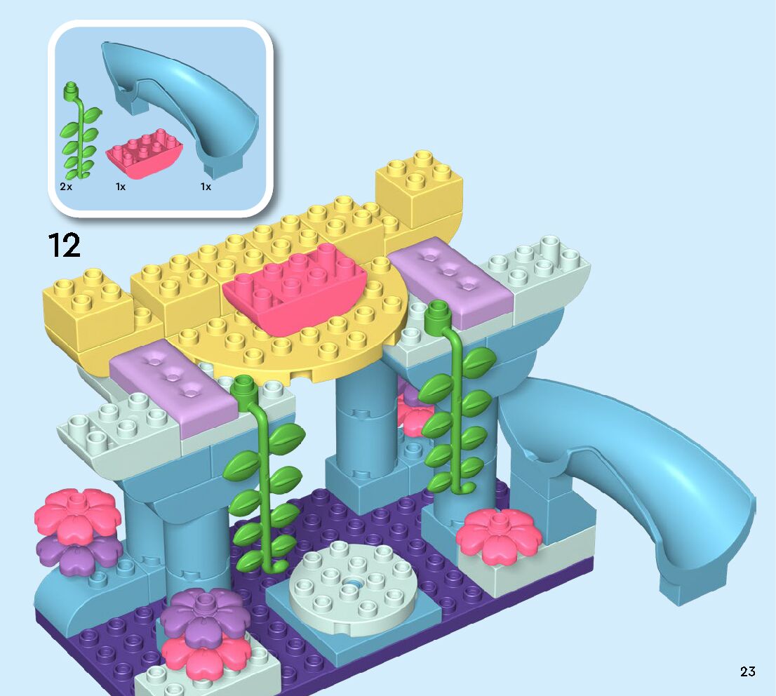 On this page you can find the original construction manual for the LEGO 10435 set. With the assembly manual you can easily learn how to build the 10435 Ariel's Magical Underwater Palace step by step. The set was released in 2024.
