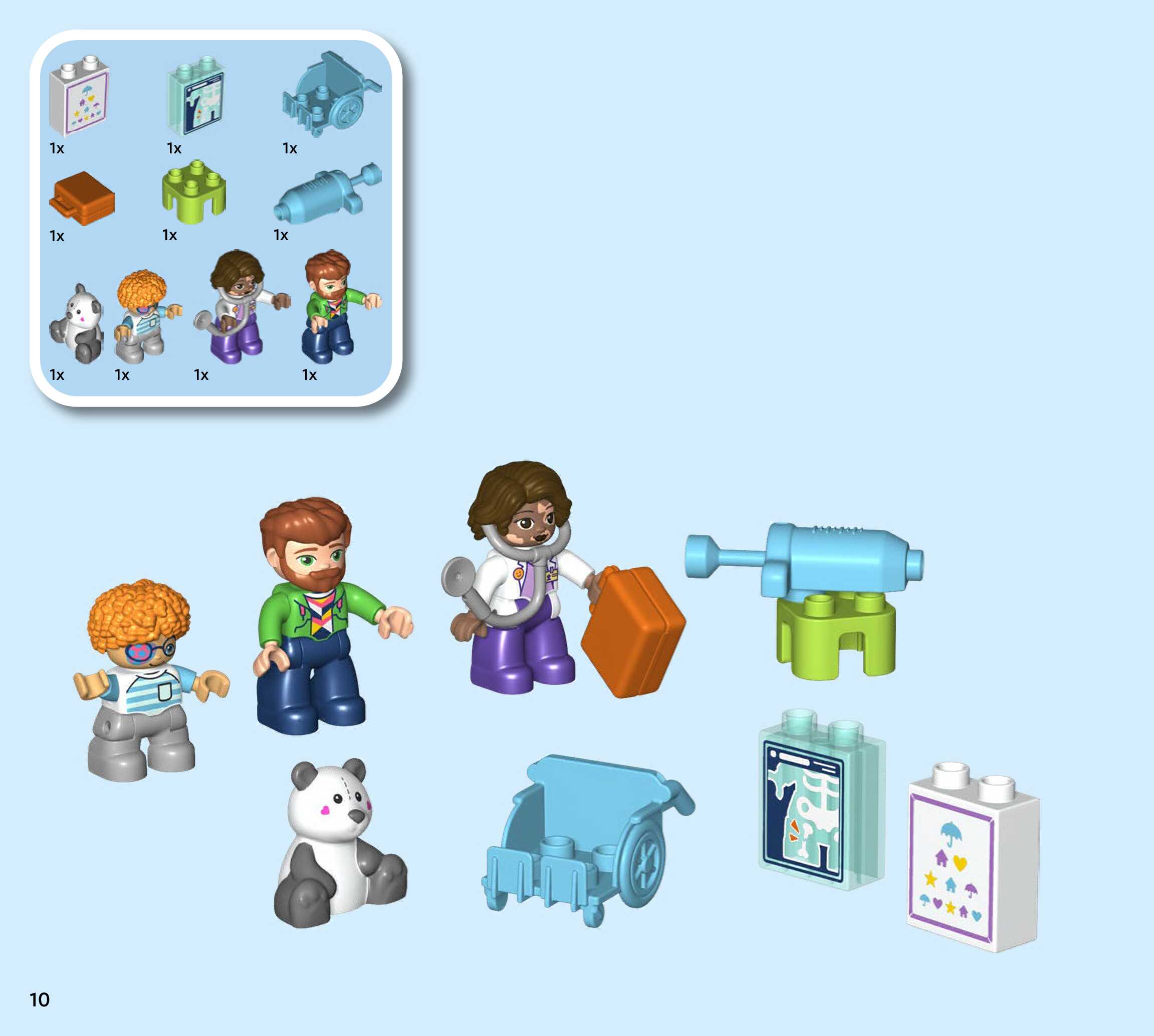 On this page you can find the original construction manual for the LEGO 10449 set. With the assembly manual you can easily learn how to build the First Time: Visit with the Doctor step by step. The set was released in 2025.