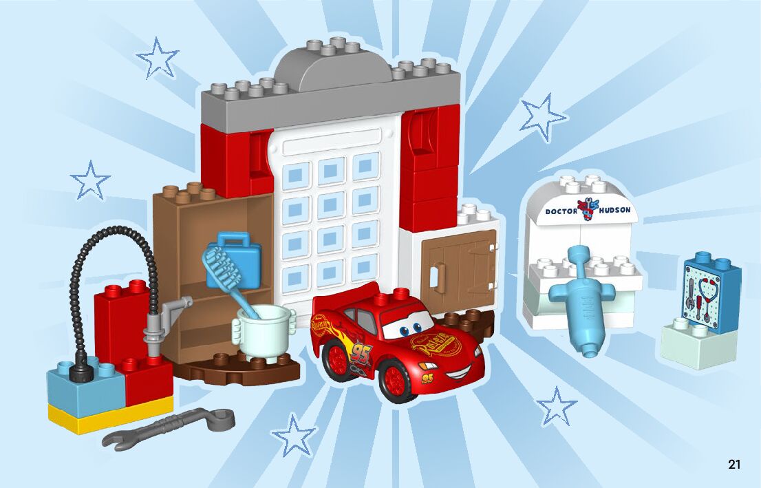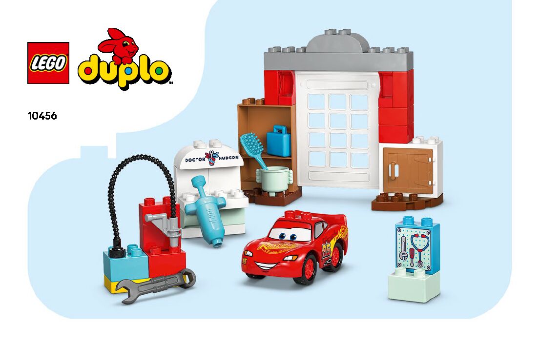 On this page you can find the original construction manual for the LEGO 10456 set. With the assembly manual you can easily learn how to build the McQueen's Visit to Doc's Garage step by step. The set was released in 2025.