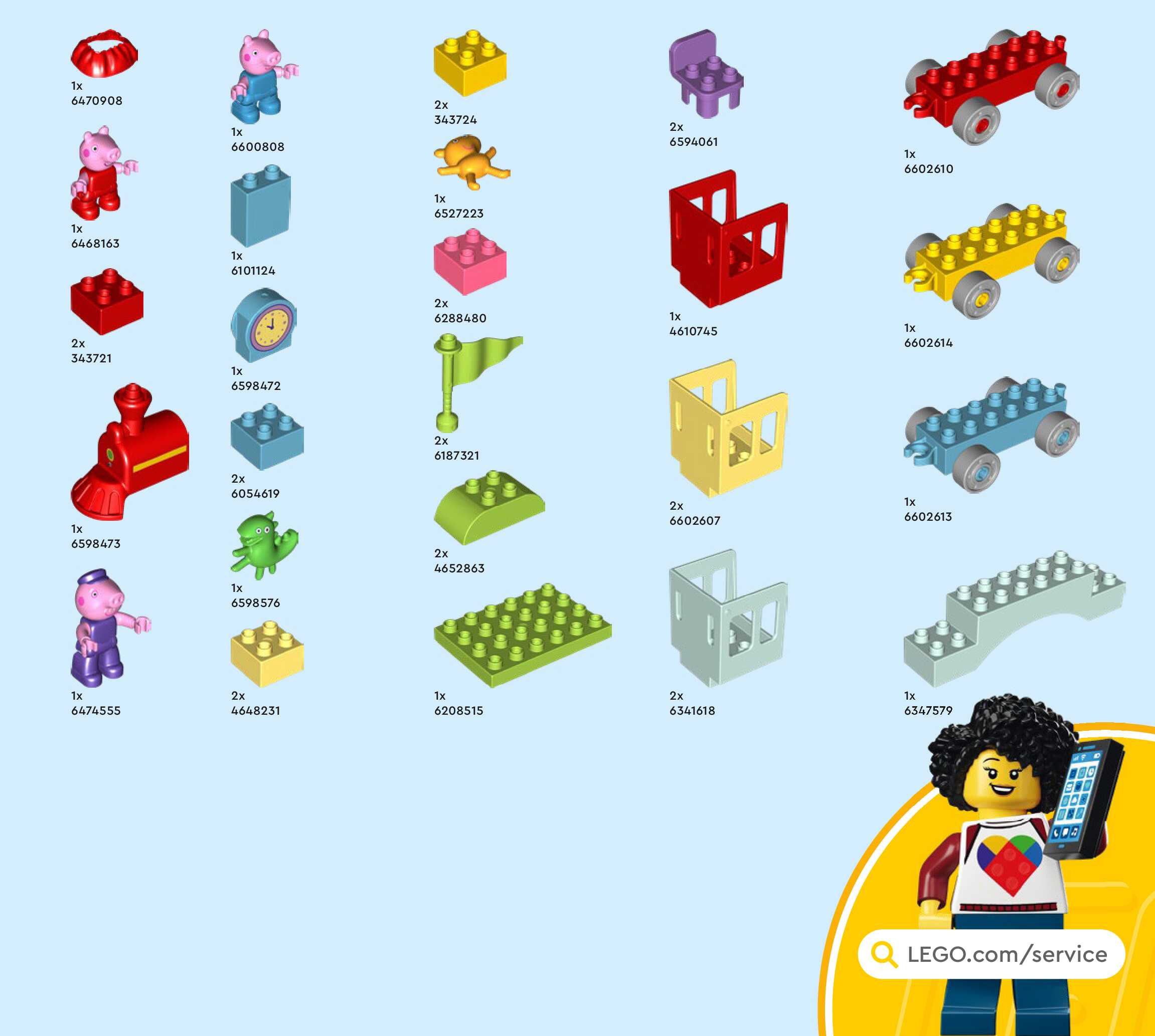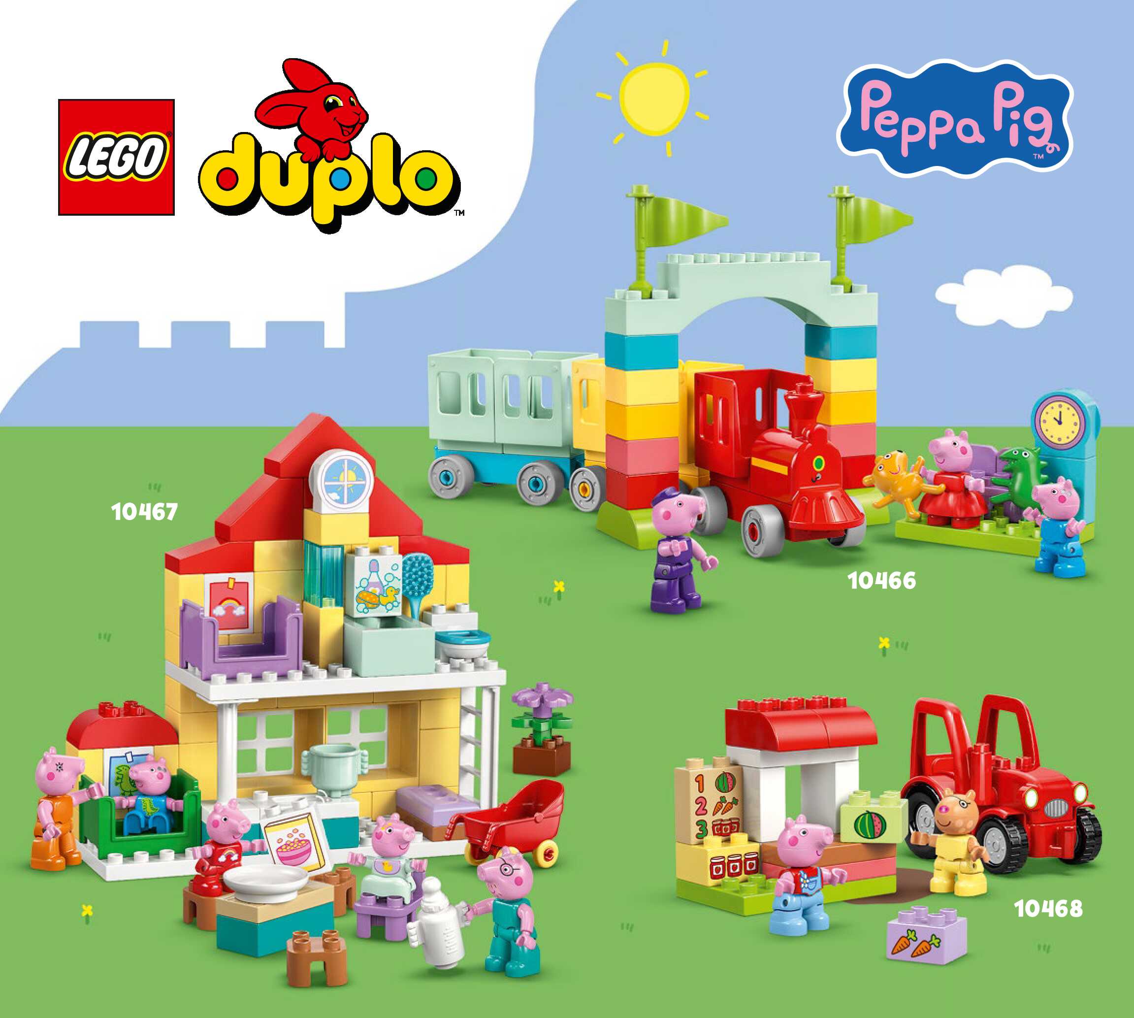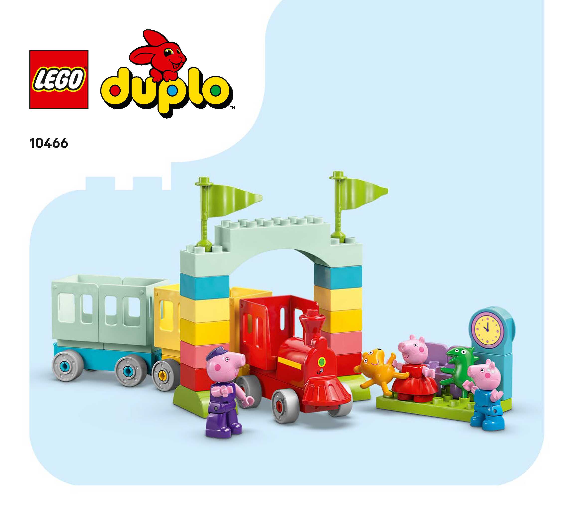 On this page you can find the original construction manual for the LEGO 10466 set. With the assembly manual you can easily learn how to build the Train Ride with Grandpa Pig step by step. The set was released in 2026.