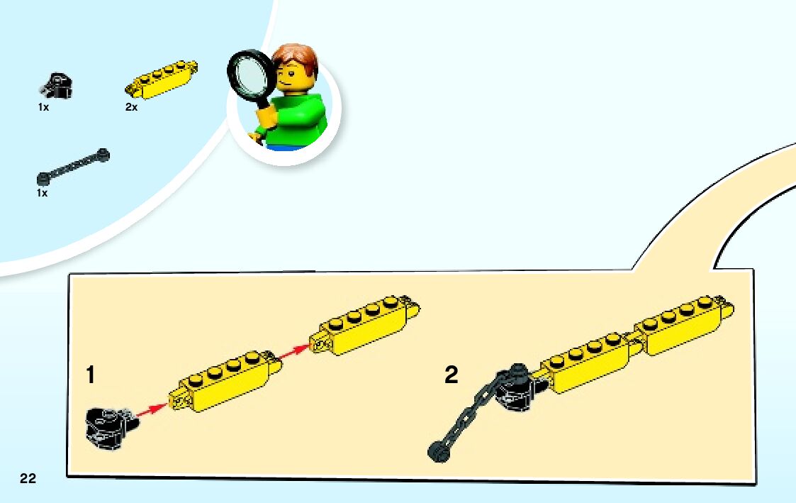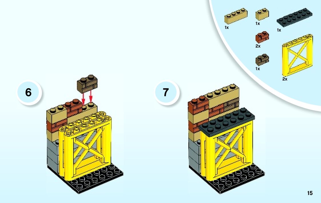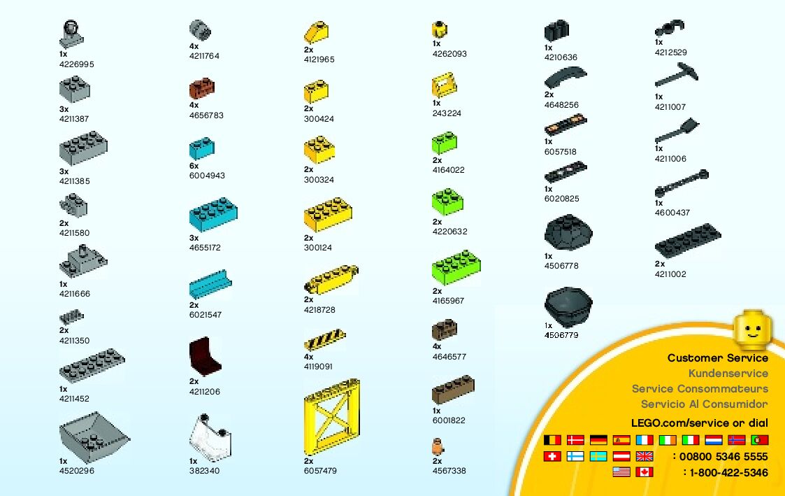 The assembly guide is prepared in a very understandable way for children and adult LEGO enthusiasts. A total of 65 picture galleries are shown, explaining the step-by-step construction stages for 3 different structures.