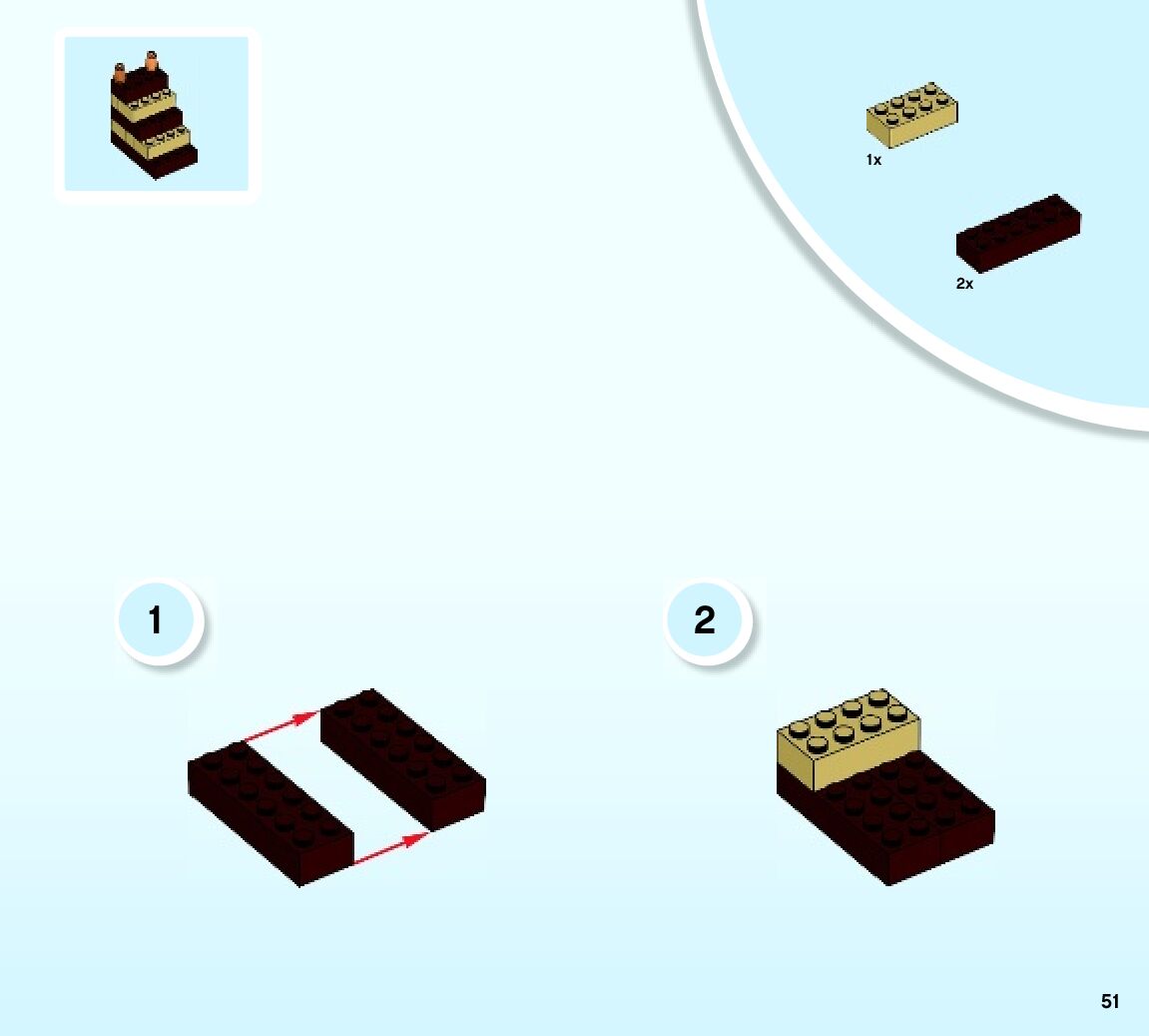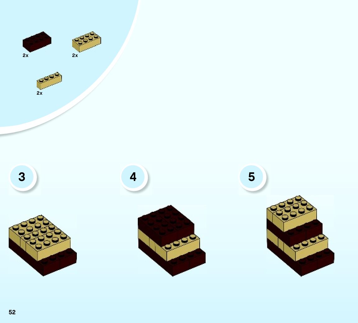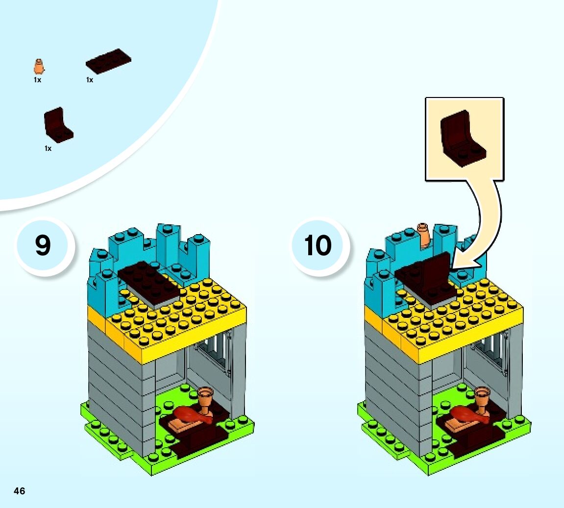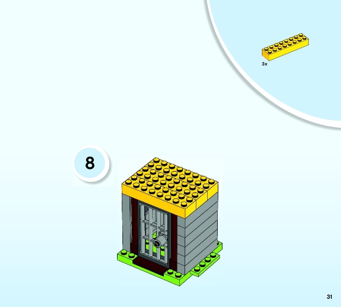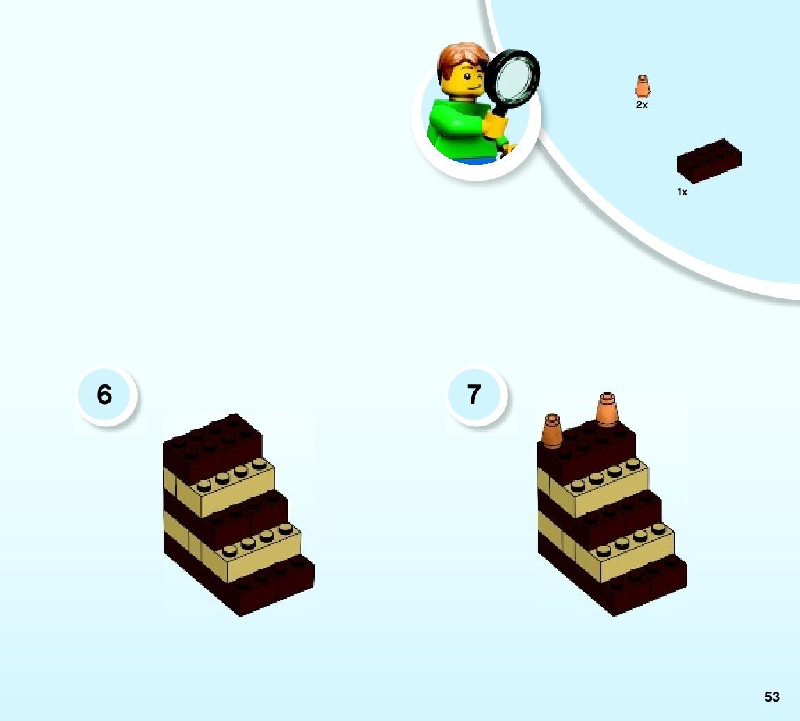 The assembly guide is prepared in a very understandable way for children and adult LEGO enthusiasts. A total of 101 picture galleries are shown, explaining the step-by-step construction stages for 3 different structures.