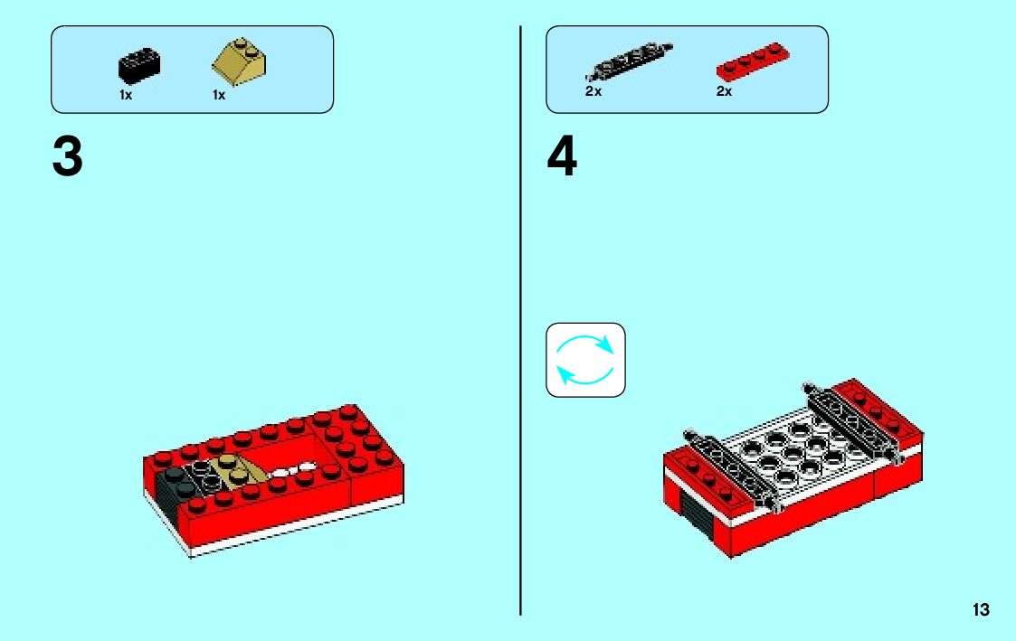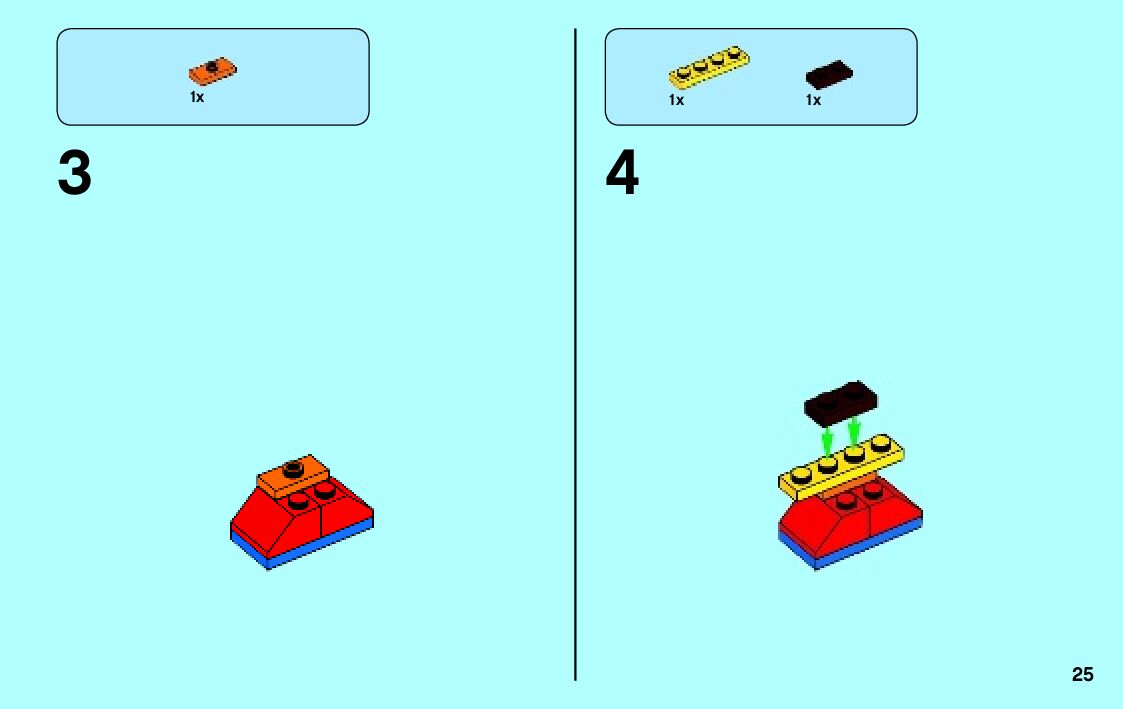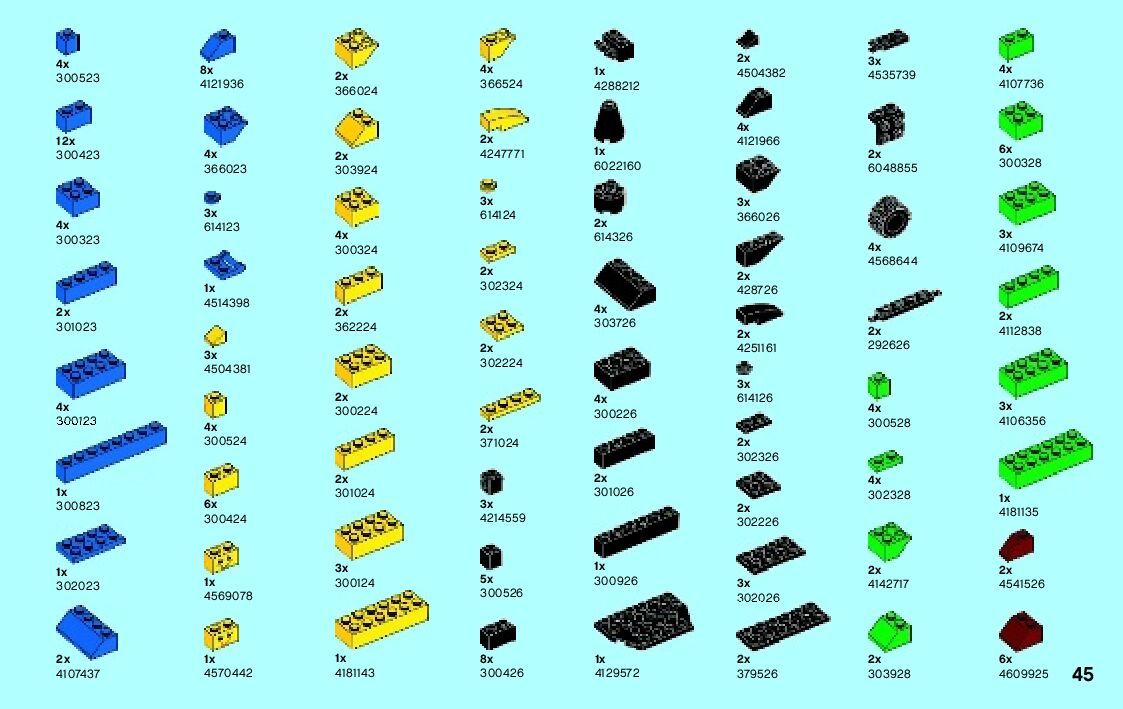 The assembly guide is prepared in a very understandable way for children and adult LEGO enthusiasts. A total of 48 picture galleries are shown, explaining the step-by-step construction stages for 1 different structures.