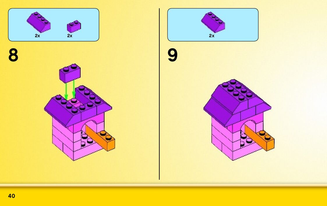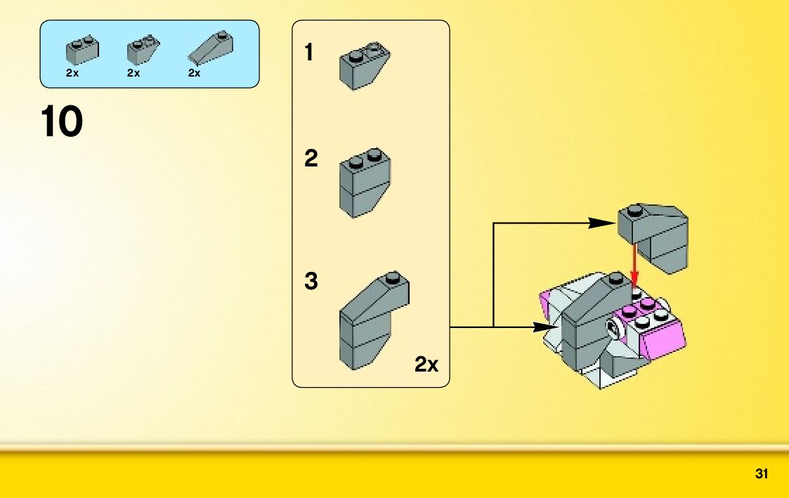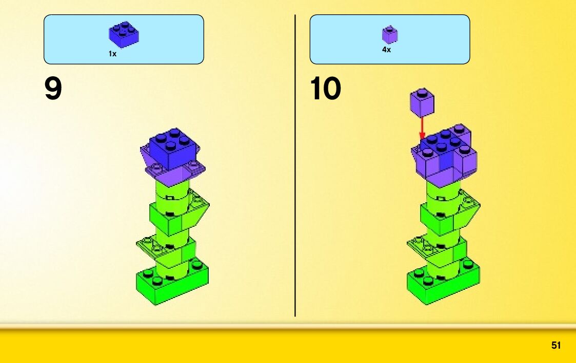 The assembly guide is prepared in a very understandable way for children and adult LEGO enthusiasts. A total of 71 picture galleries are shown, explaining the step-by-step construction stages for 2 different structures.