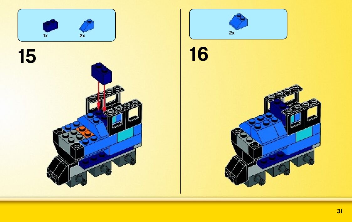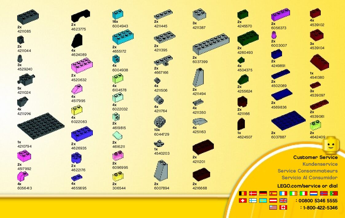 The assembly guide is prepared in a very understandable way for children and adult LEGO enthusiasts. A total of 131 picture galleries are shown, explaining the step-by-step construction stages for 6 different structures.