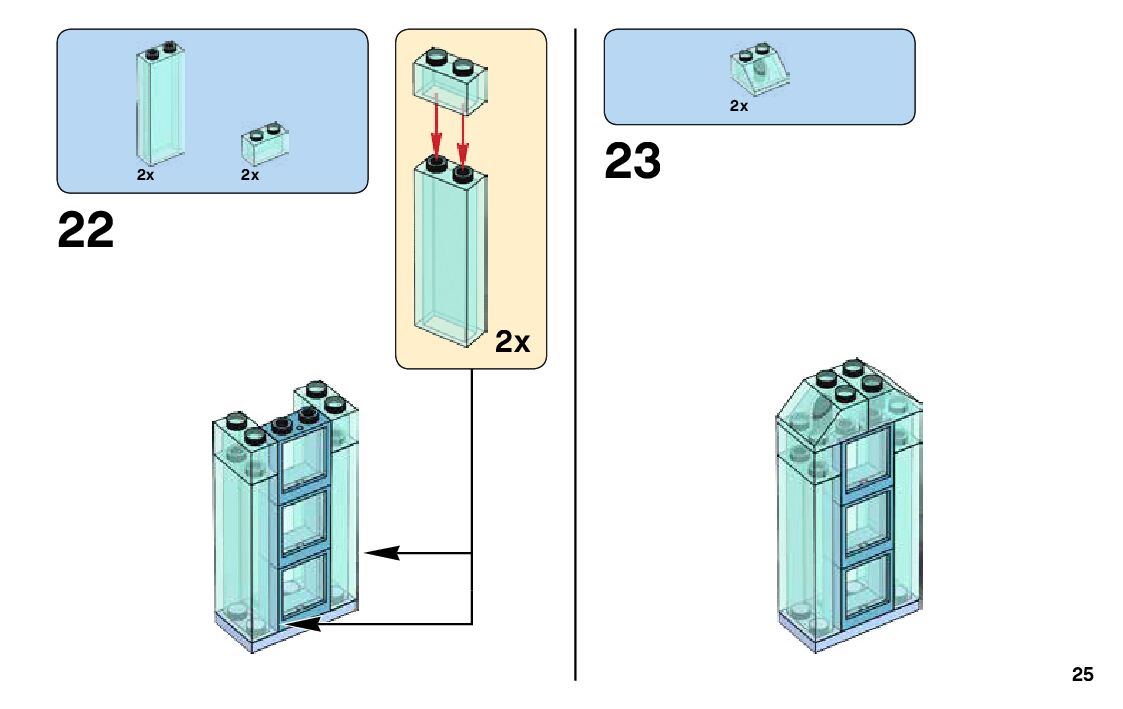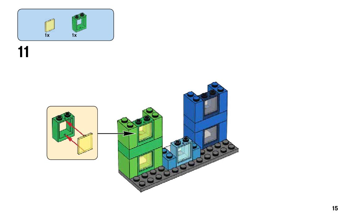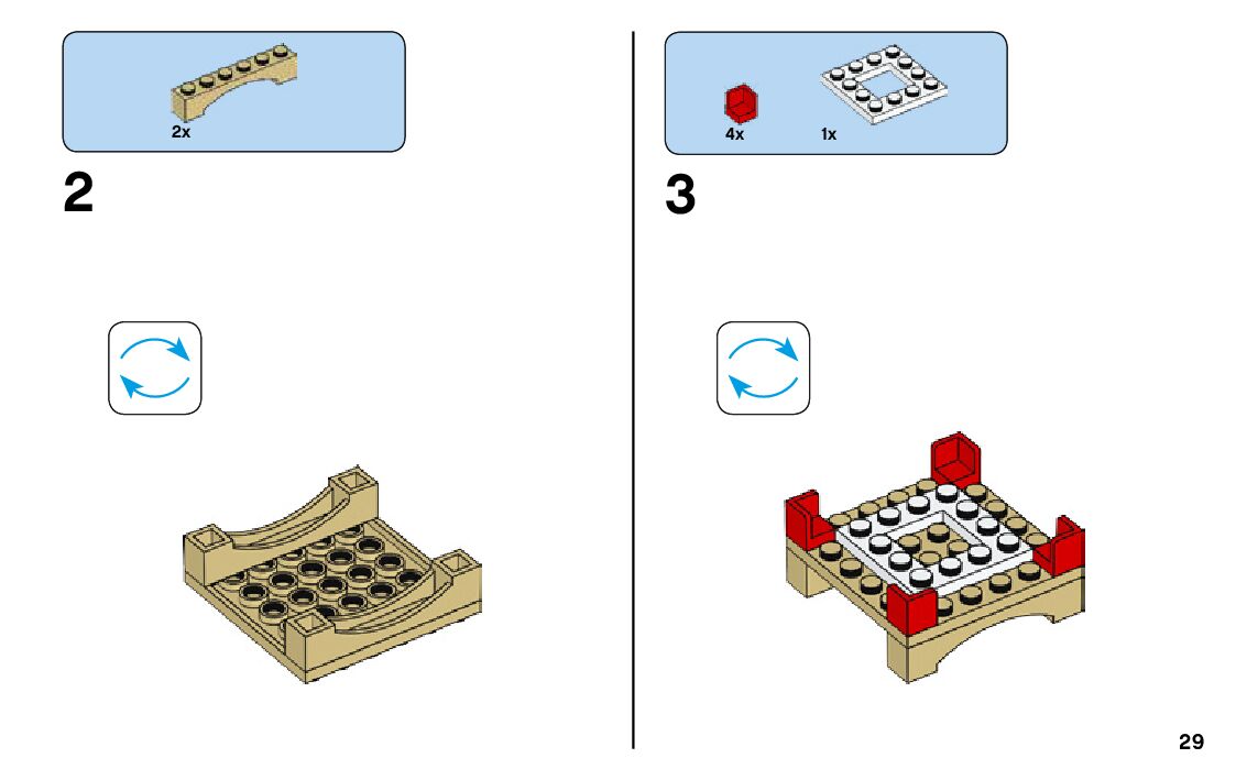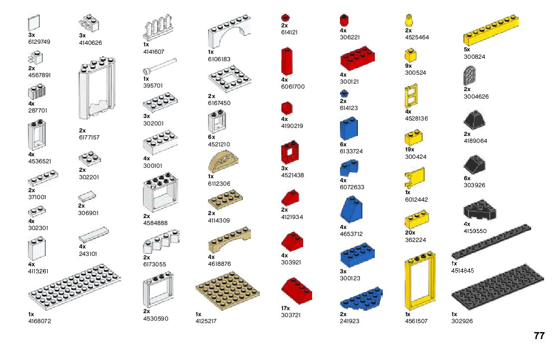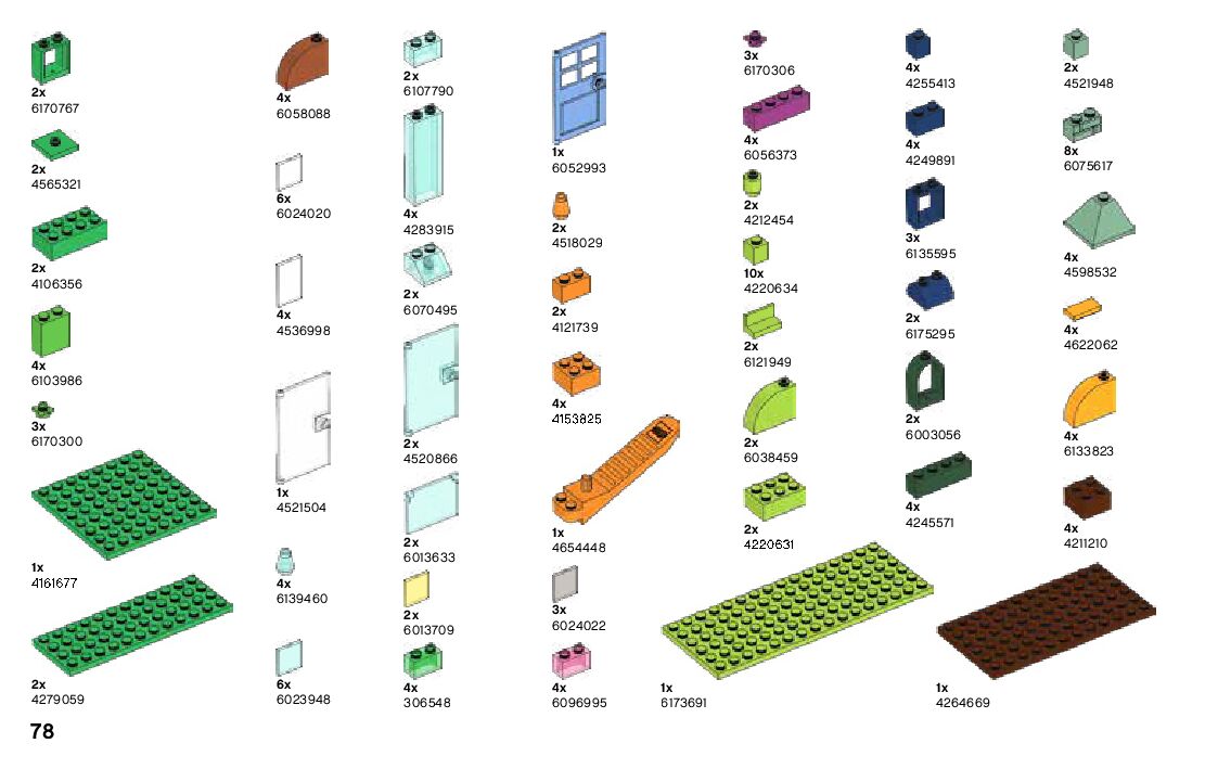 The assembly guide is prepared in a very understandable way for children and adult LEGO enthusiasts. A total of 152 picture galleries are shown, explaining the step-by-step construction stages for 4 different structures.