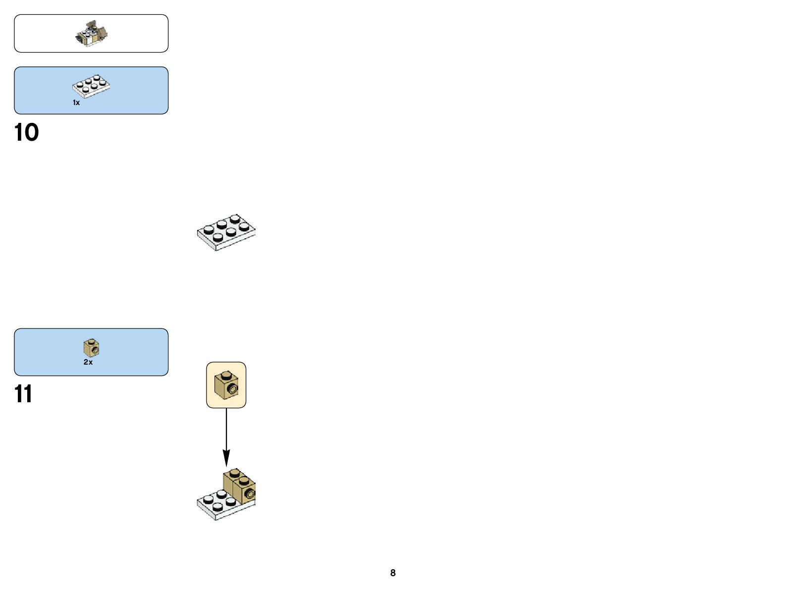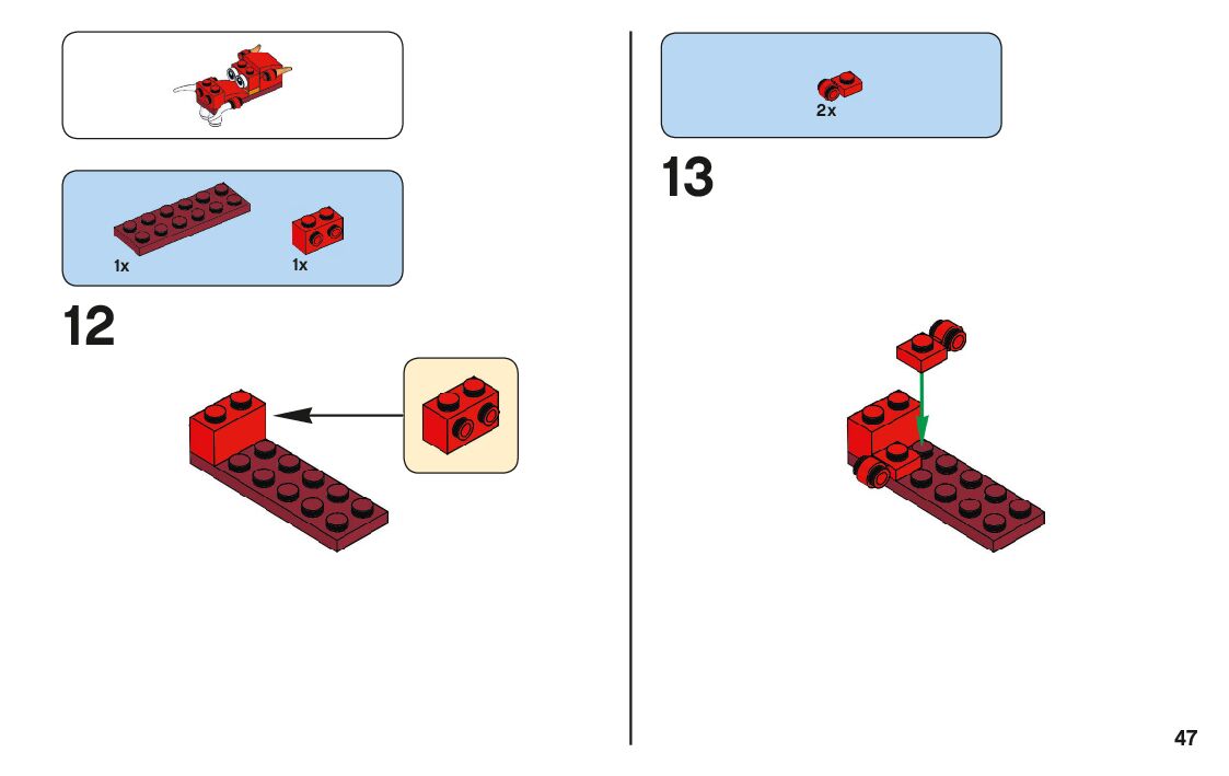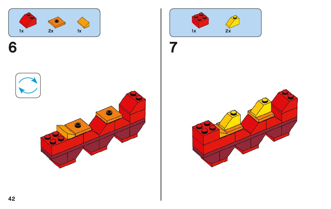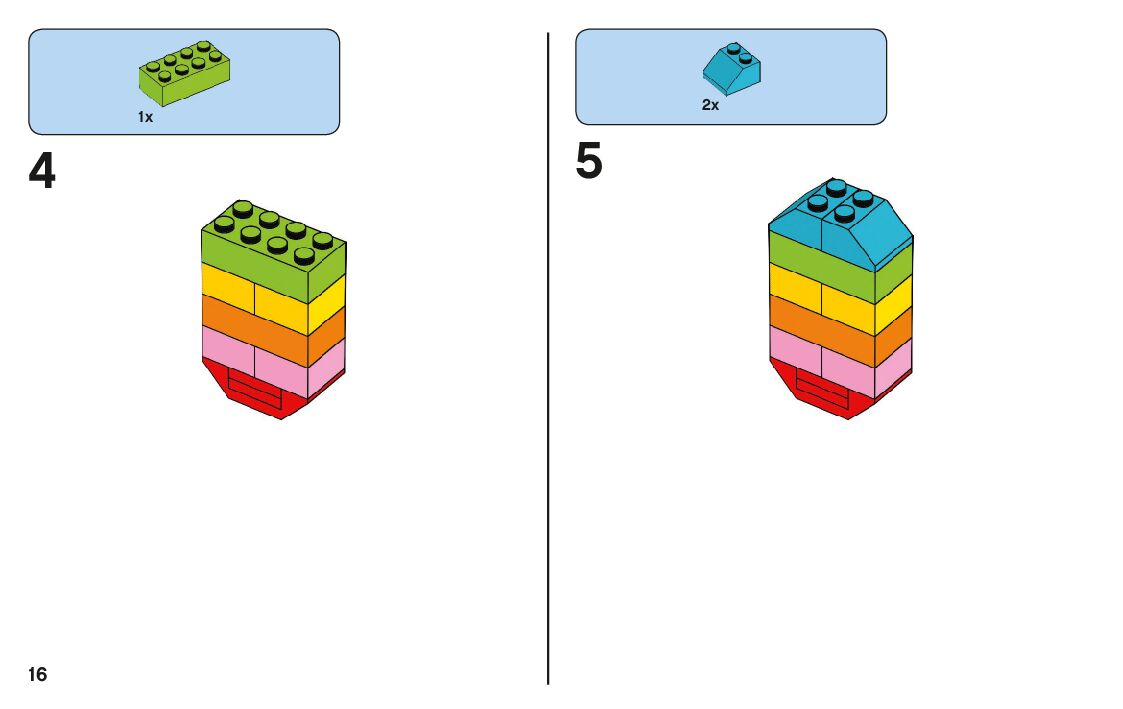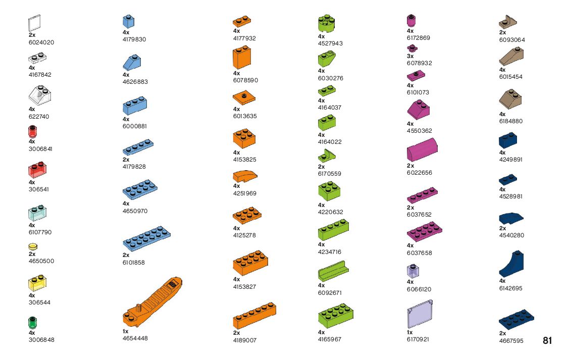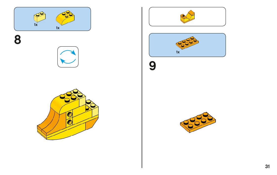 The assembly guide is prepared in a very understandable way for children and adult LEGO enthusiasts. A total of 128 picture galleries are shown, explaining the step-by-step construction stages for 4 different structures.
