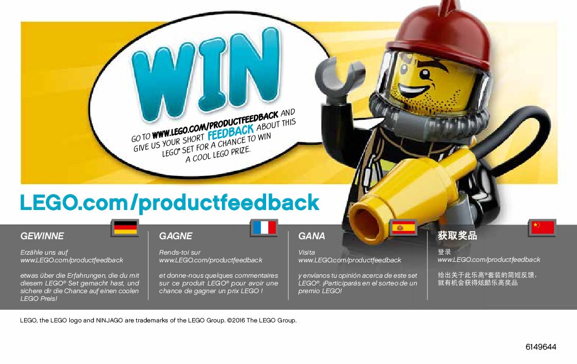 On this page you can find the original construction manual for the LEGO 10722 set. With the assembly manual you can easily learn how to build the 10722 NINJAGO Snake Showdown step by step. The set was released in 2016.