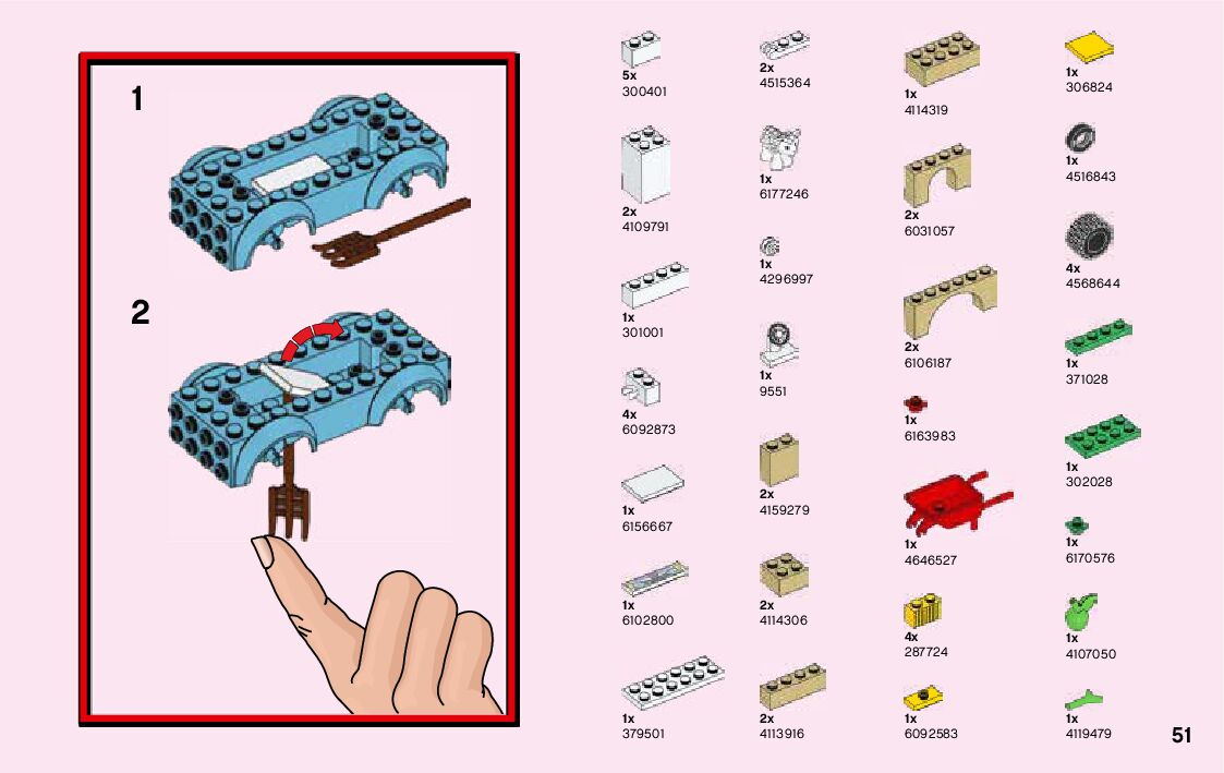 The assembly guide is prepared in a very understandable way for children and adult LEGO enthusiasts. A total of 56 picture galleries are shown, explaining the step-by-step construction stages for 1 different structures.