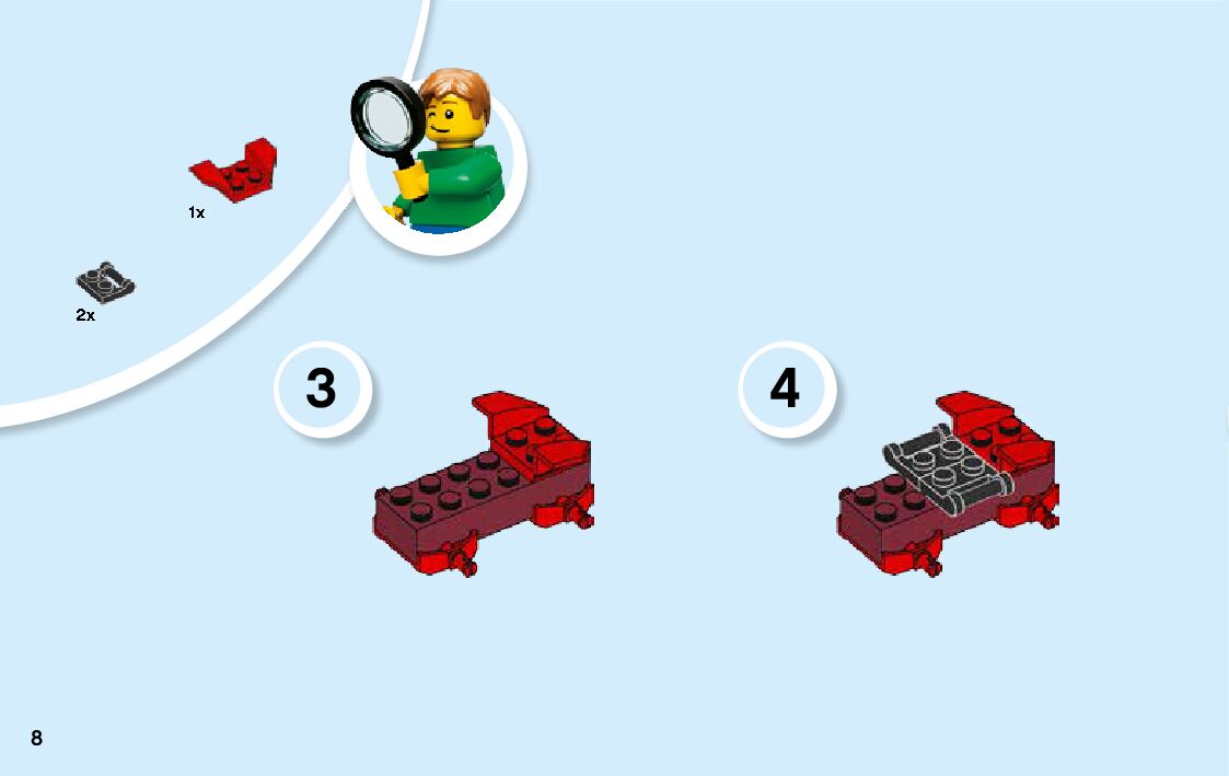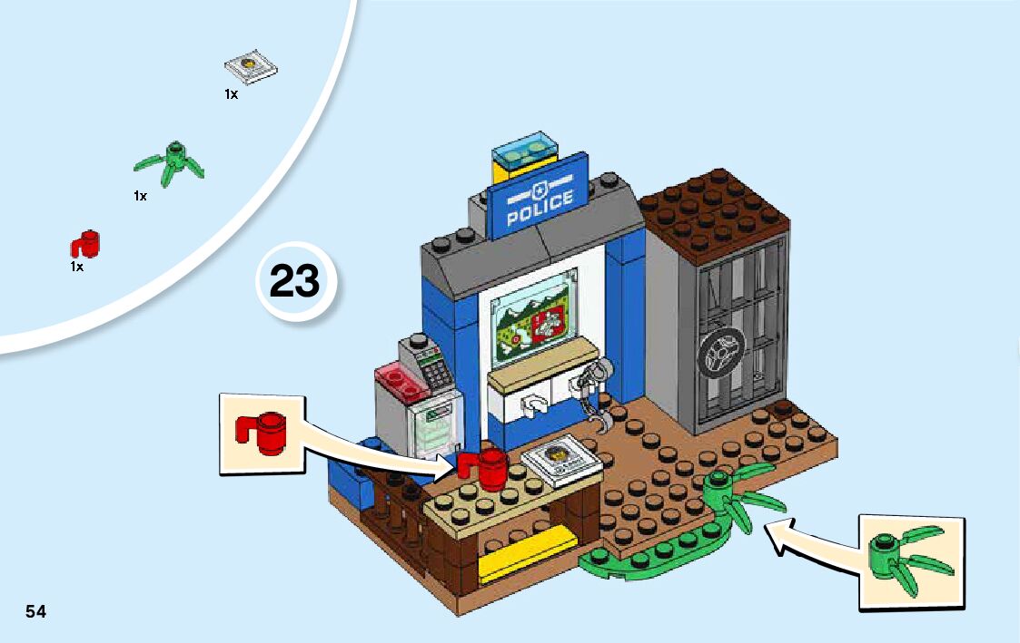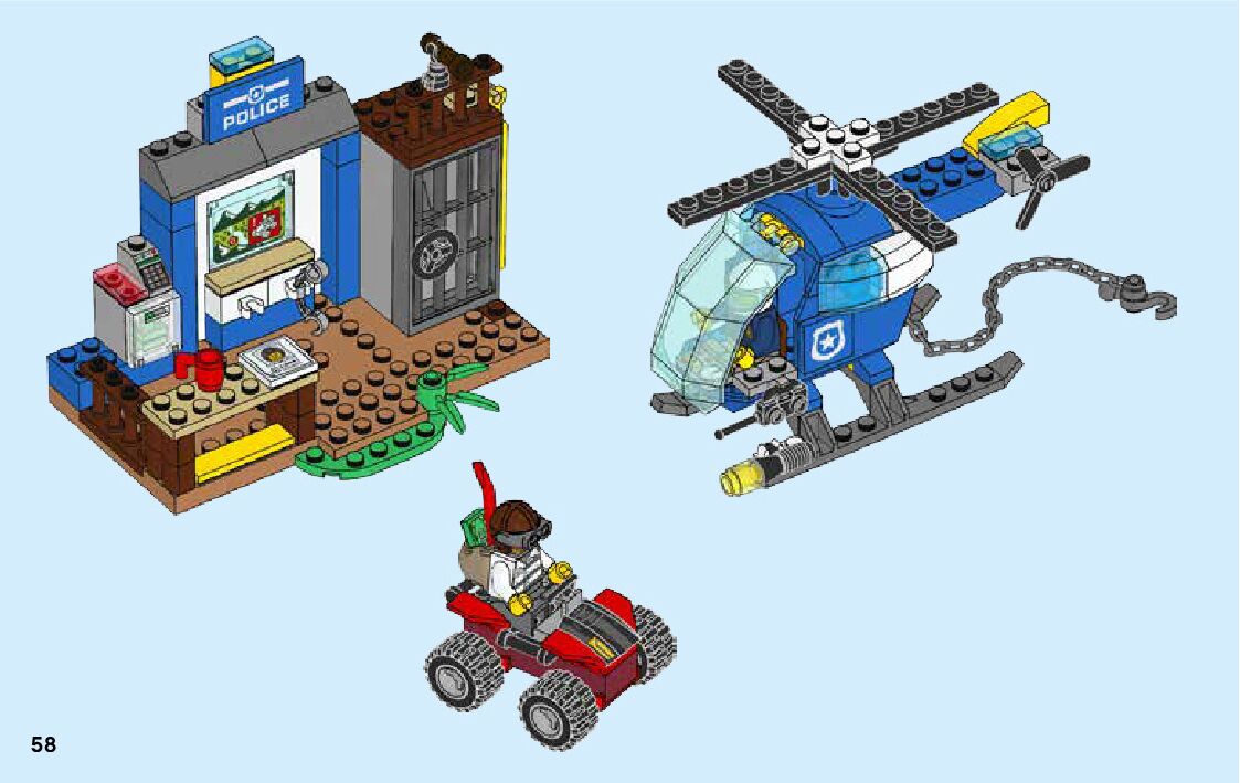 The assembly guide is prepared in a very understandable way for children and adult LEGO enthusiasts. A total of 64 picture galleries are shown, explaining the step-by-step construction stages for 1 different structures.