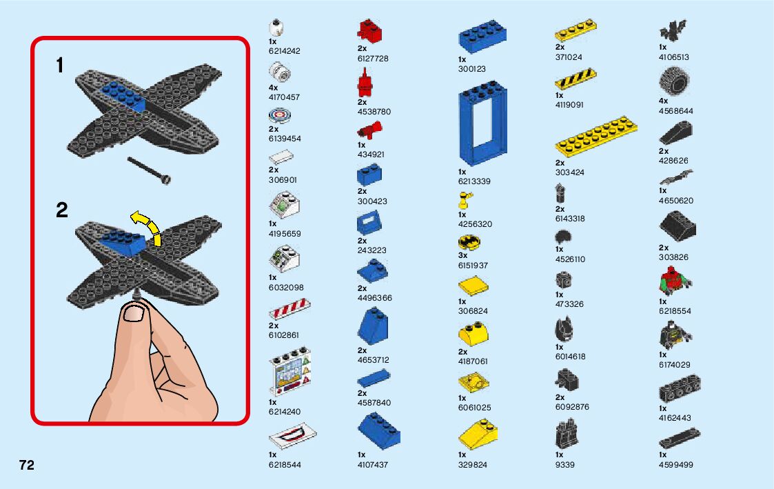 The assembly guide is prepared in a very understandable way for children and adult LEGO enthusiasts. A total of 76 picture galleries are shown, explaining the step-by-step construction stages for 1 different structures.