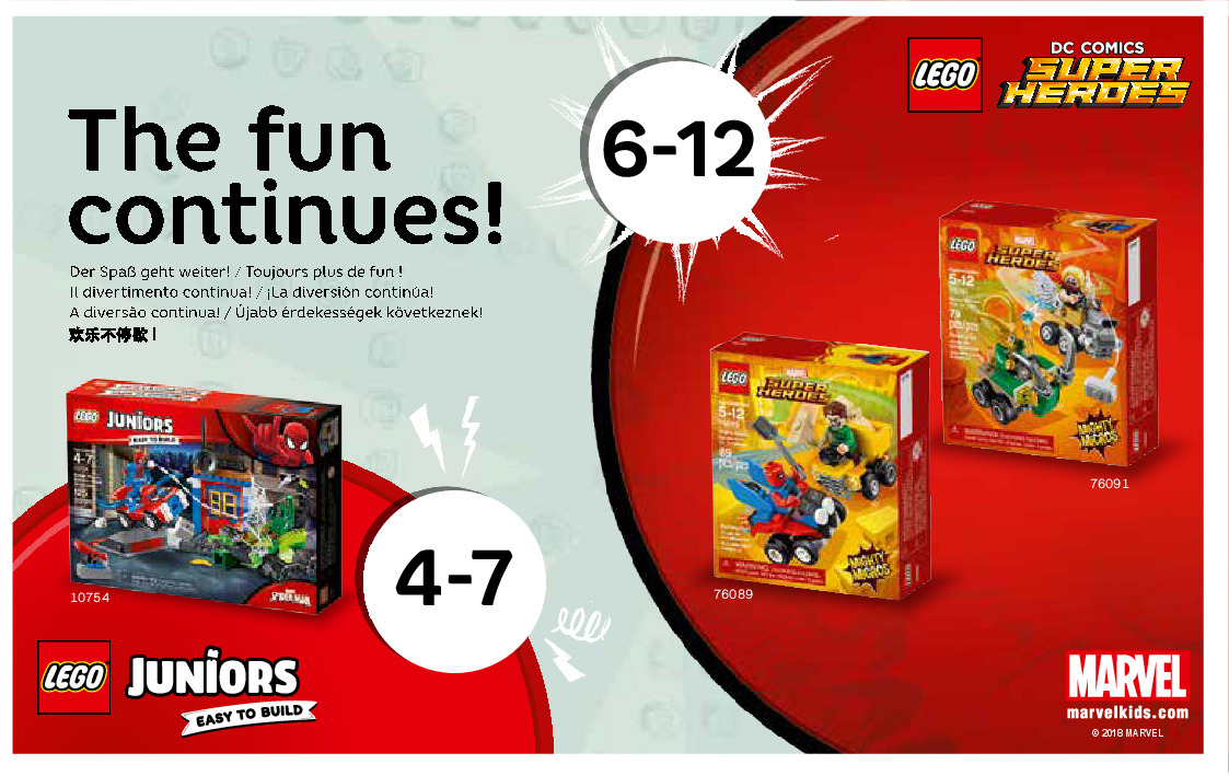 On this page you can find the original construction manual for the LEGO 10754 set. With the assembly manual you can easily learn how to build the 10754 Spider-Man vs. Scorpion Street Showdown step by step. The set was released in 2018.