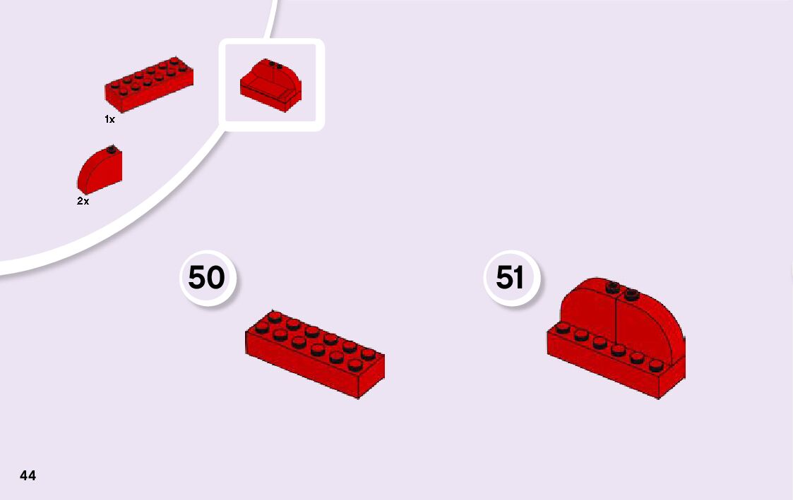 The assembly guide is prepared in a very understandable way for children and adult LEGO enthusiasts. A total of 112 picture galleries are shown, explaining the step-by-step construction stages for 2 different structures.
