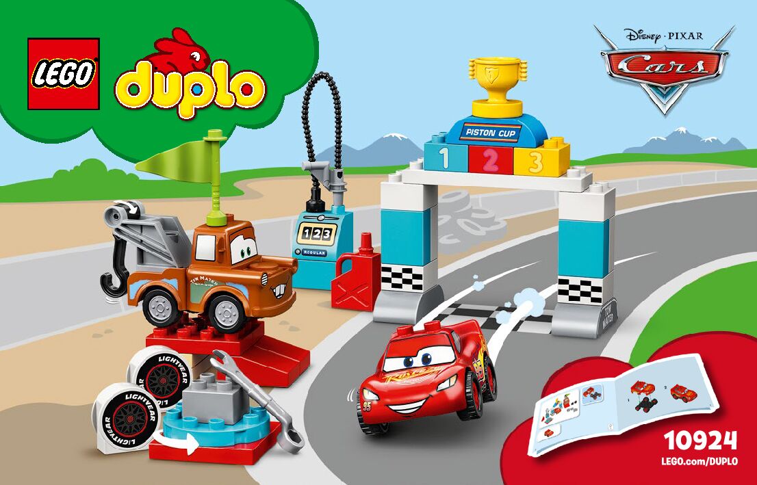 This page shares information about LEGO 10924 Lightning McQueen's Race Day manual, LEGO 10924 PDF instructions, LEGO 10924 Lightning McQueen's Race Day building guide online, How to build 10924 Lightning McQueen's Race Day LEGO.