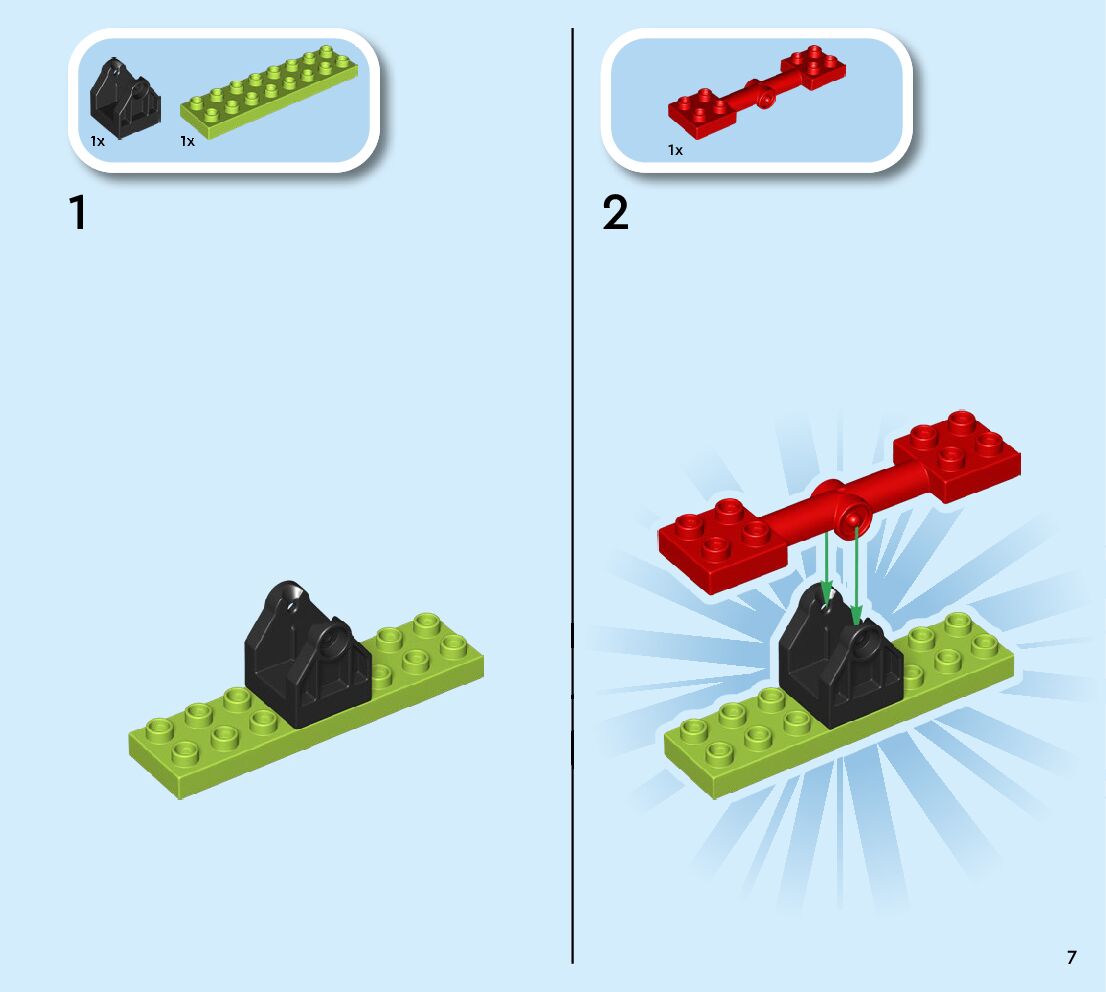 The assembly guide is prepared in a very understandable way for children and adult LEGO enthusiasts. A total of 44 picture galleries are shown, explaining the step-by-step construction stages for 1 different structures.
