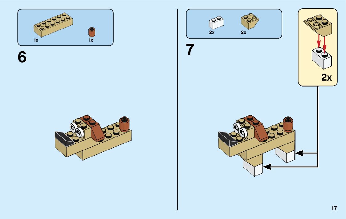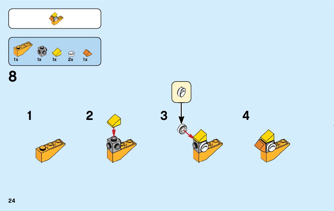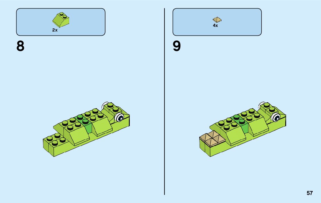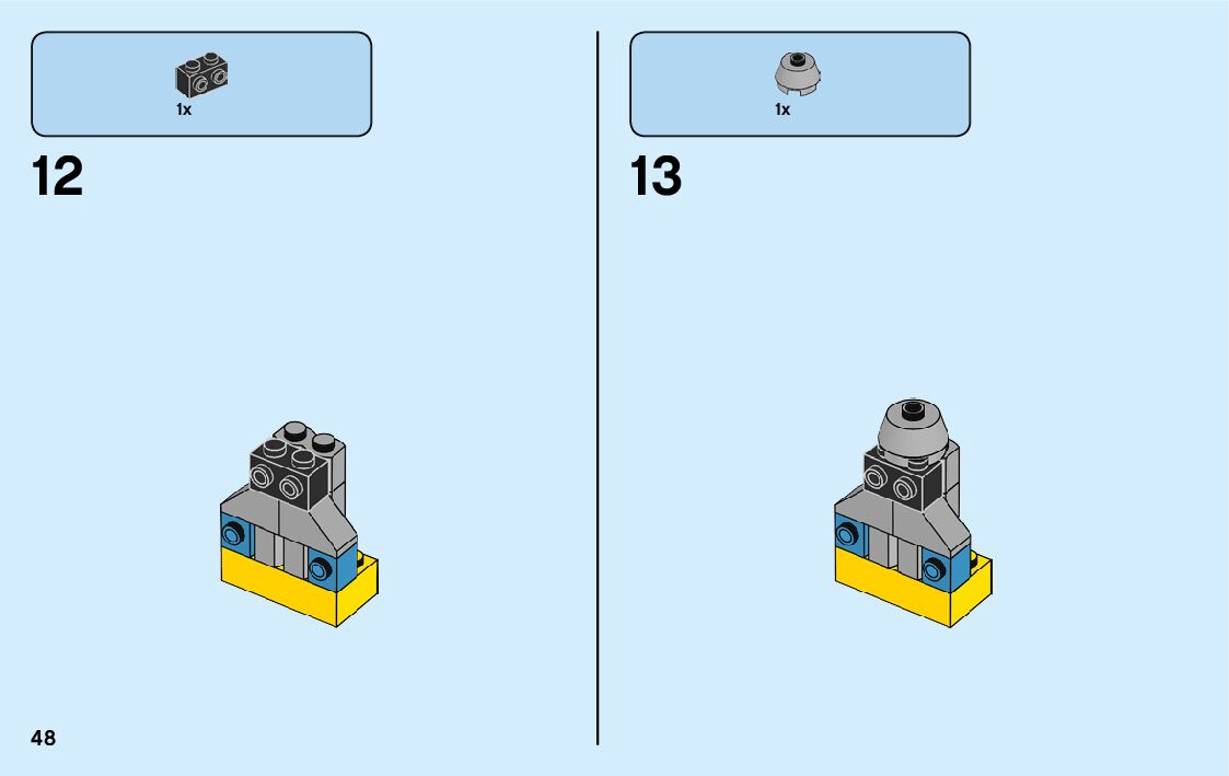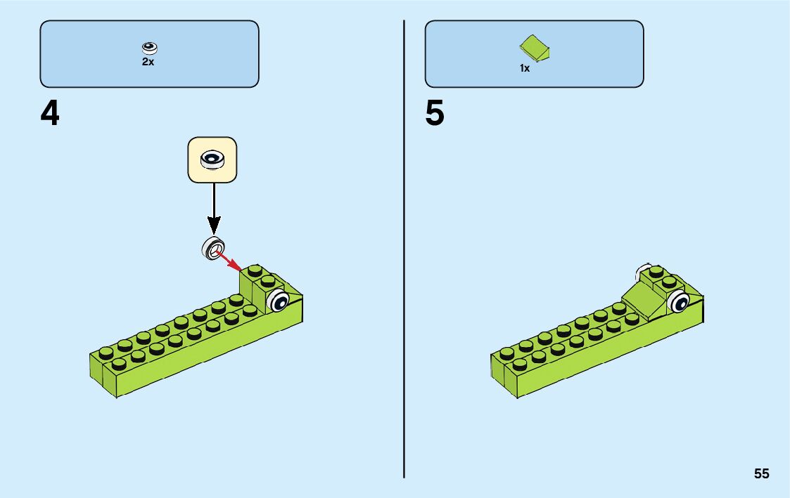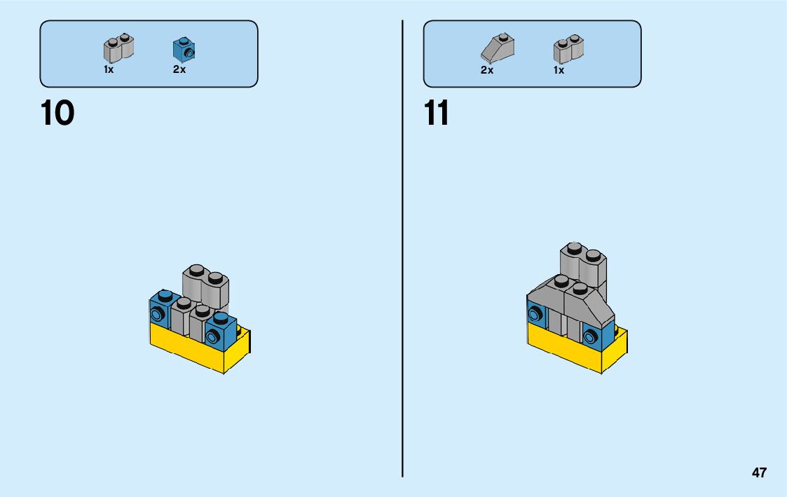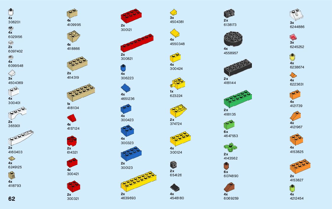 The assembly guide is prepared in a very understandable way for children and adult LEGO enthusiasts. A total of 64 picture galleries are shown, explaining the step-by-step construction stages for 1 different structures.