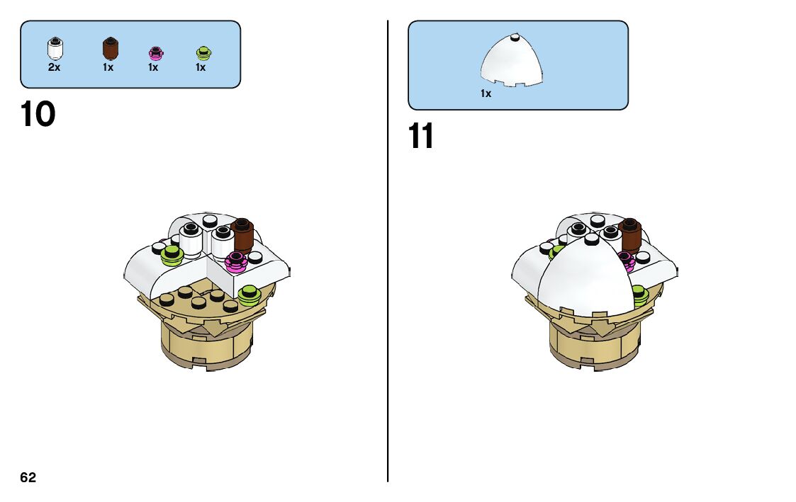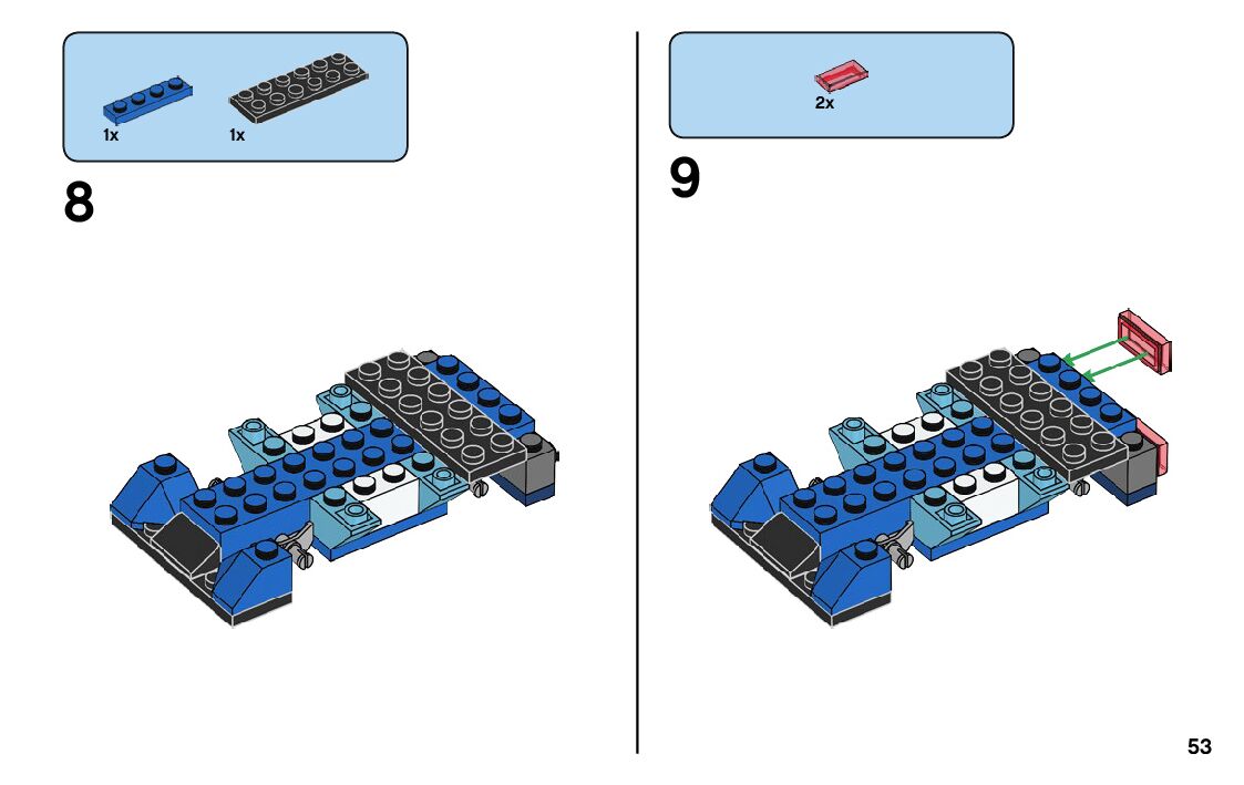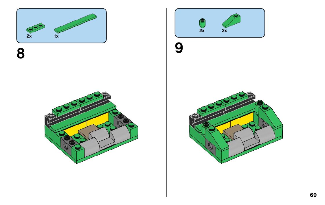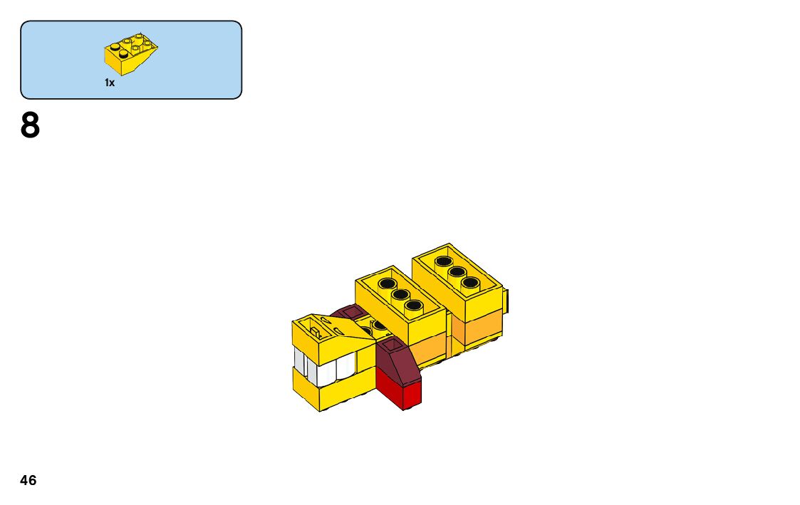 The assembly guide is prepared in a very understandable way for children and adult LEGO enthusiasts. A total of 103 picture galleries are shown, explaining the step-by-step construction stages for 2 different structures.