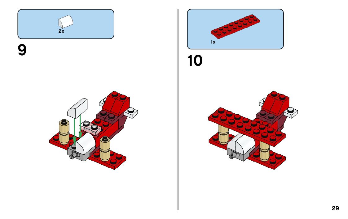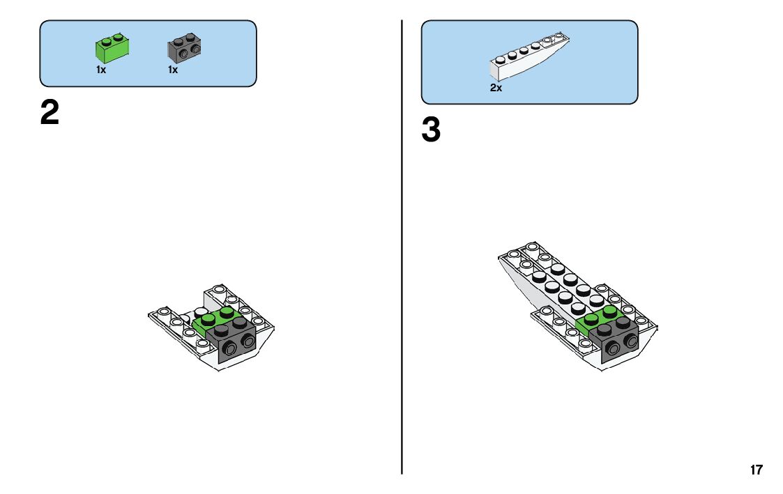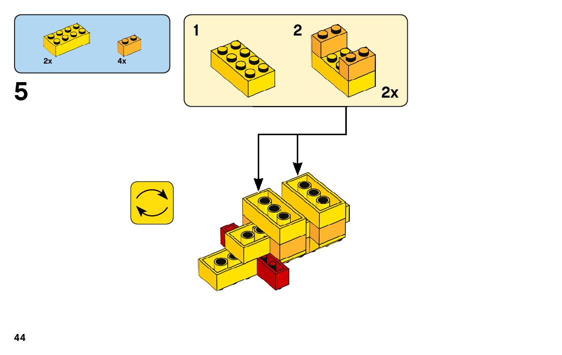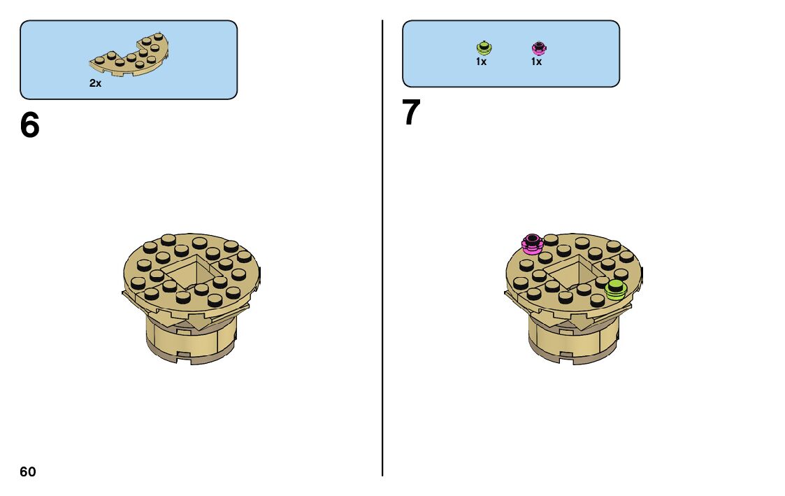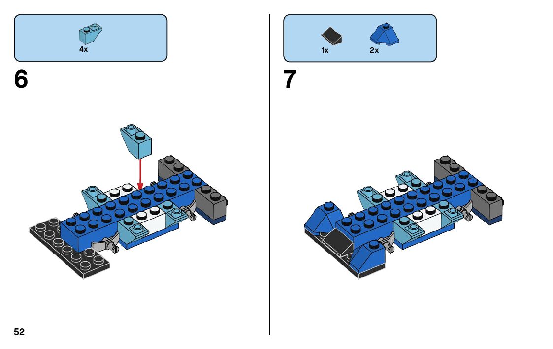 The assembly guide is prepared in a very understandable way for children and adult LEGO enthusiasts. A total of 103 picture galleries are shown, explaining the step-by-step construction stages for 2 different structures.
