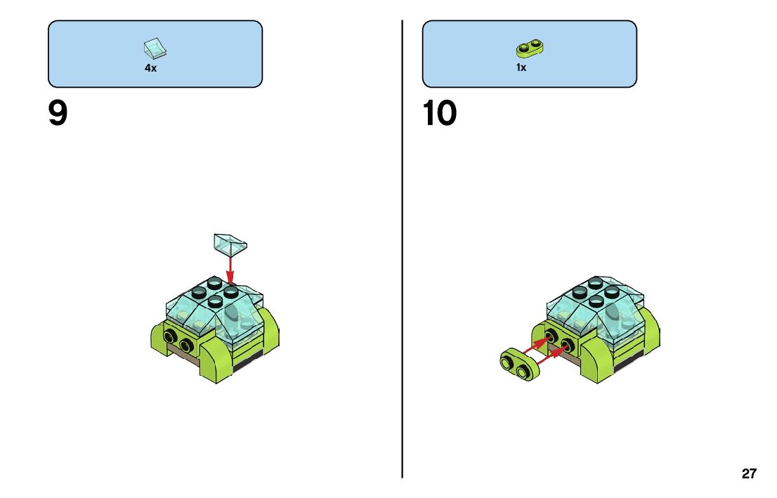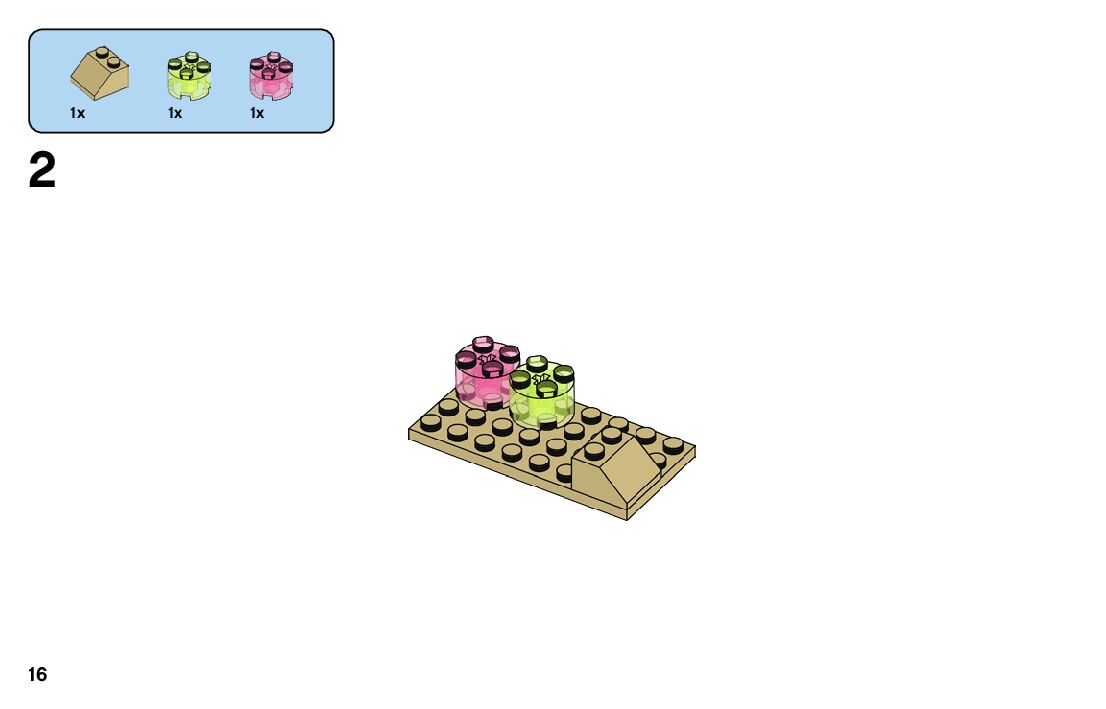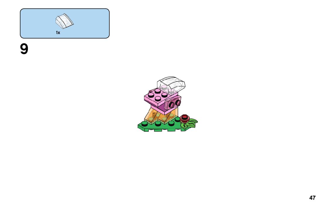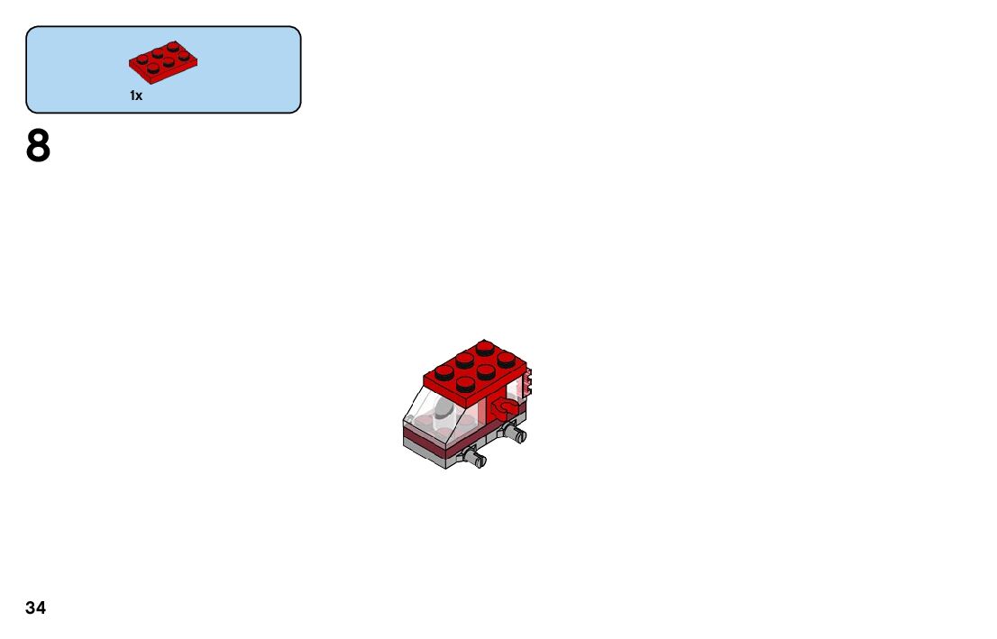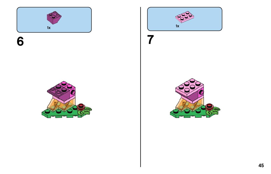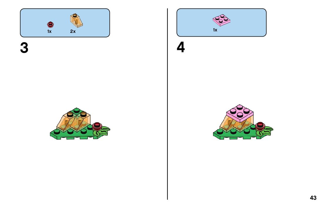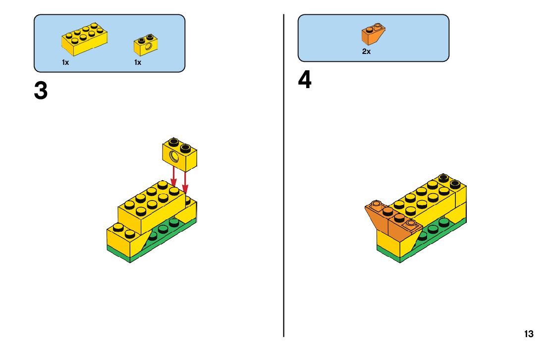 The assembly guide is prepared in a very understandable way for children and adult LEGO enthusiasts. A total of 88 picture galleries are shown, explaining the step-by-step construction stages for 2 different structures.