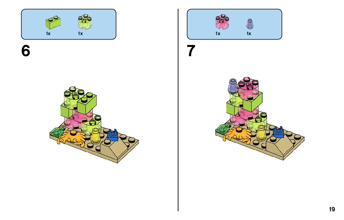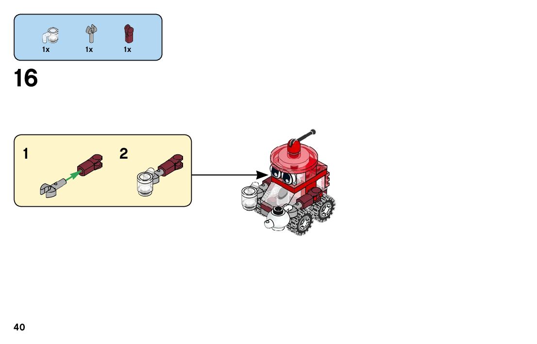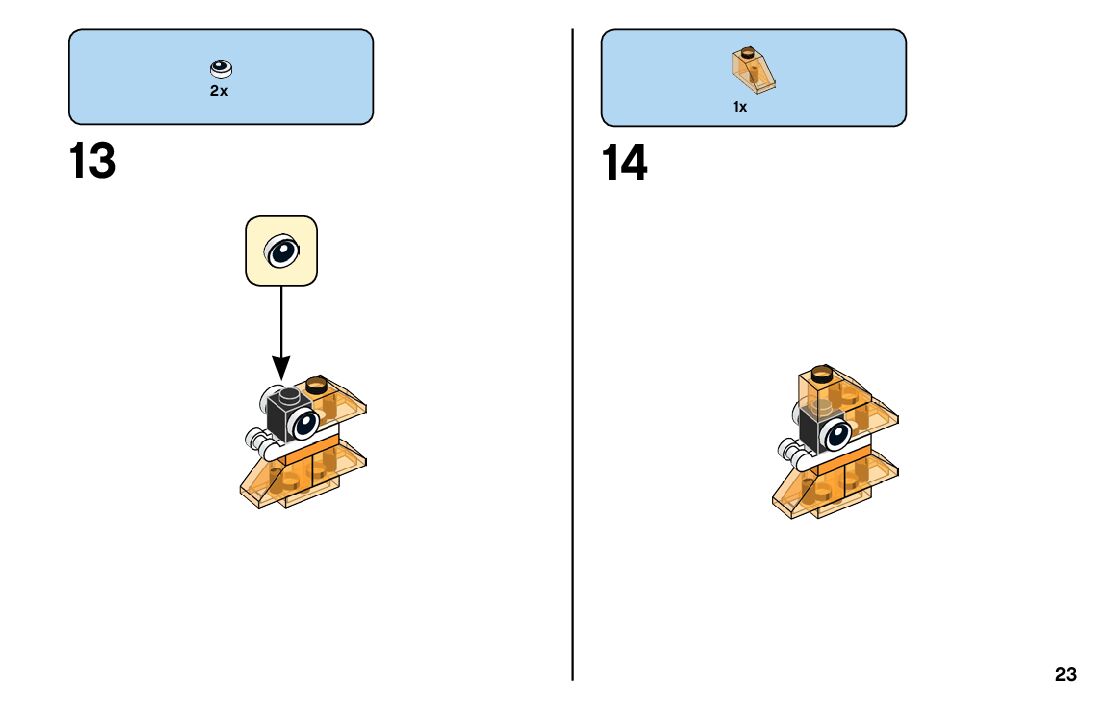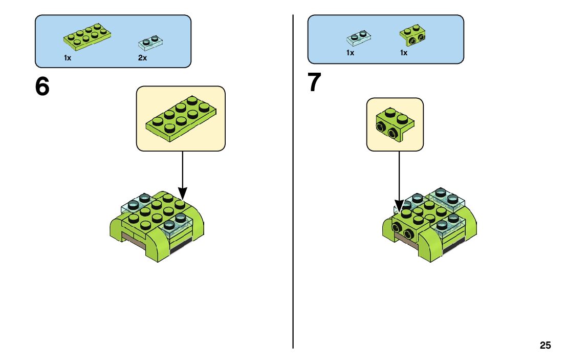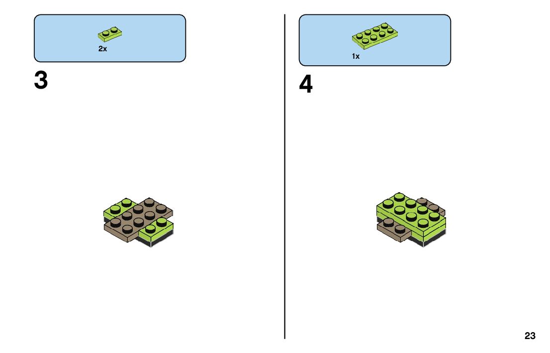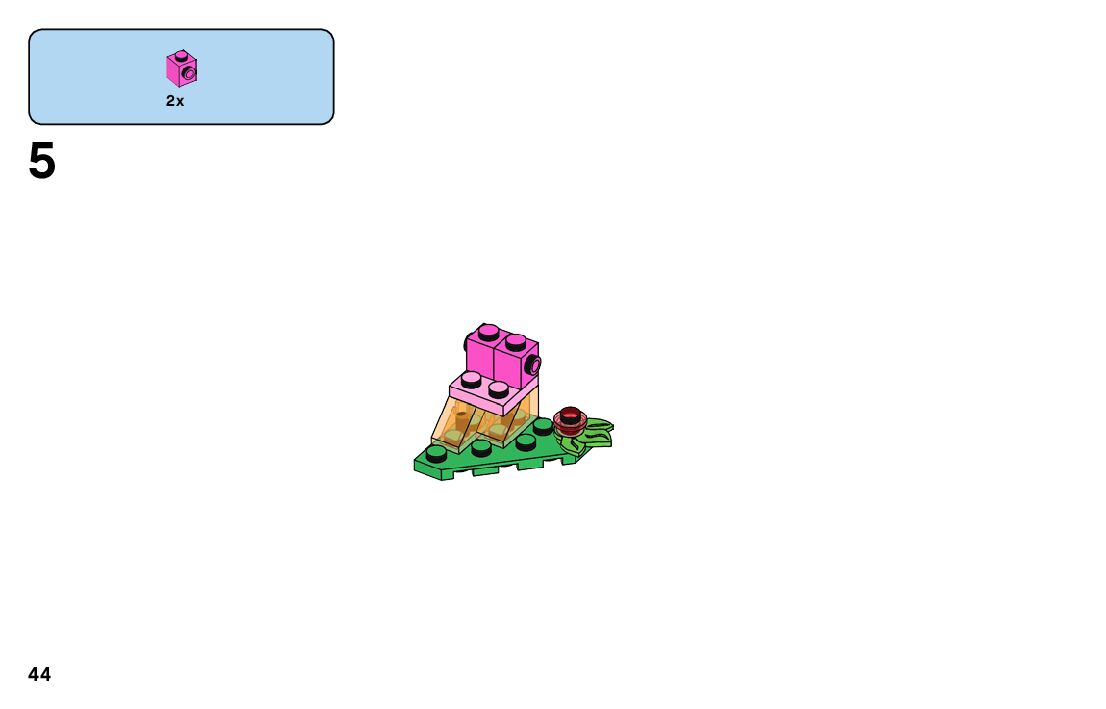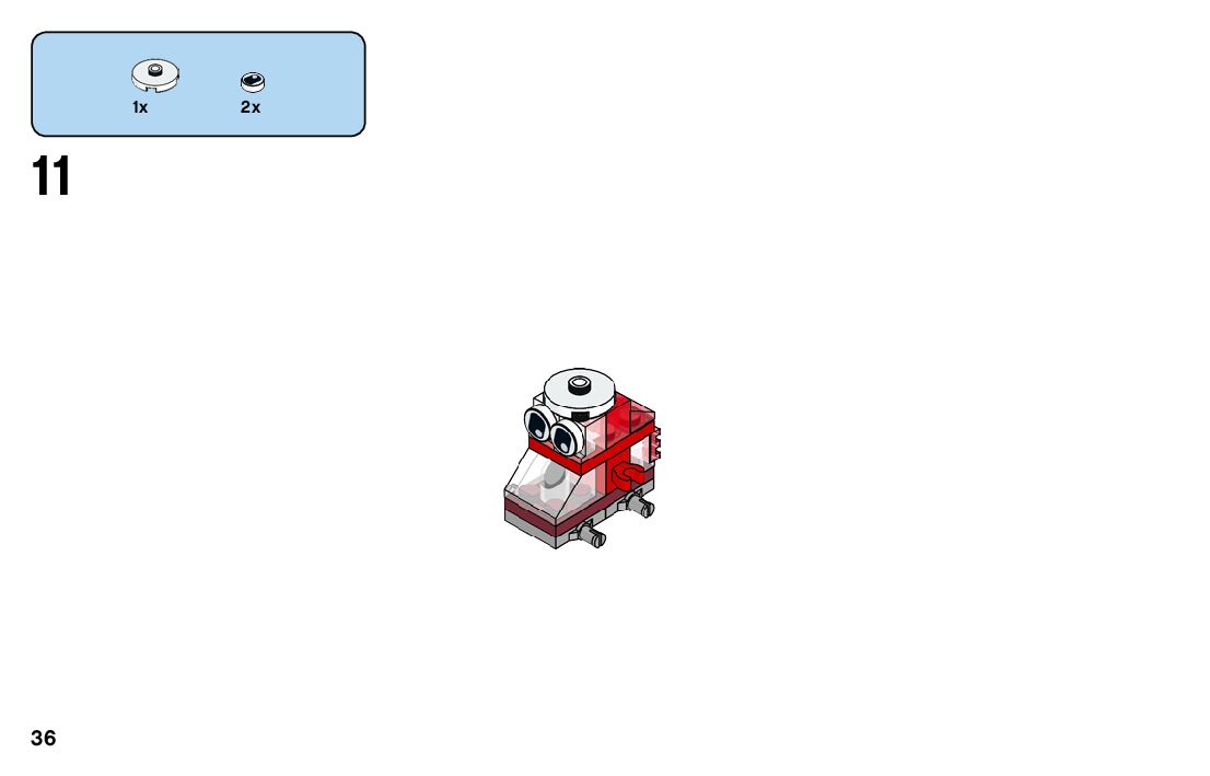 The assembly guide is prepared in a very understandable way for children and adult LEGO enthusiasts. A total of 88 picture galleries are shown, explaining the step-by-step construction stages for 2 different structures.