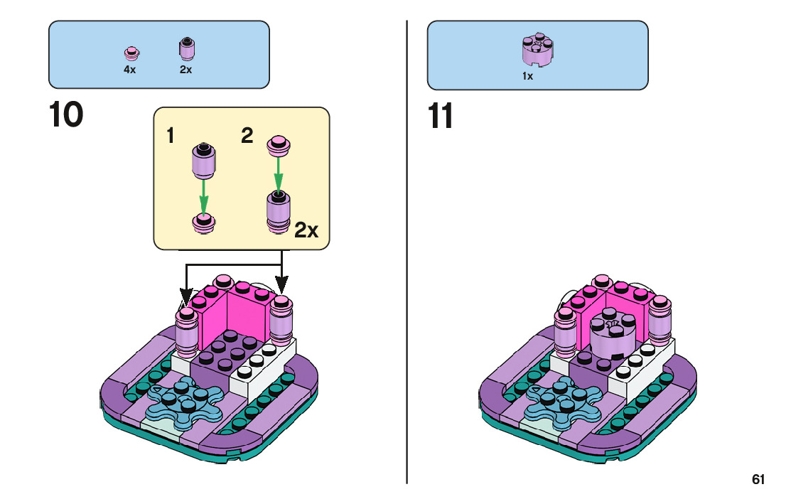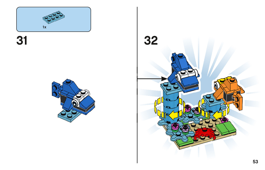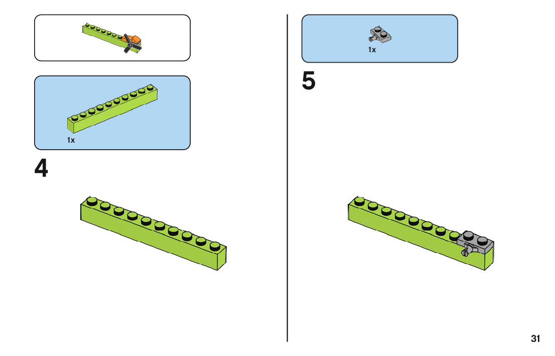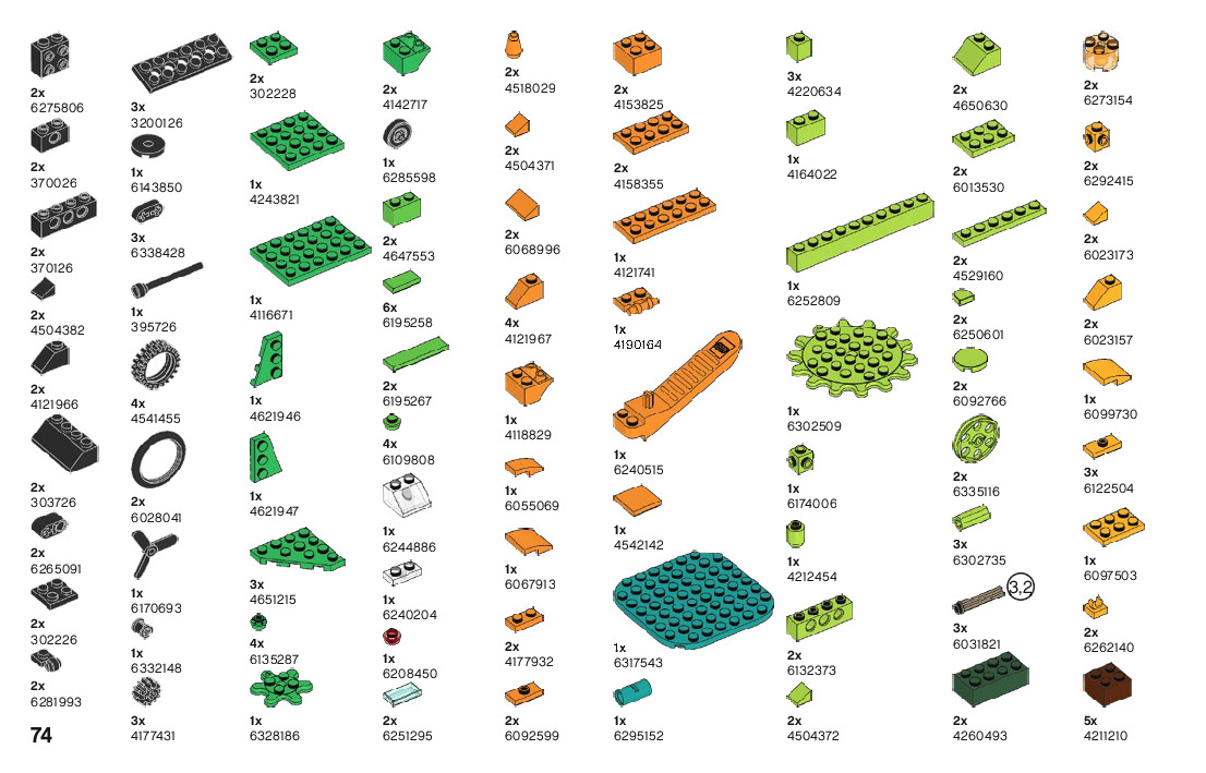 The assembly guide is prepared in a very understandable way for children and adult LEGO enthusiasts. A total of 152 picture galleries are shown, explaining the step-by-step construction stages for 2 different structures.