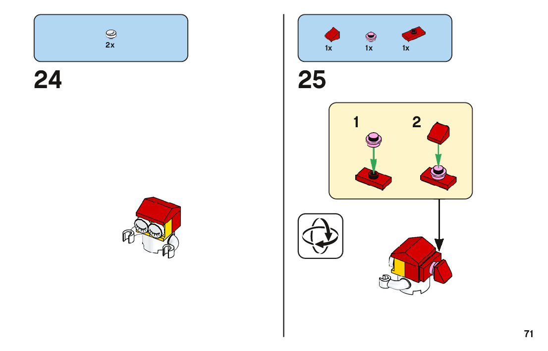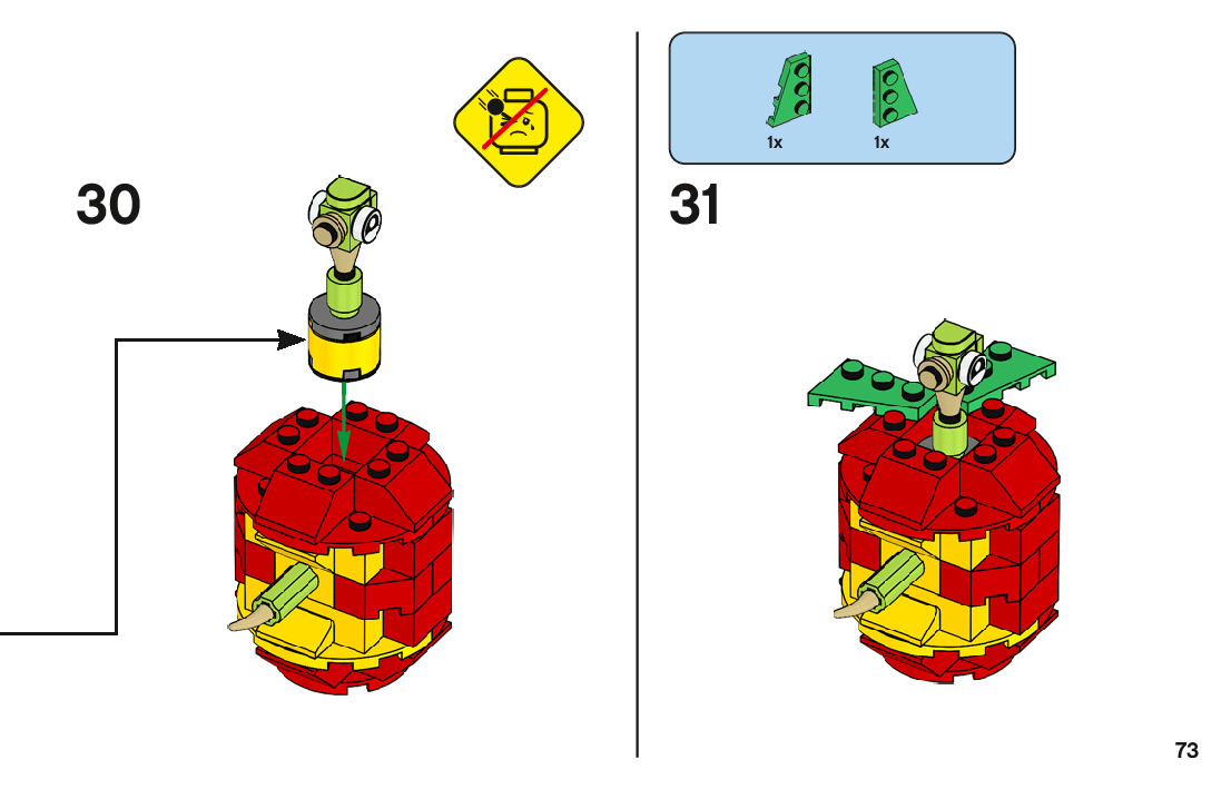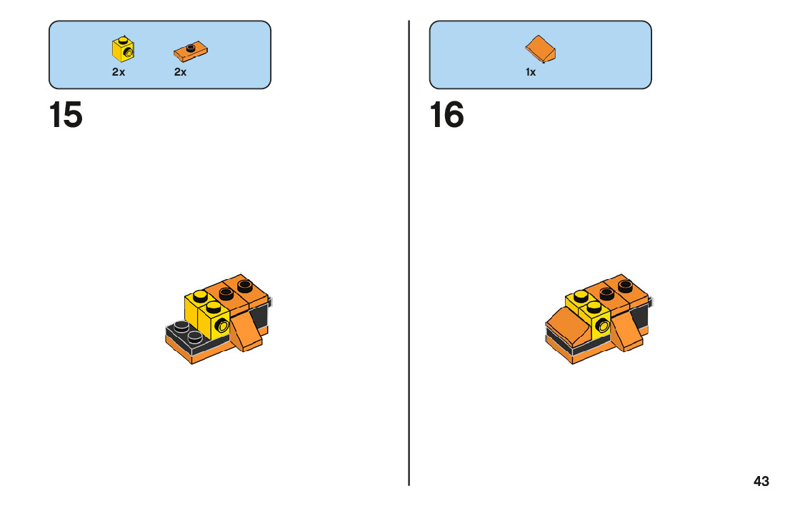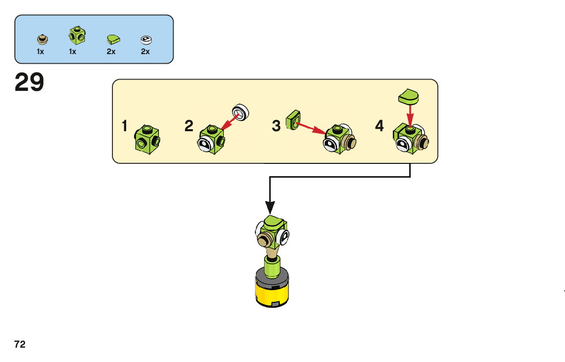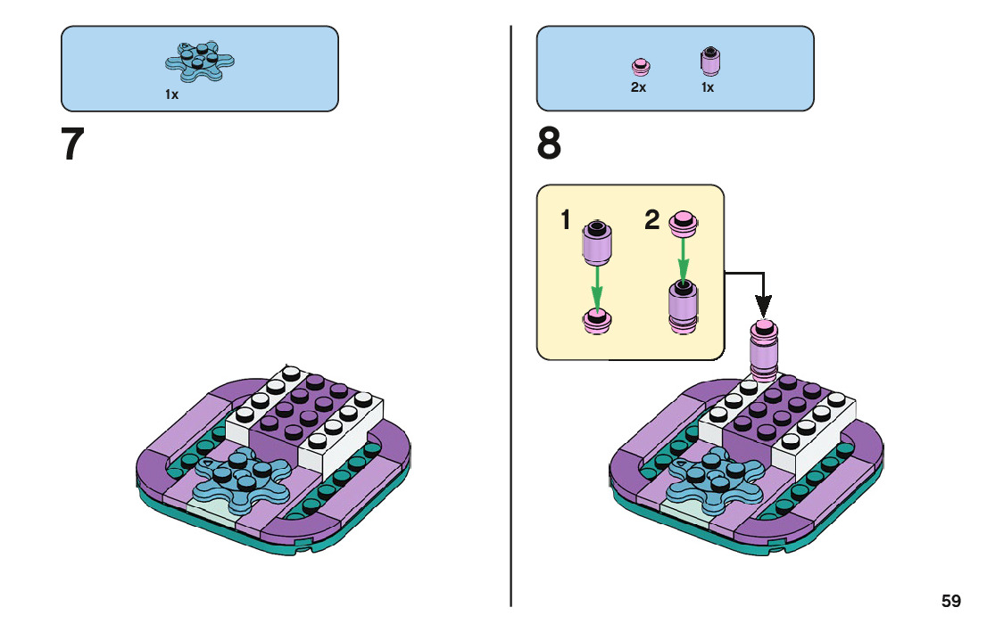 The assembly guide is prepared in a very understandable way for children and adult LEGO enthusiasts. A total of 152 picture galleries are shown, explaining the step-by-step construction stages for 2 different structures.