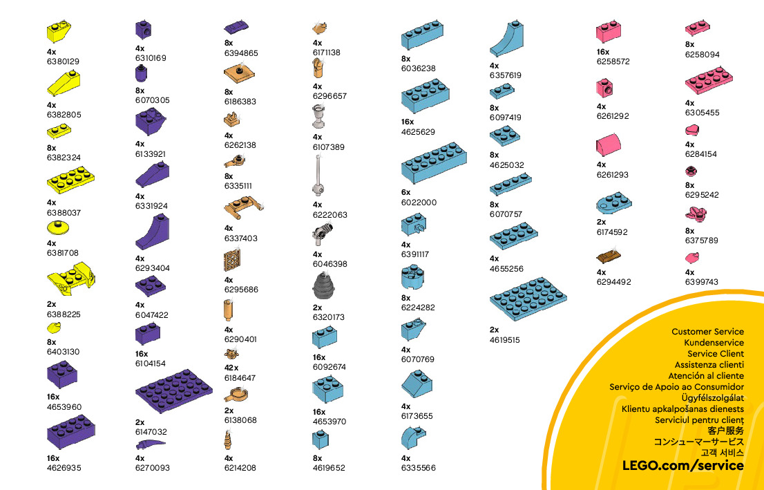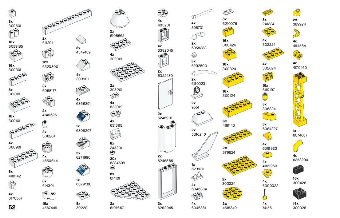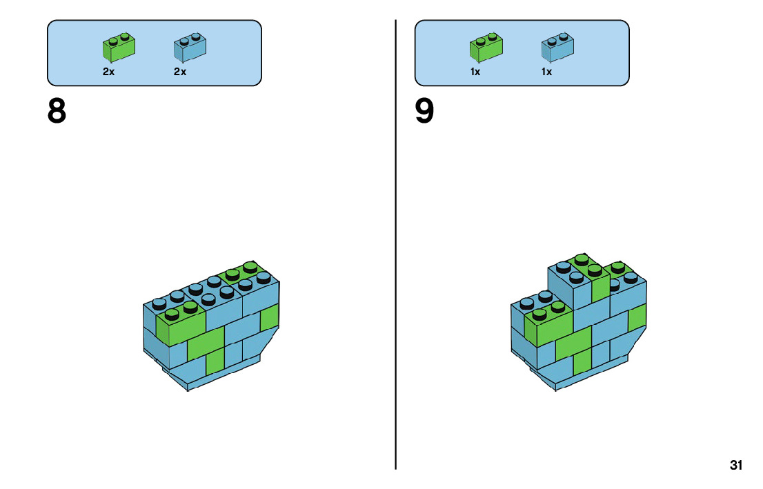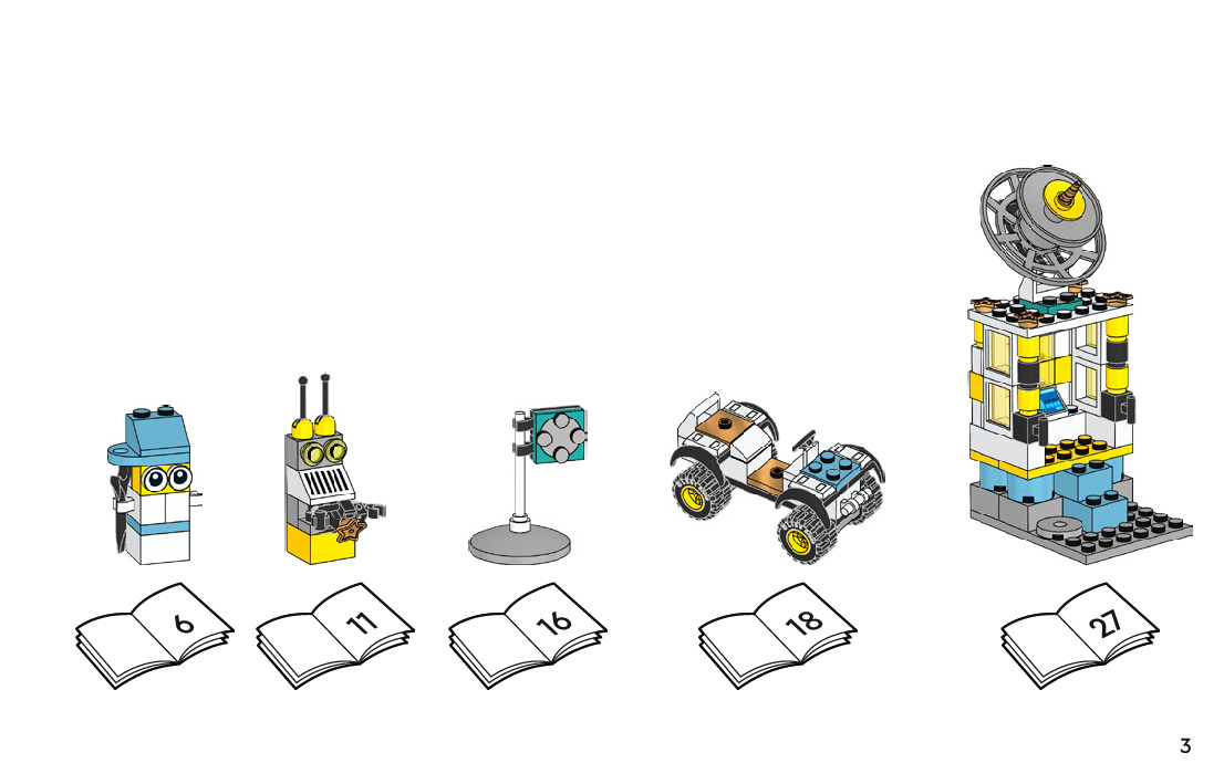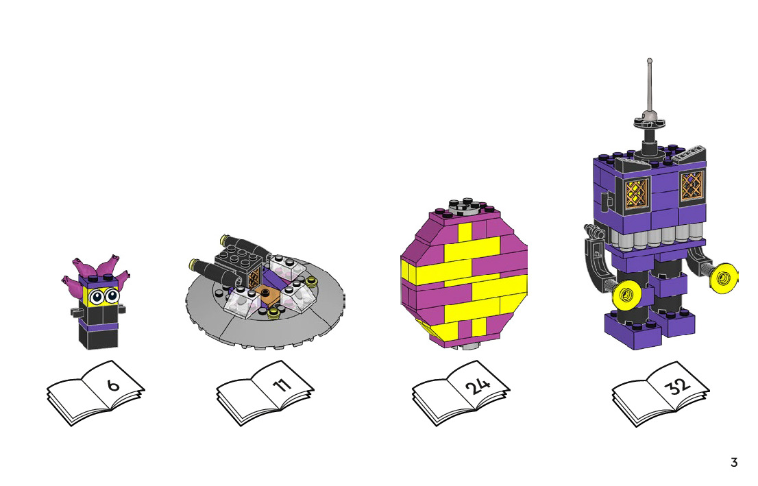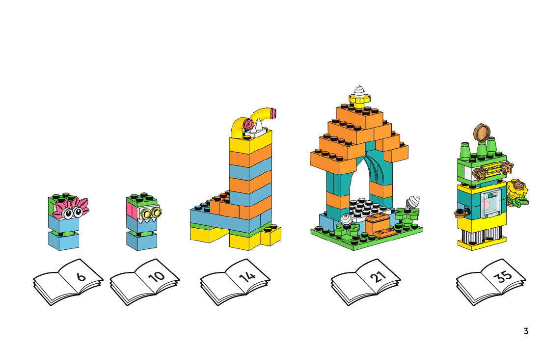 The assembly guide is prepared in a very understandable way for children and adult LEGO enthusiasts. A total of 238 picture galleries are shown, explaining the step-by-step construction stages for 5 different structures.