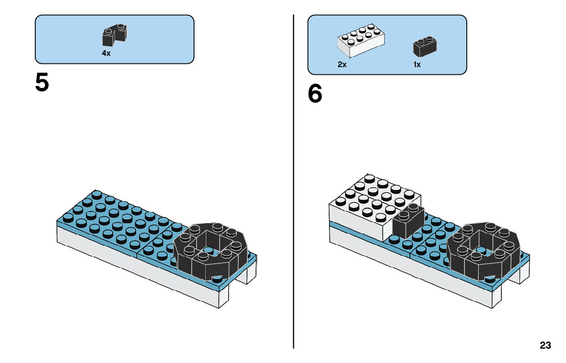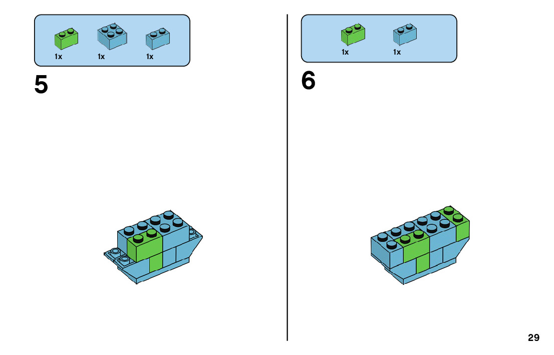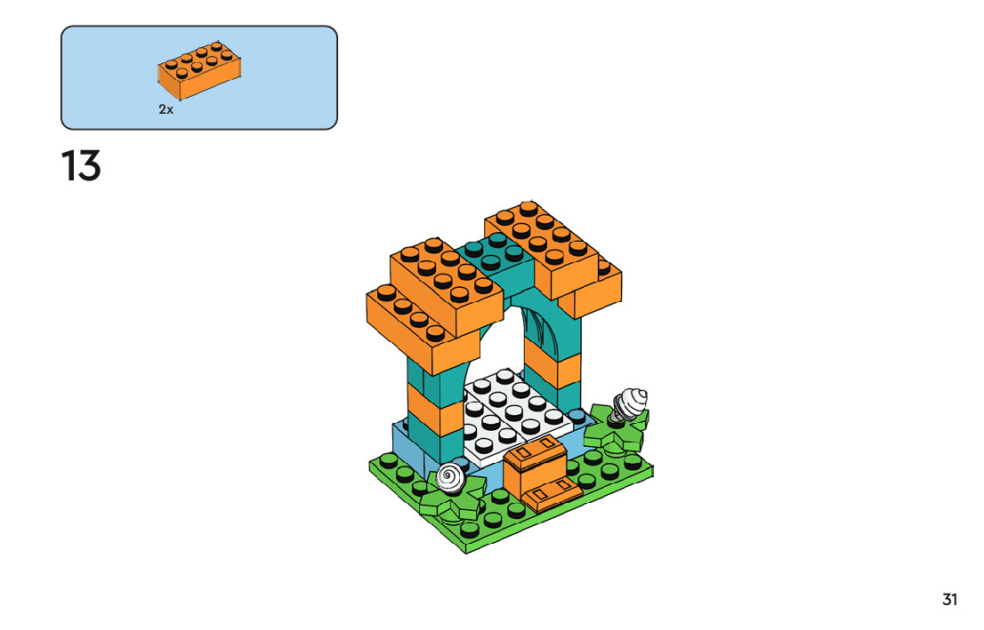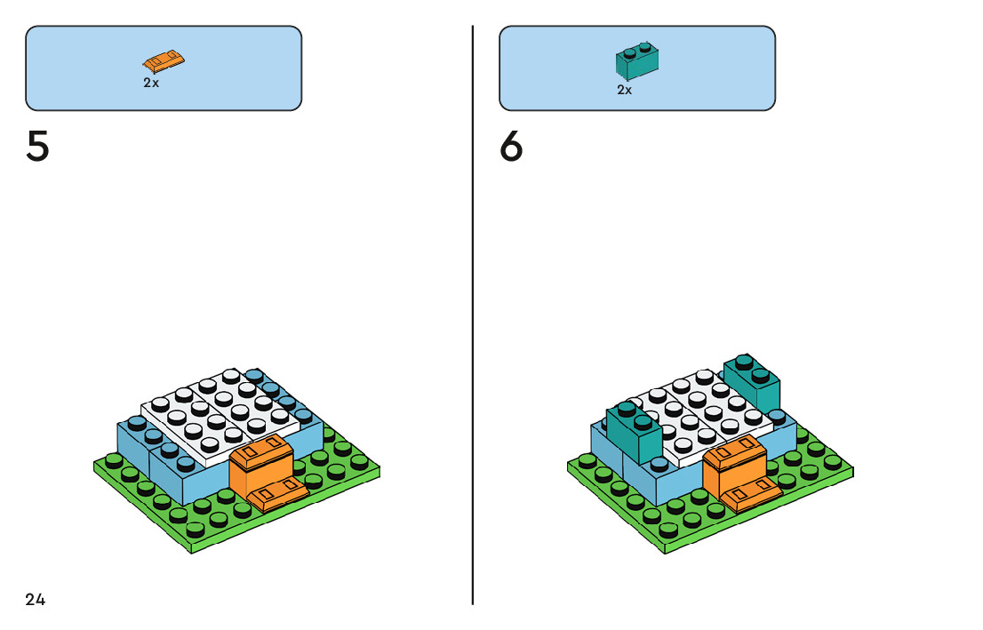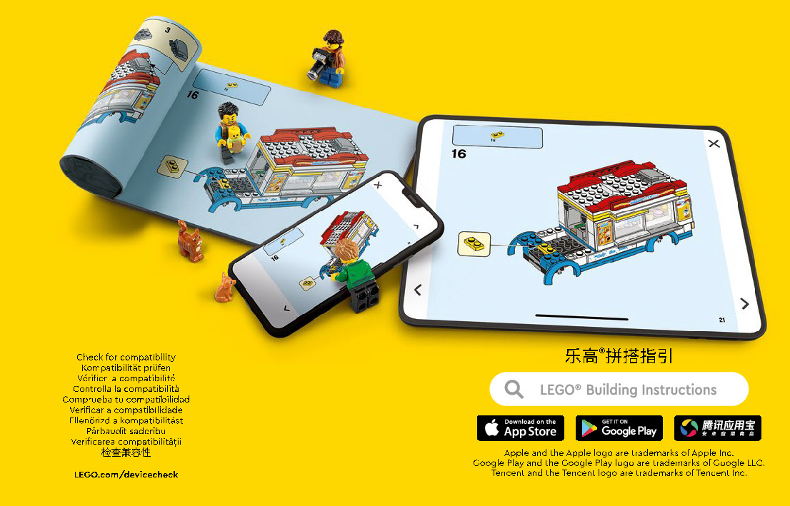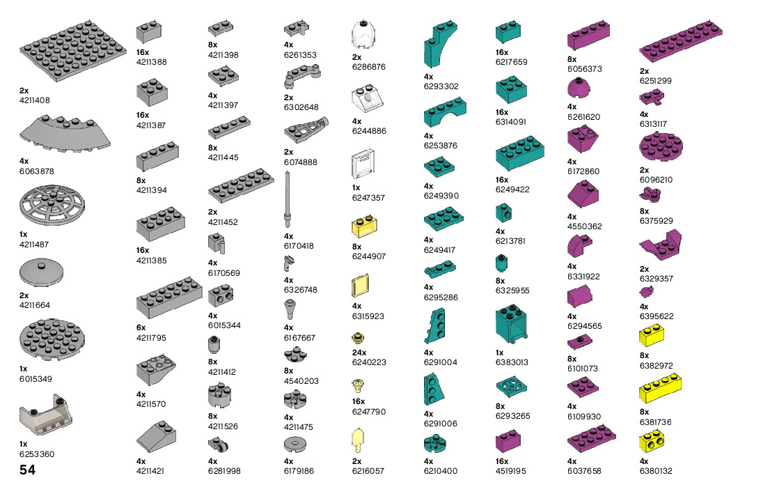 The assembly guide is prepared in a very understandable way for children and adult LEGO enthusiasts. A total of 238 picture galleries are shown, explaining the step-by-step construction stages for 5 different structures.