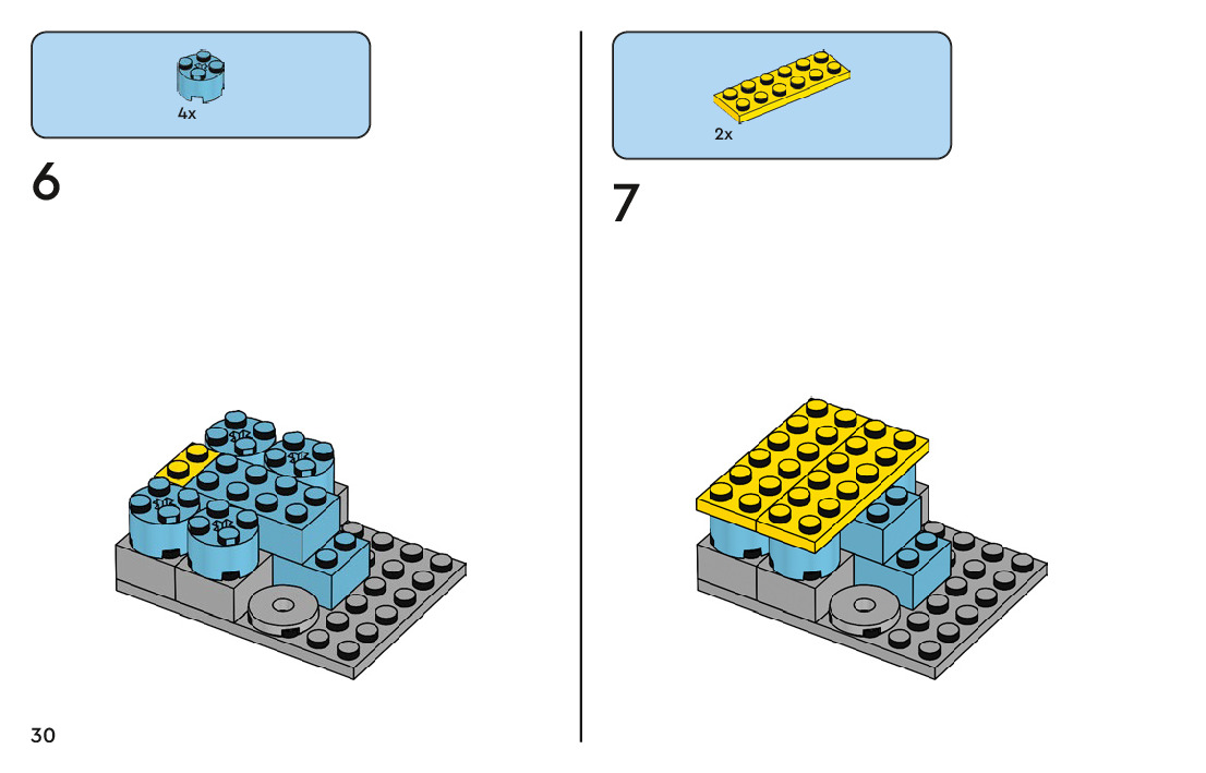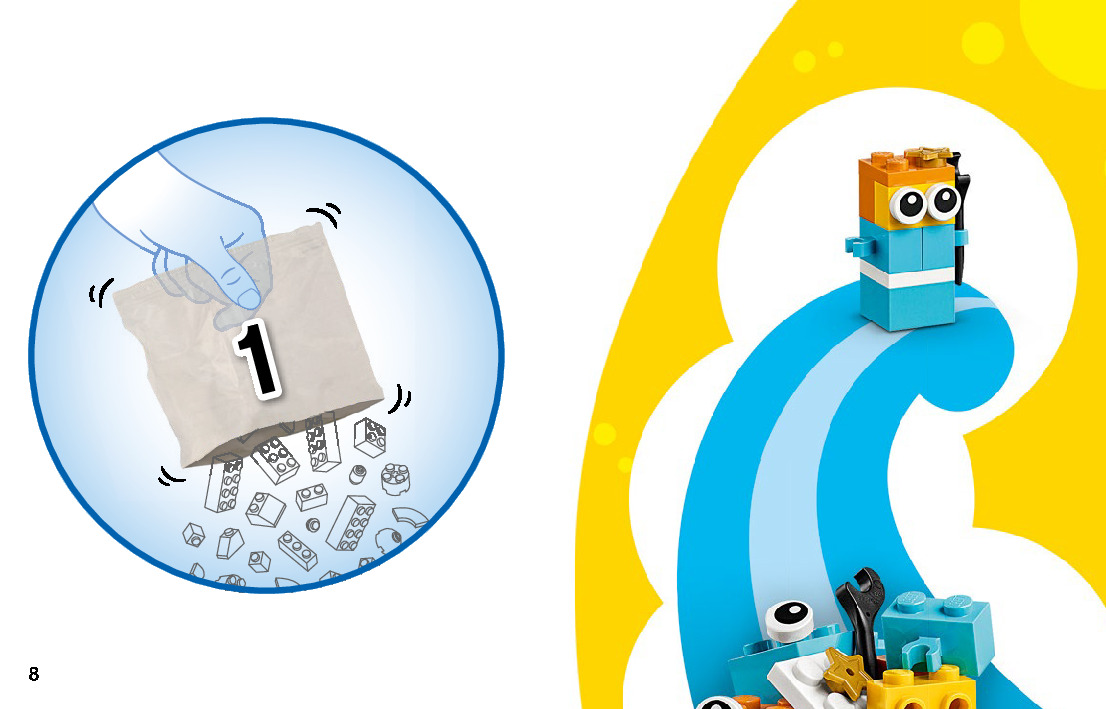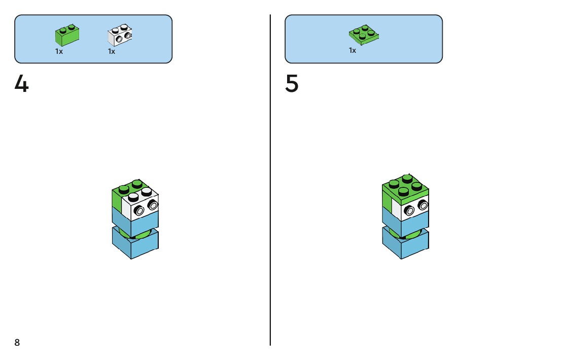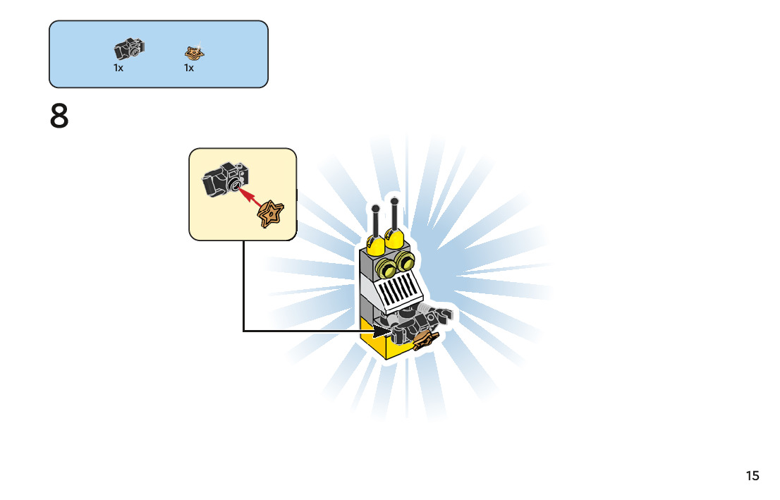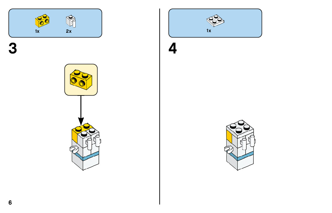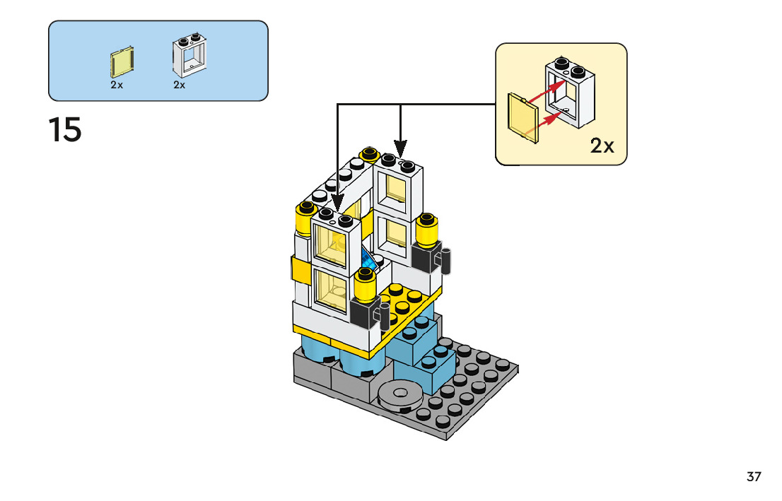 The assembly guide is prepared in a very understandable way for children and adult LEGO enthusiasts. A total of 238 picture galleries are shown, explaining the step-by-step construction stages for 5 different structures.