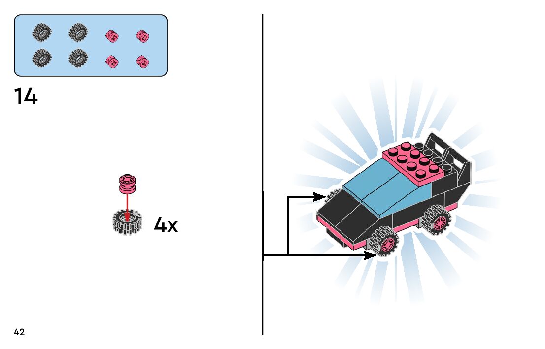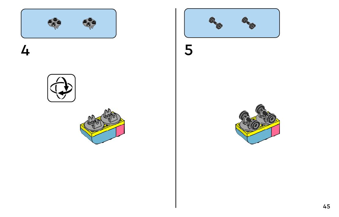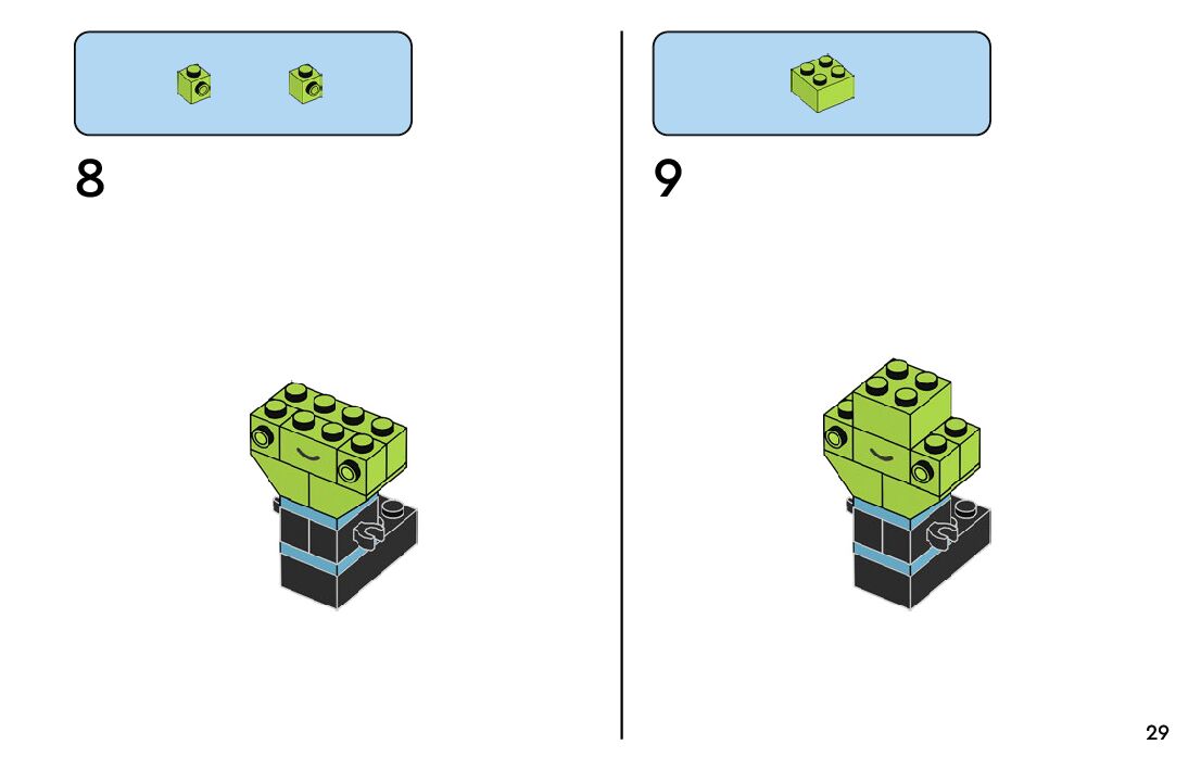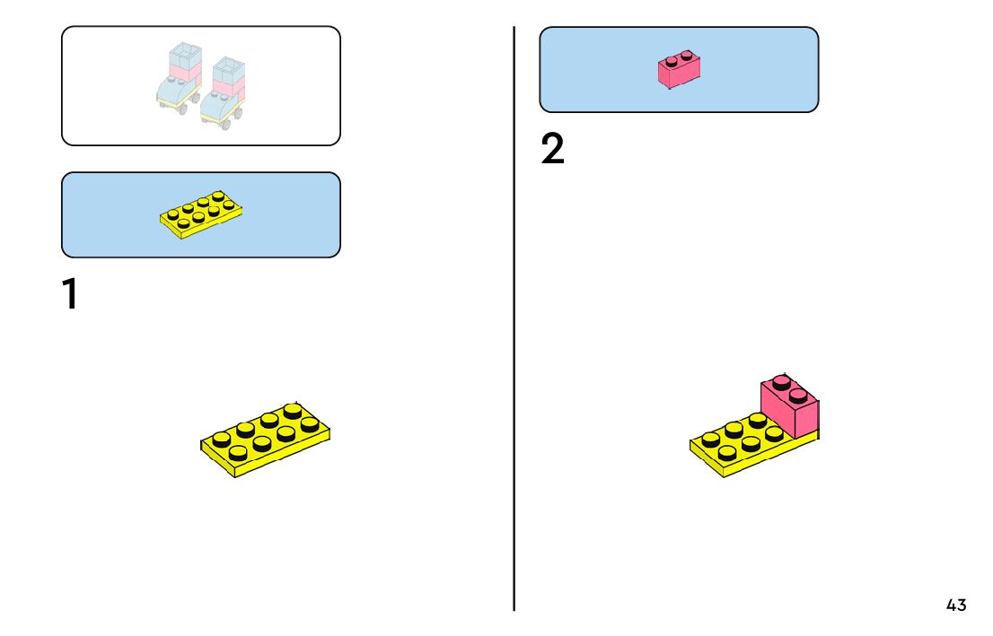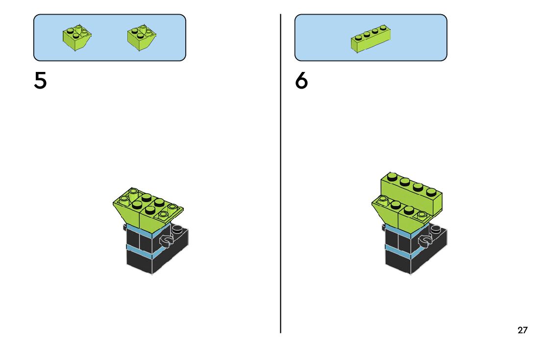 The assembly guide is prepared in a very understandable way for children and adult LEGO enthusiasts. A total of 52 picture galleries are shown, explaining the step-by-step construction stages for 1 different structures.