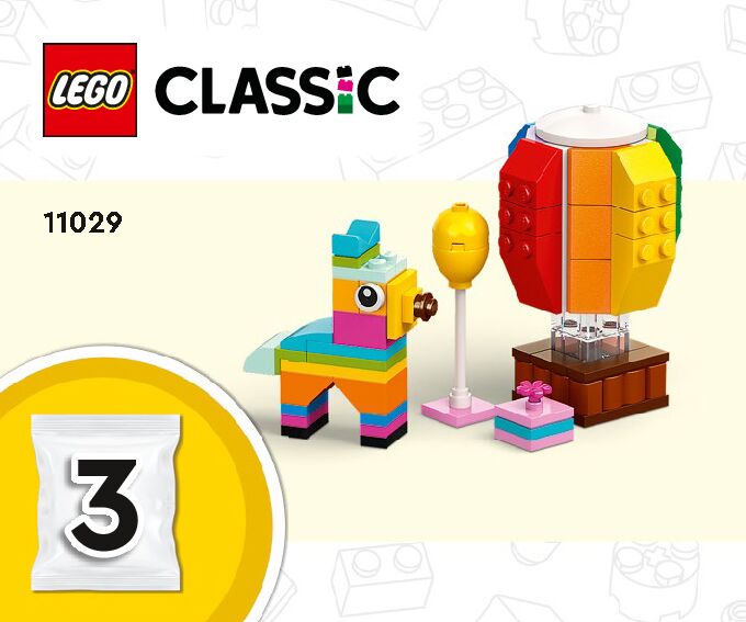 On this page you can find the original construction manual for the LEGO 11029 set. With the assembly manual you can easily learn how to build the 11029 Creative Party Box step by step. The set was released in 2023.
