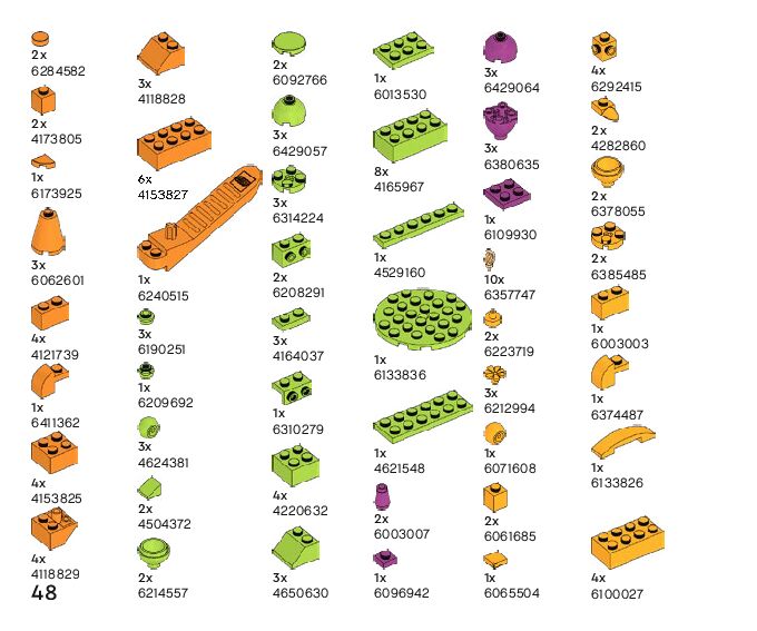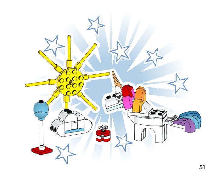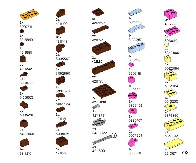 The assembly guide is prepared in a very understandable way for children and adult LEGO enthusiasts. A total of 244 picture galleries are shown, explaining the step-by-step construction stages for 6 different structures.