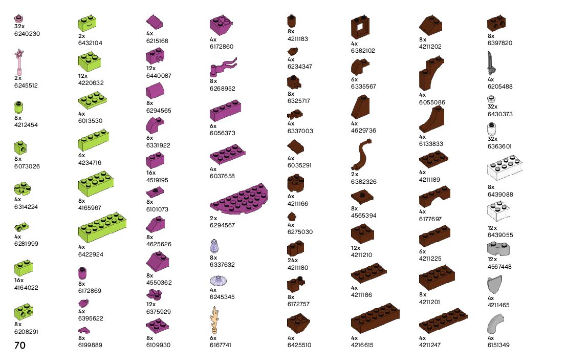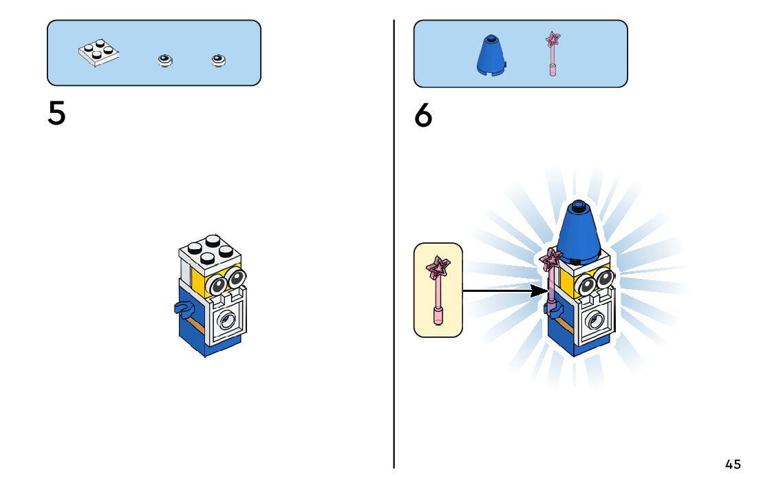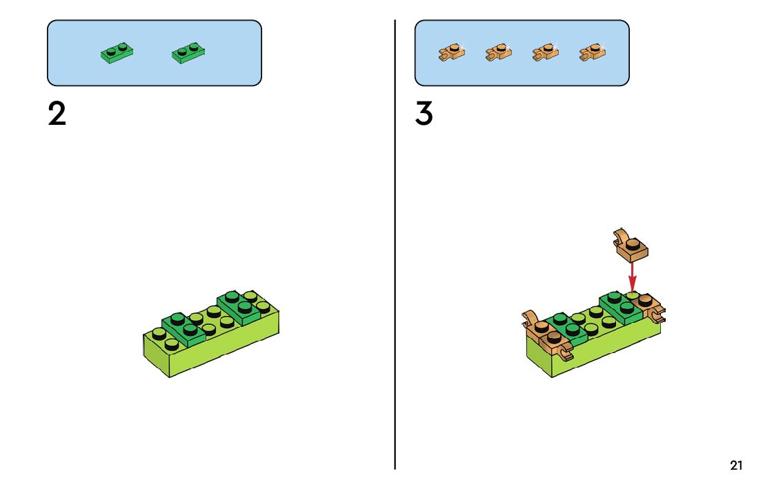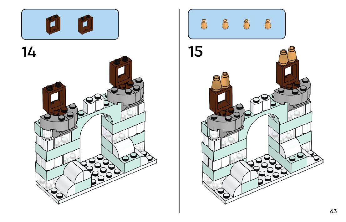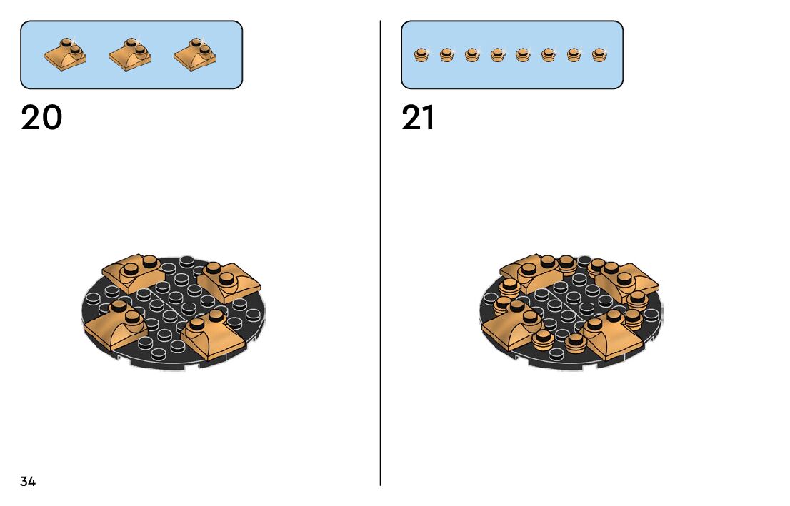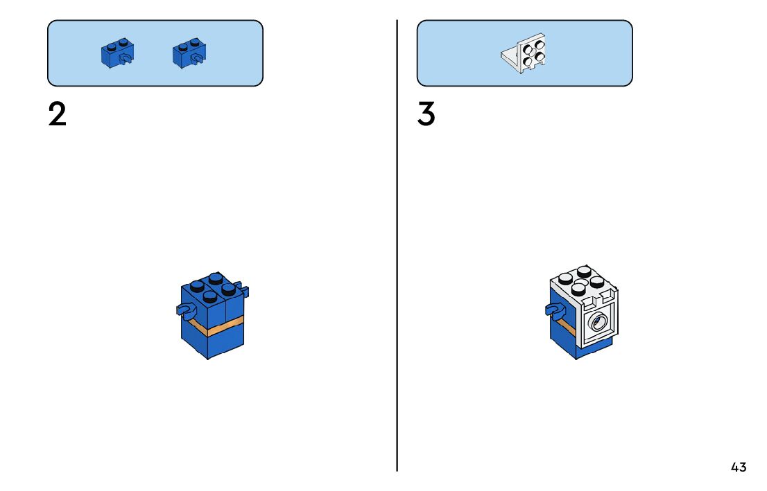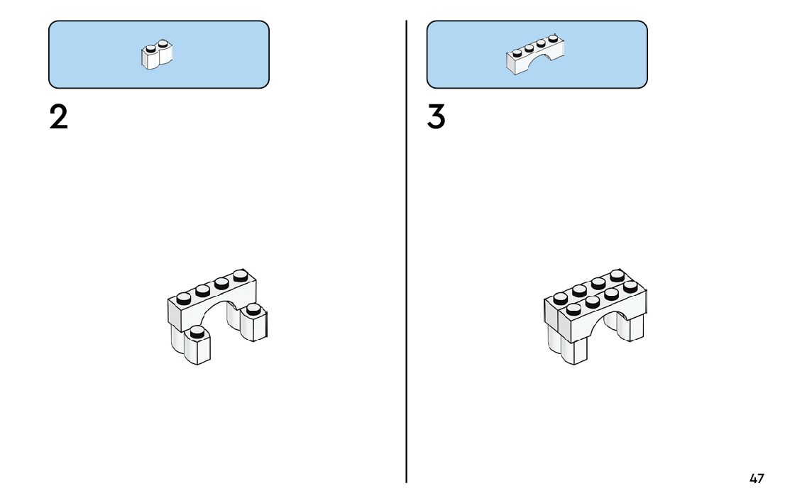 The assembly guide is prepared in a very understandable way for children and adult LEGO enthusiasts. A total of 136 picture galleries are shown, explaining the step-by-step construction stages for 2 different structures.