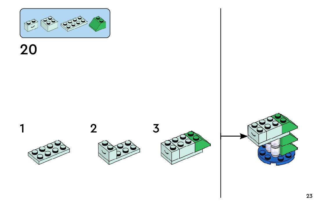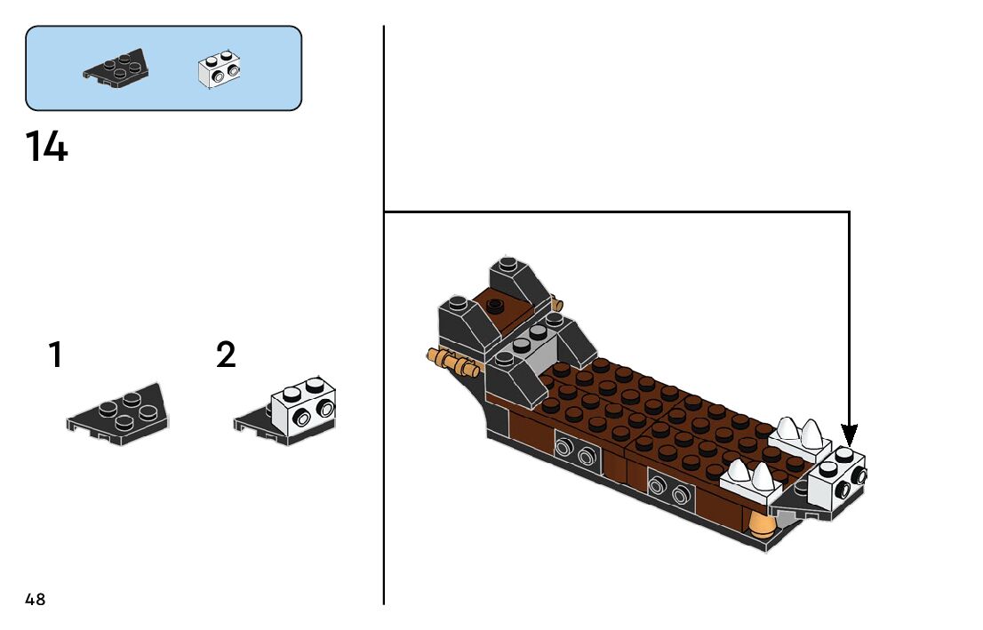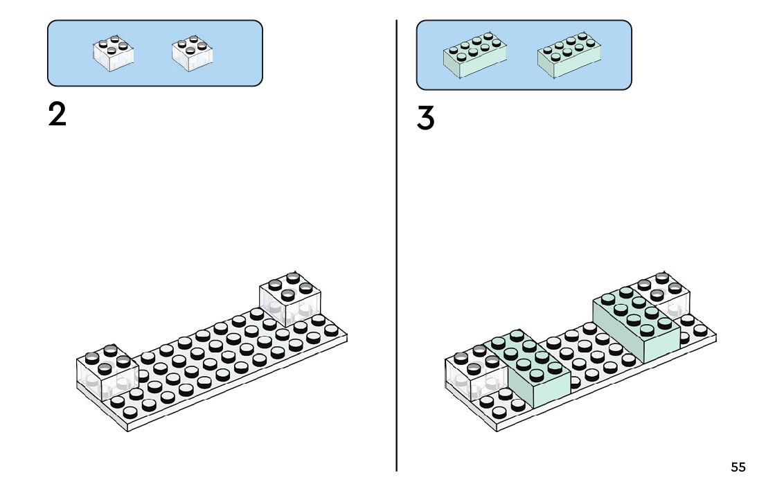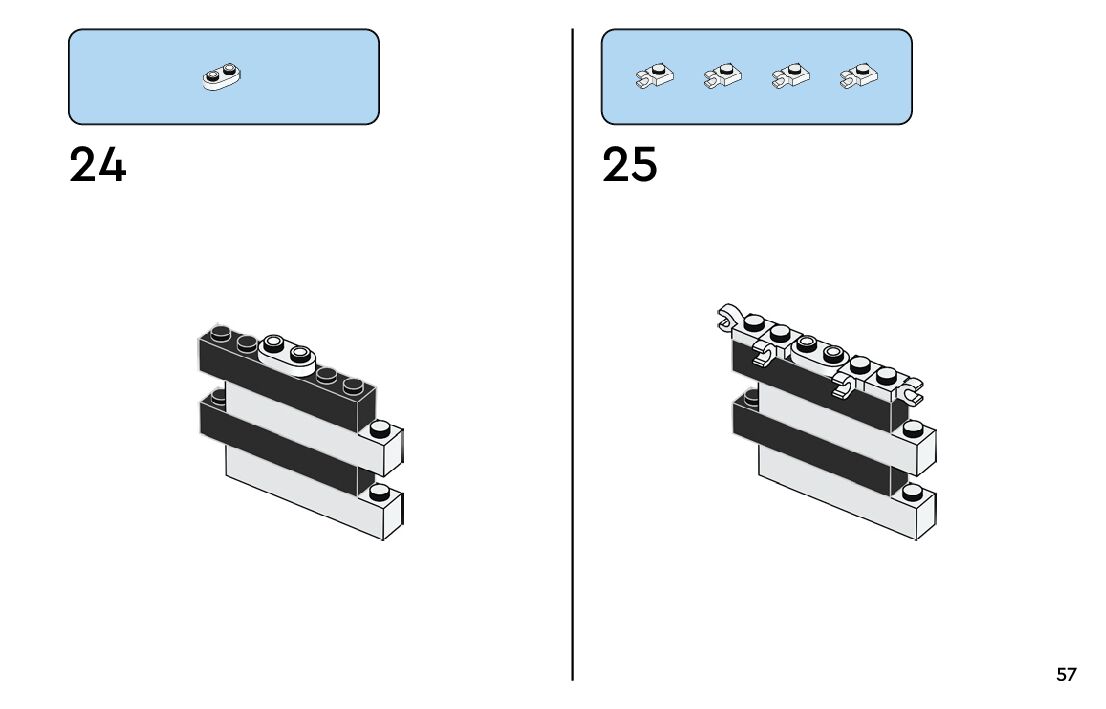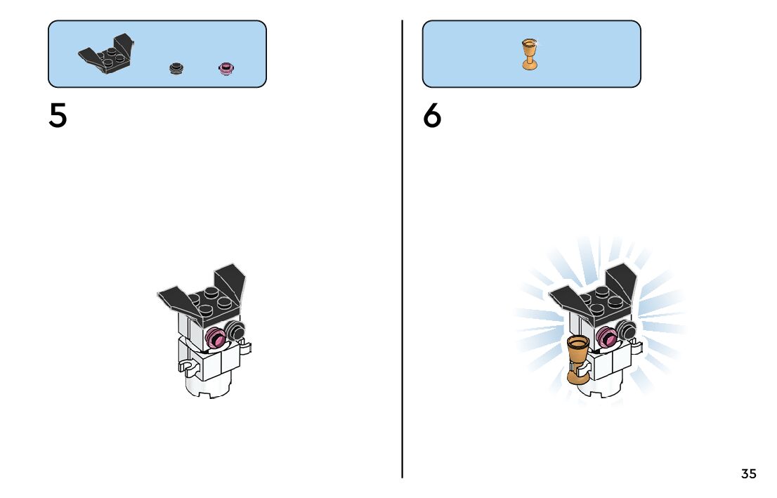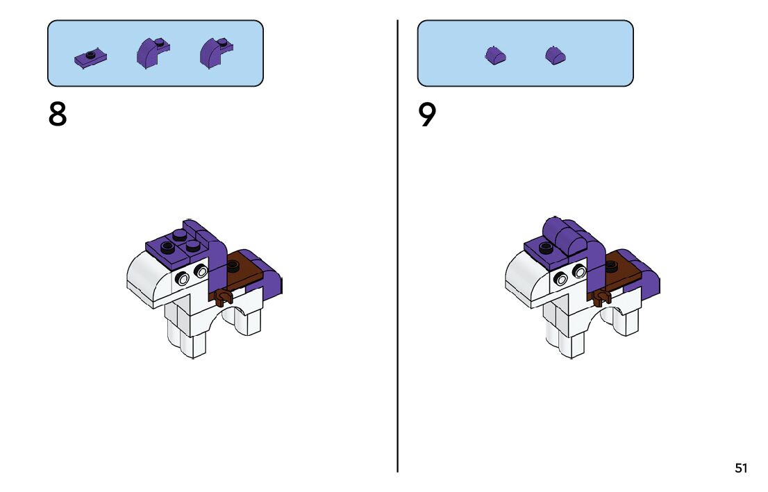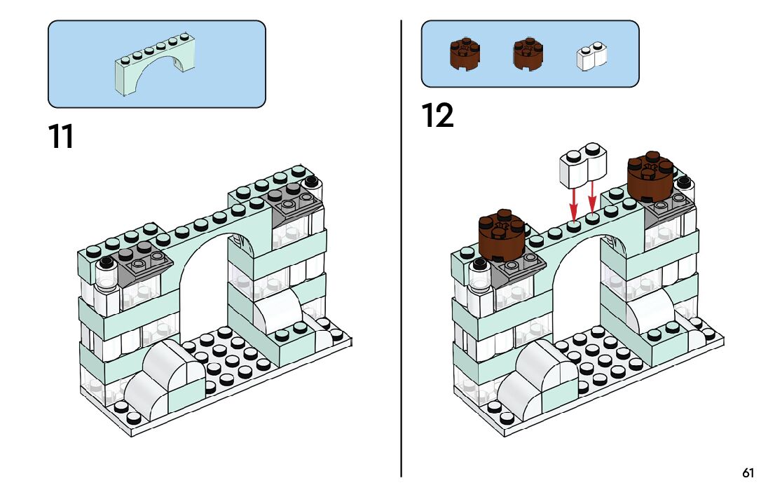 The assembly guide is prepared in a very understandable way for children and adult LEGO enthusiasts. A total of 136 picture galleries are shown, explaining the step-by-step construction stages for 2 different structures.