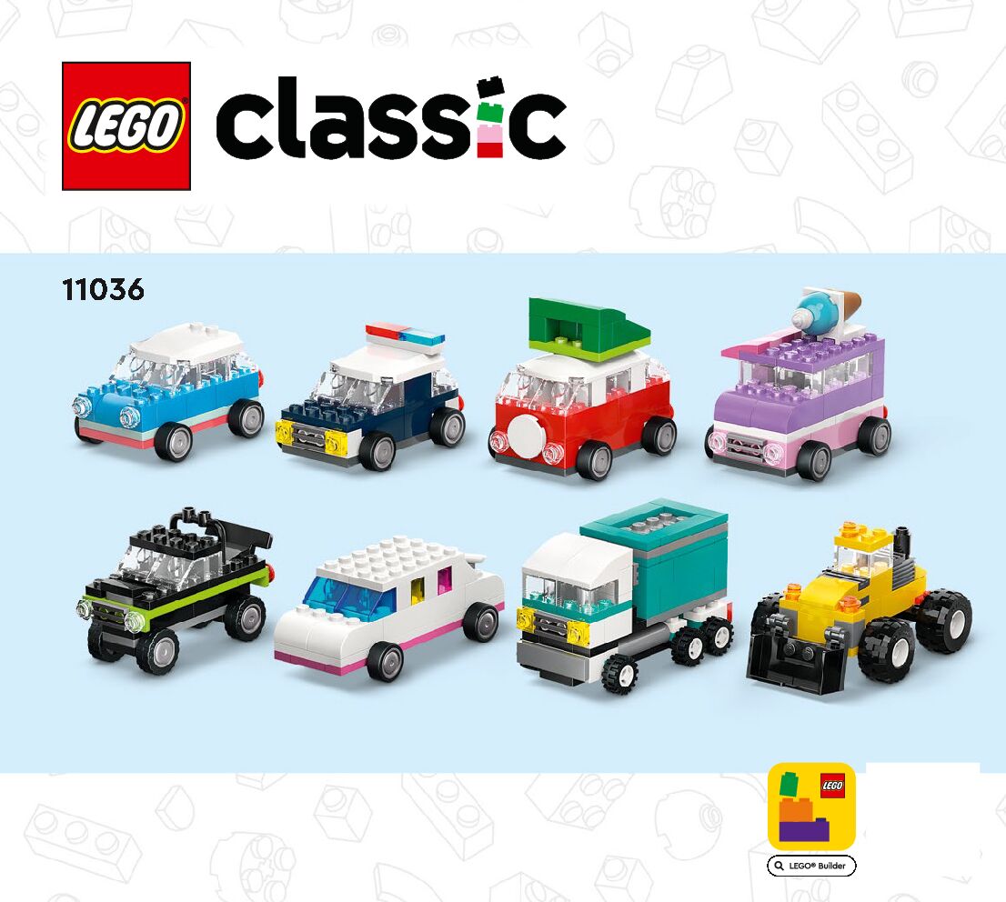 On this page you can find the original construction manual for the LEGO 11036 set. With the assembly manual you can easily learn how to build the 11036 Creative Vehicles step by step. The set was released in 2024.
