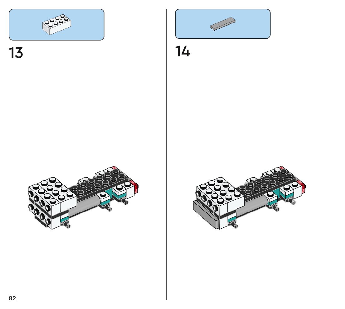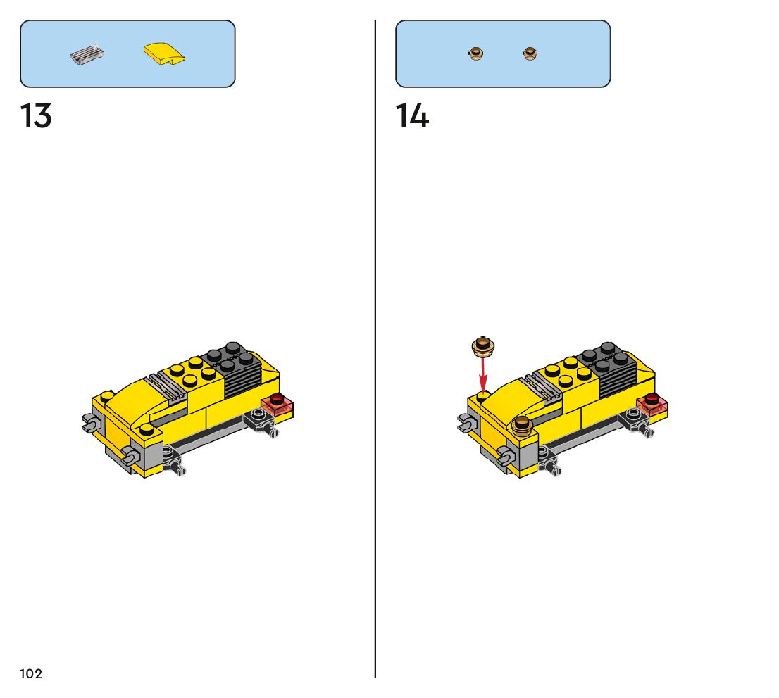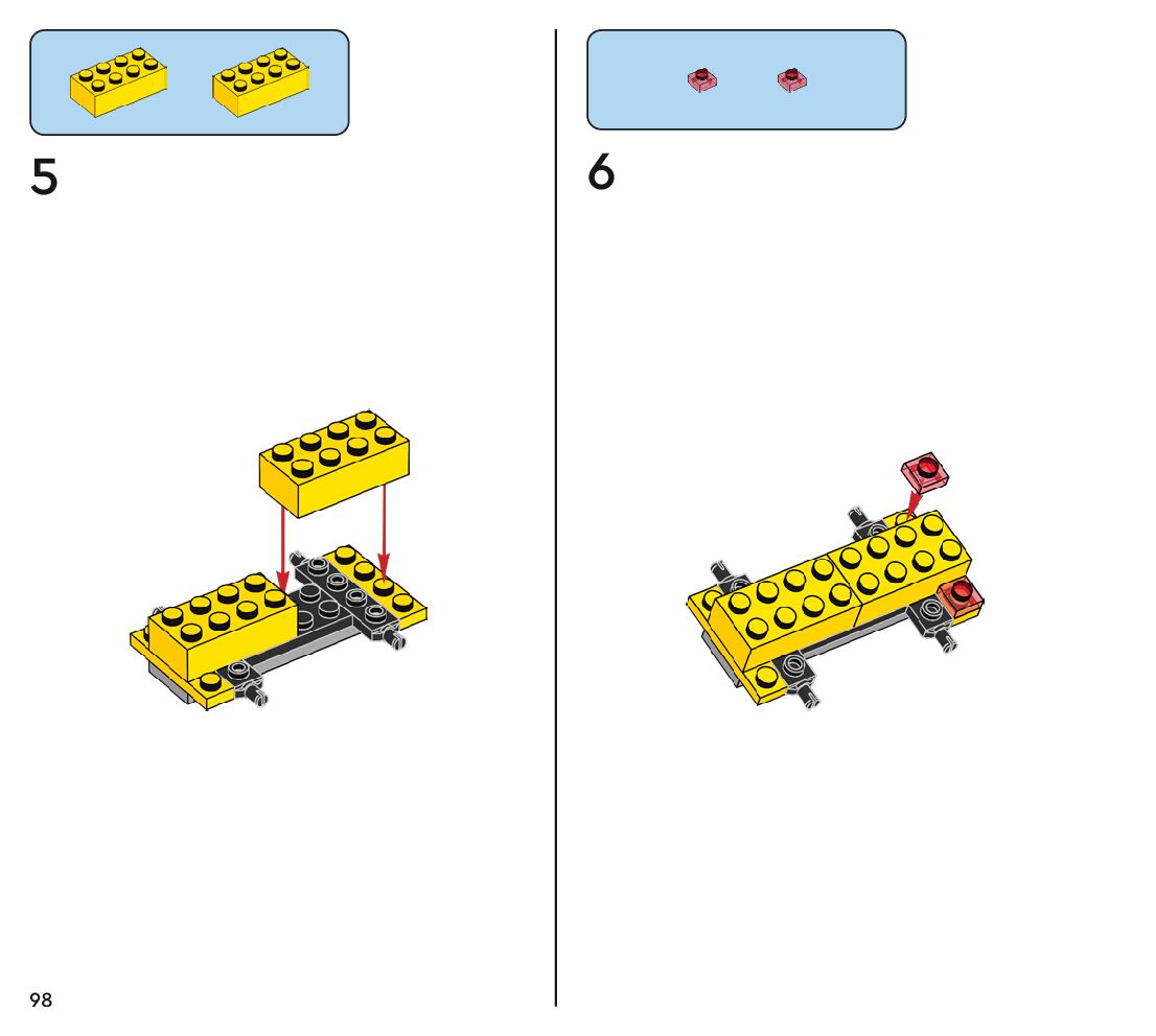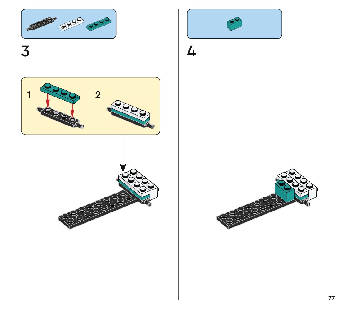 The assembly guide is prepared in a very understandable way for children and adult LEGO enthusiasts. A total of 112 picture galleries are shown, explaining the step-by-step construction stages for 1 different structures.