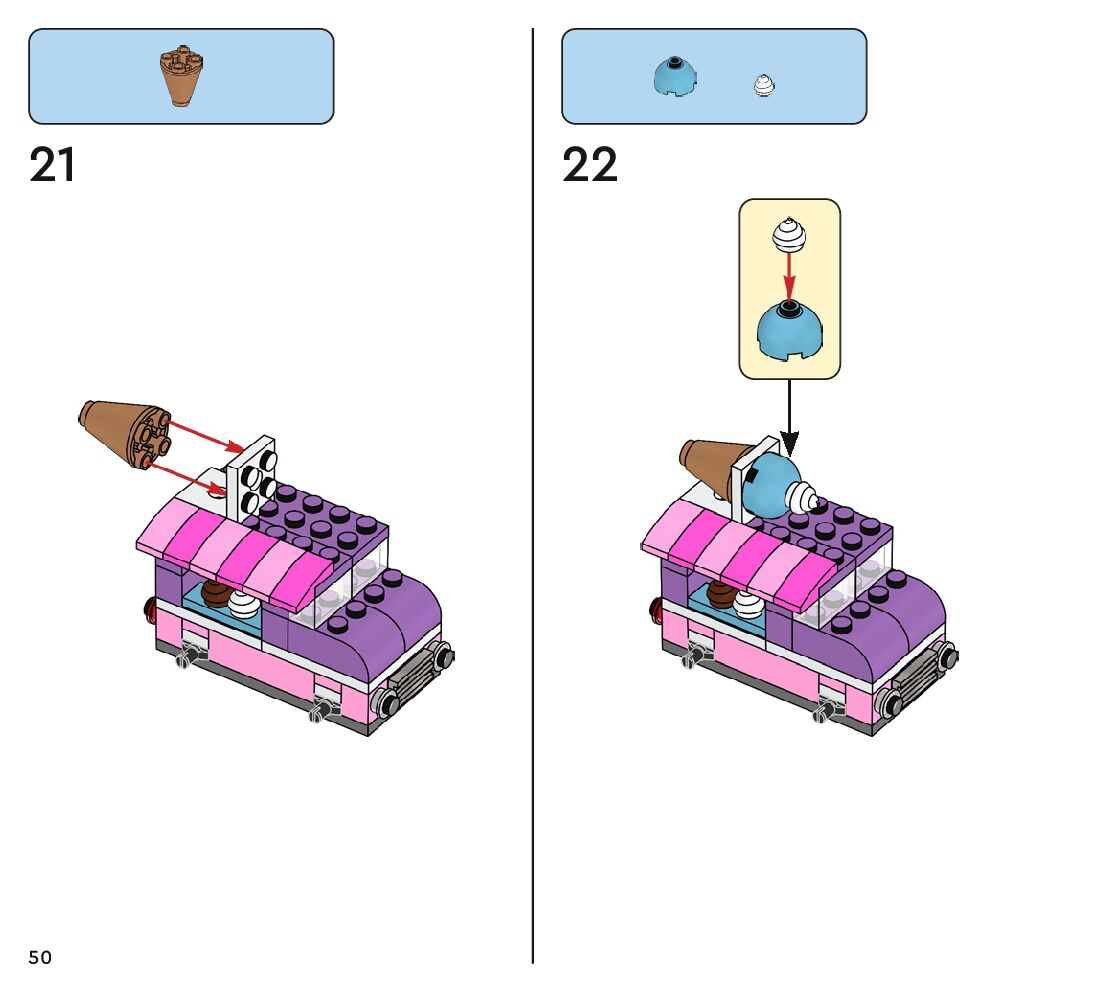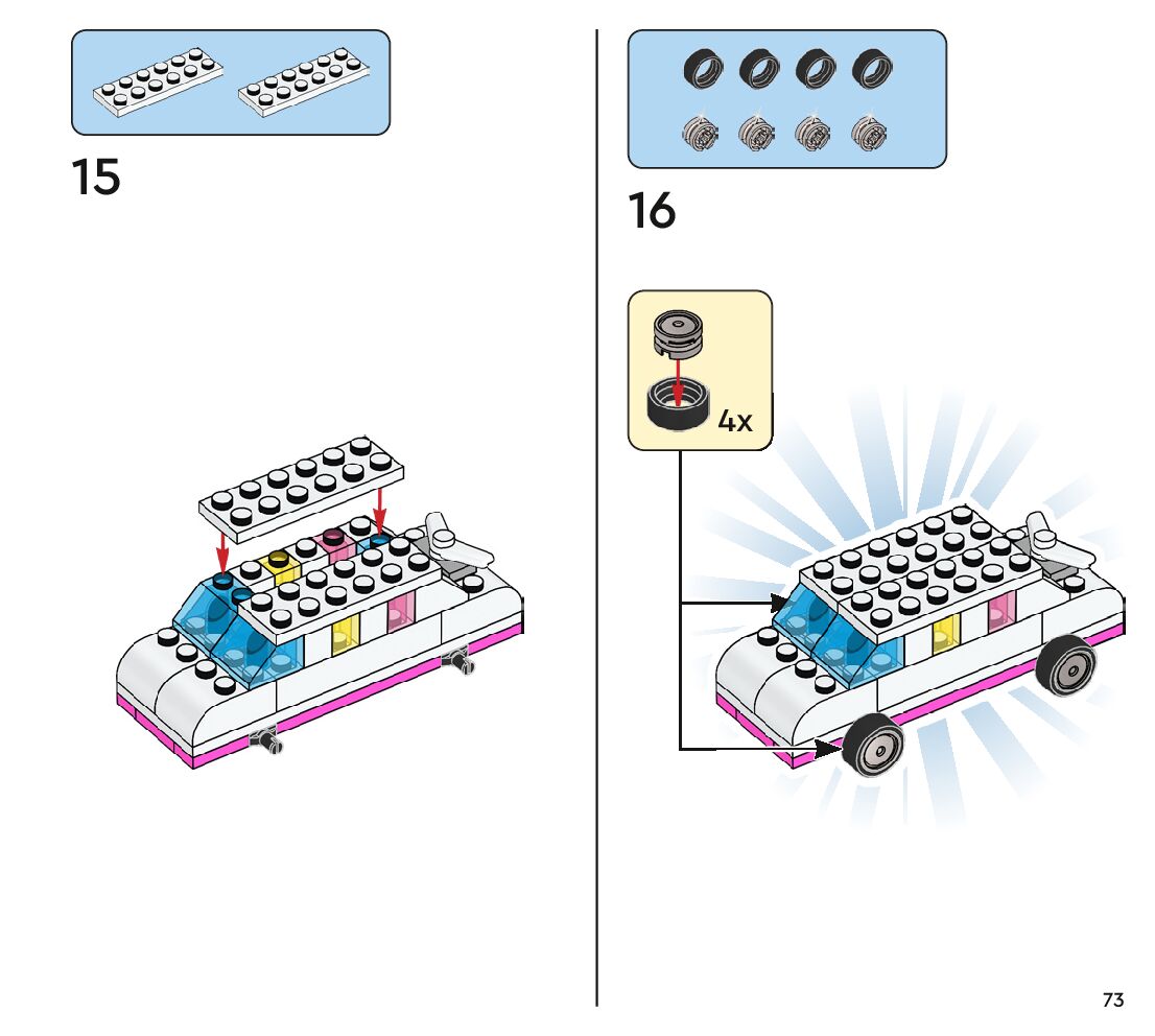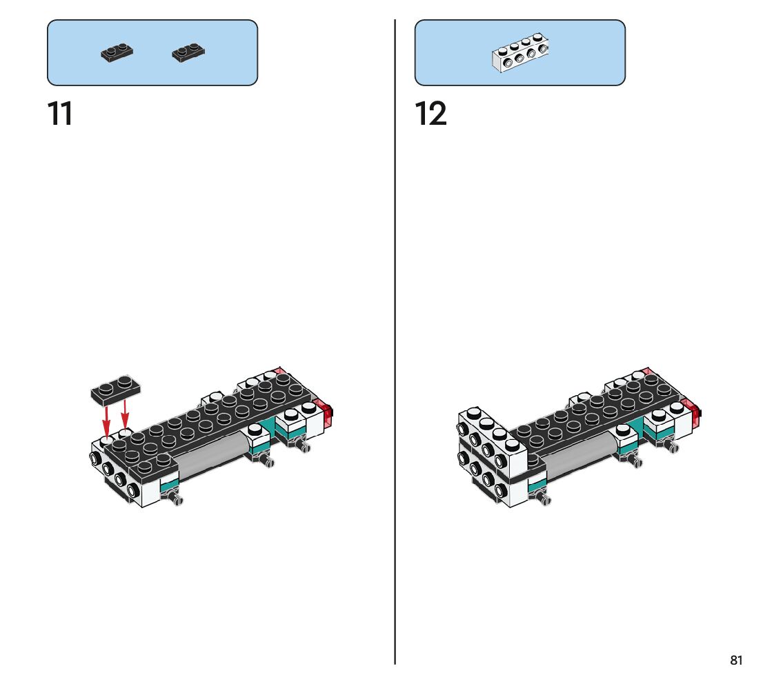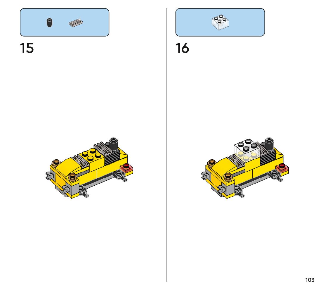 The assembly guide is prepared in a very understandable way for children and adult LEGO enthusiasts. A total of 112 picture galleries are shown, explaining the step-by-step construction stages for 1 different structures.