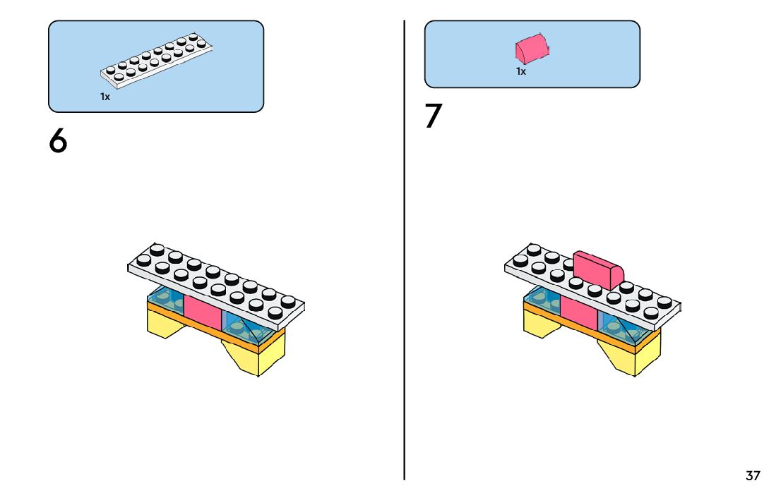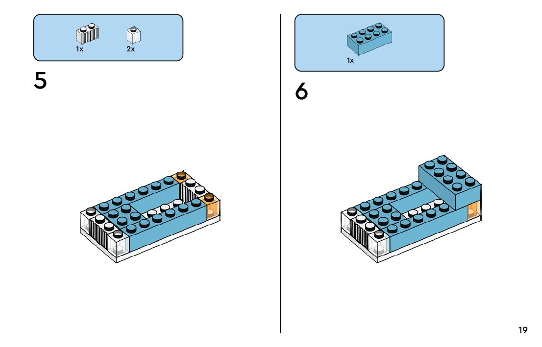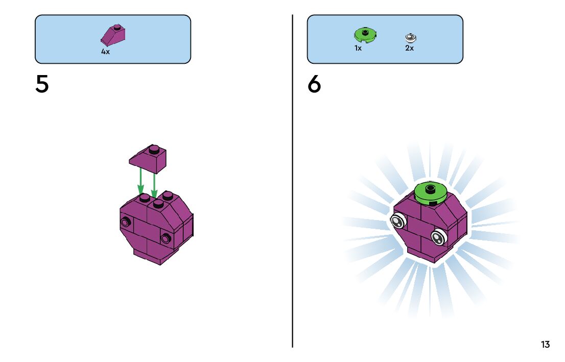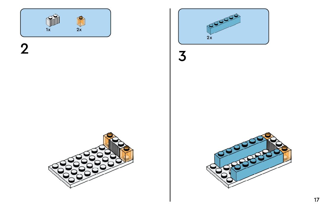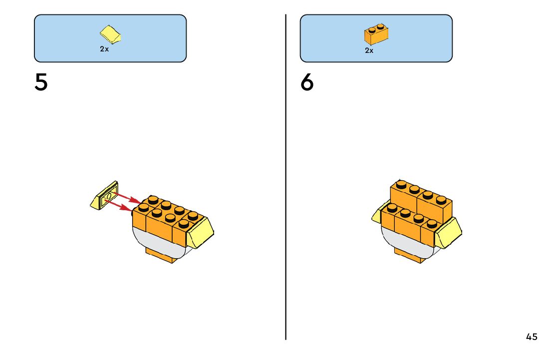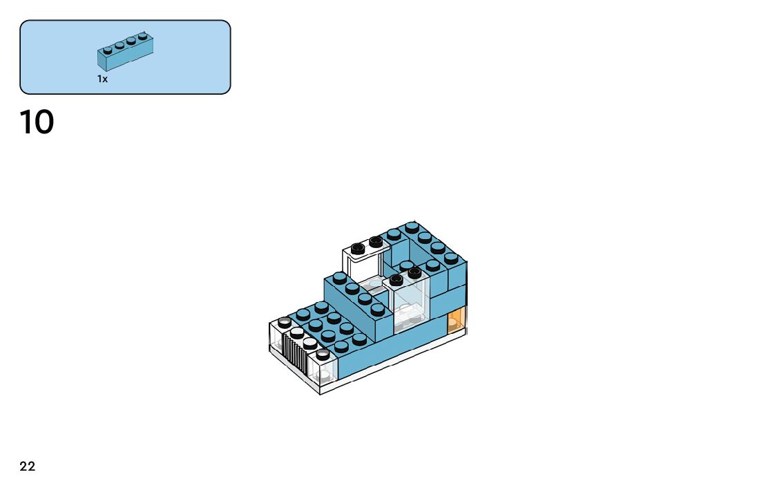 The assembly guide is prepared in a very understandable way for children and adult LEGO enthusiasts. A total of 100 picture galleries are shown, explaining the step-by-step construction stages for 2 different structures.