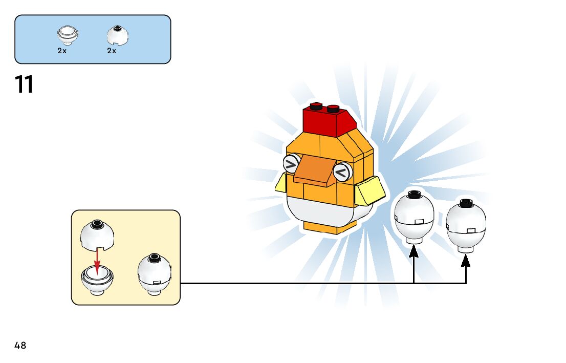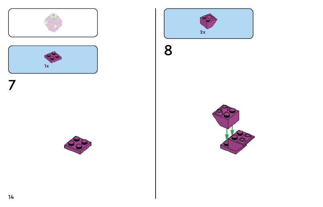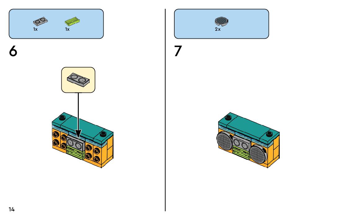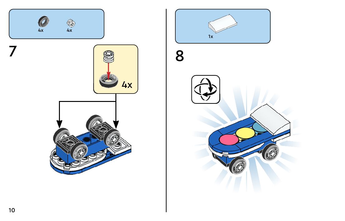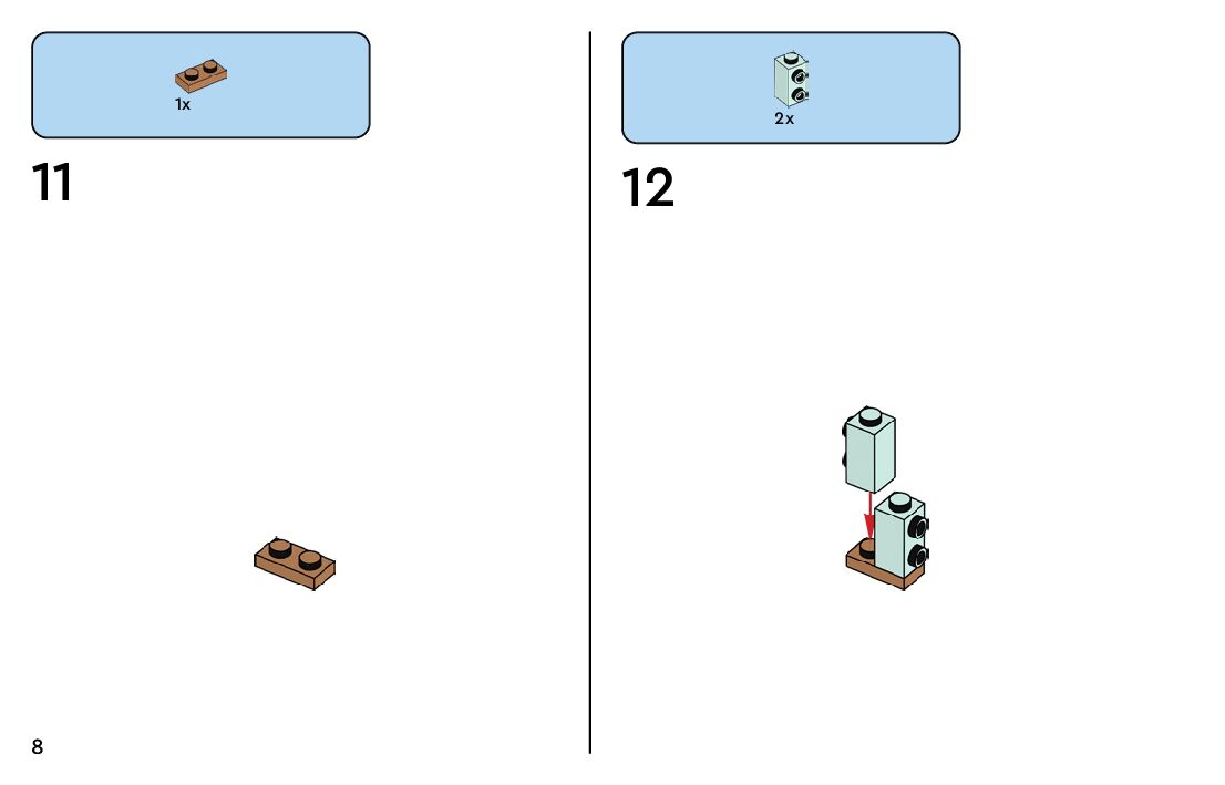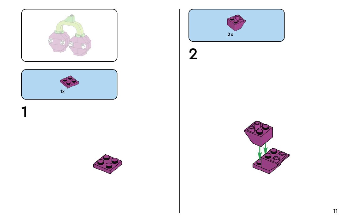The assembly guide is prepared in a very understandable way for children and adult LEGO enthusiasts. A total of 100 picture galleries are shown, explaining the step-by-step construction stages for 2 different structures.