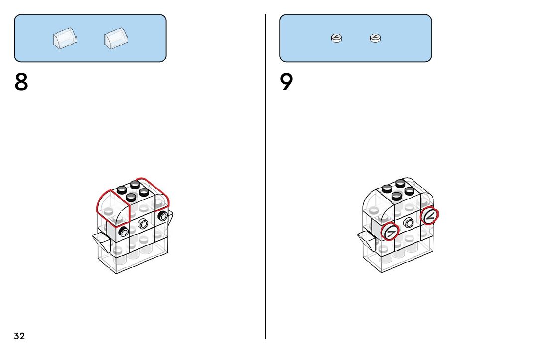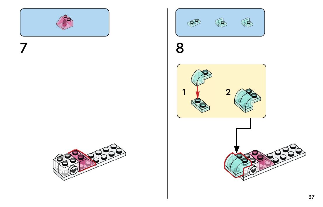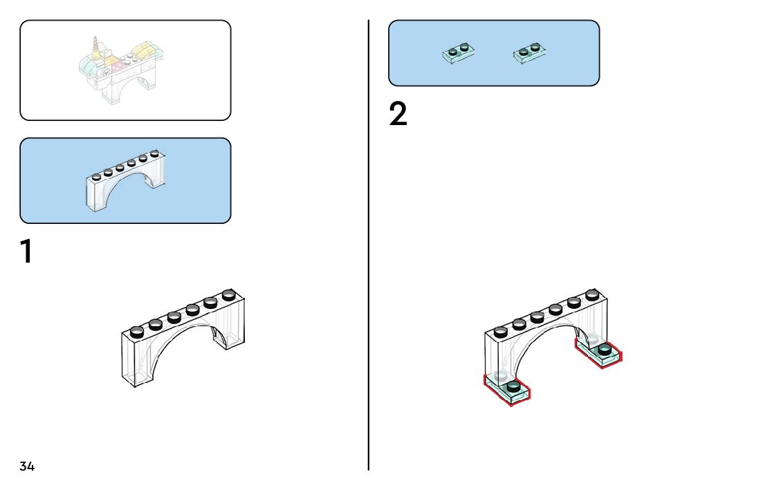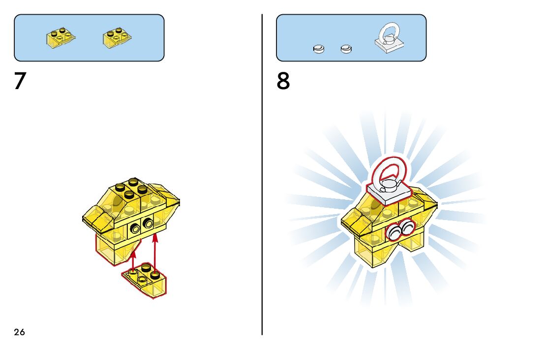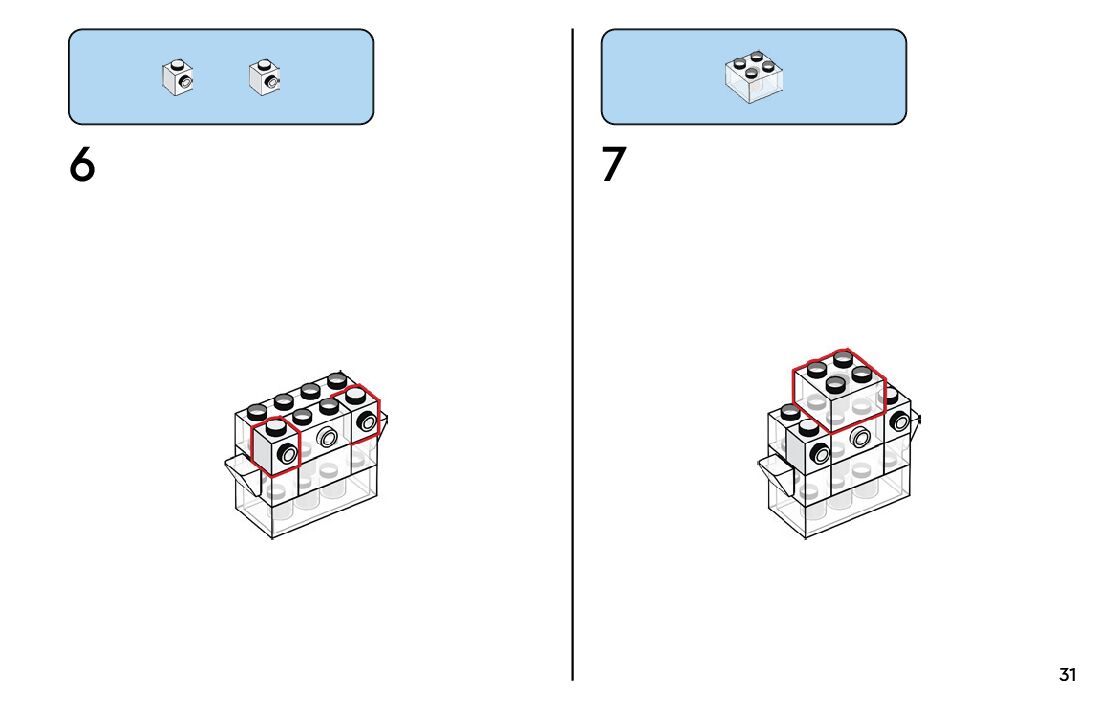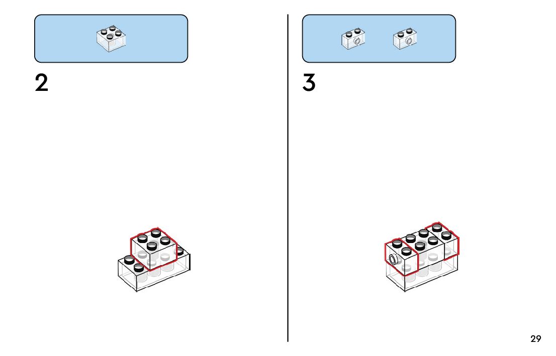 The assembly guide is prepared in a very understandable way for children and adult LEGO enthusiasts. A total of 48 picture galleries are shown, explaining the step-by-step construction stages for 1 different structures.
