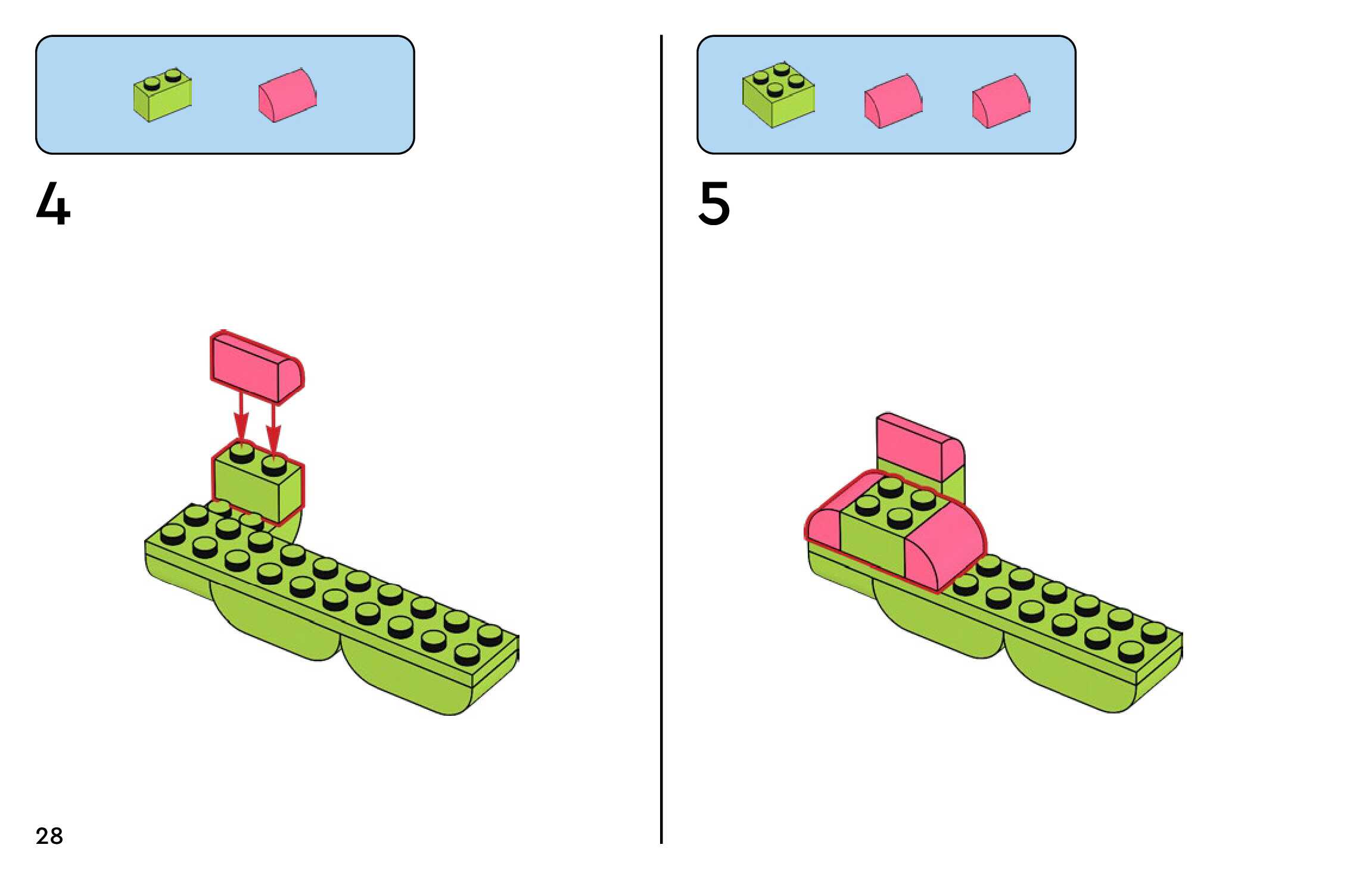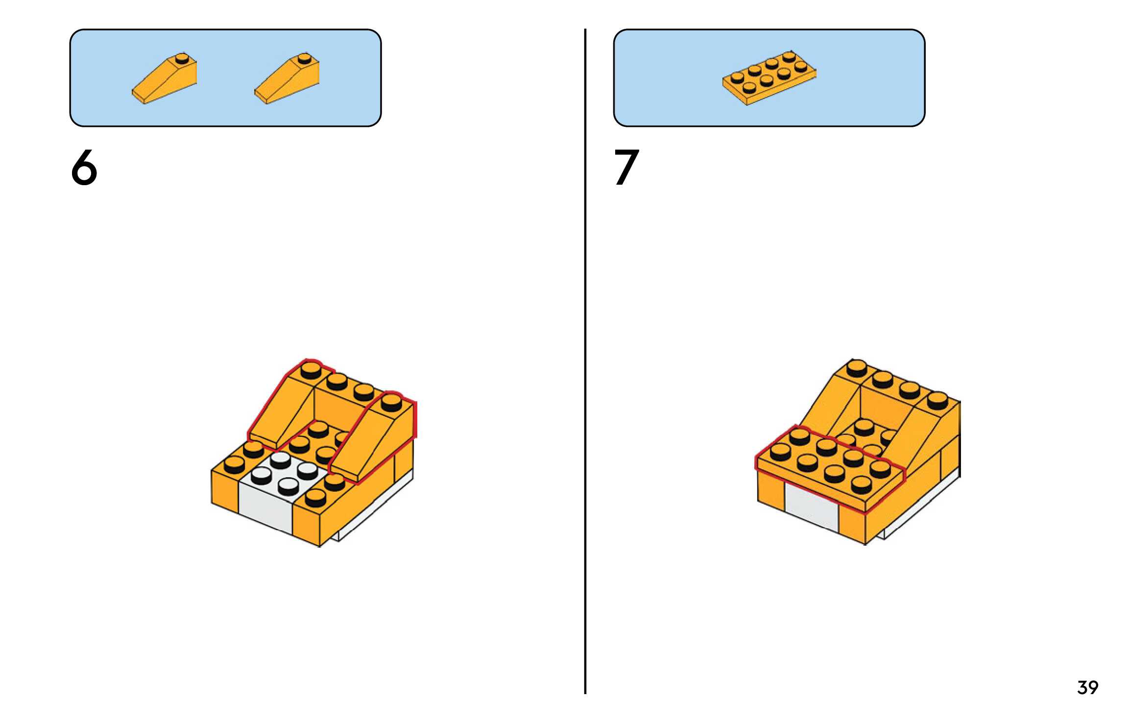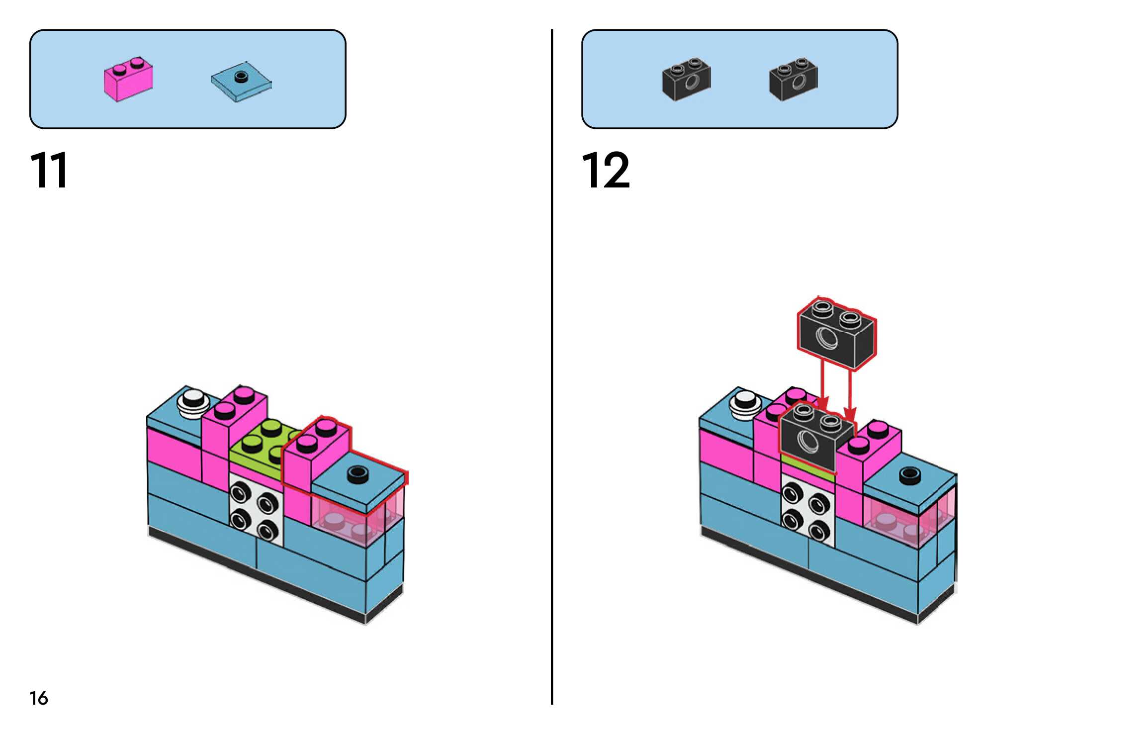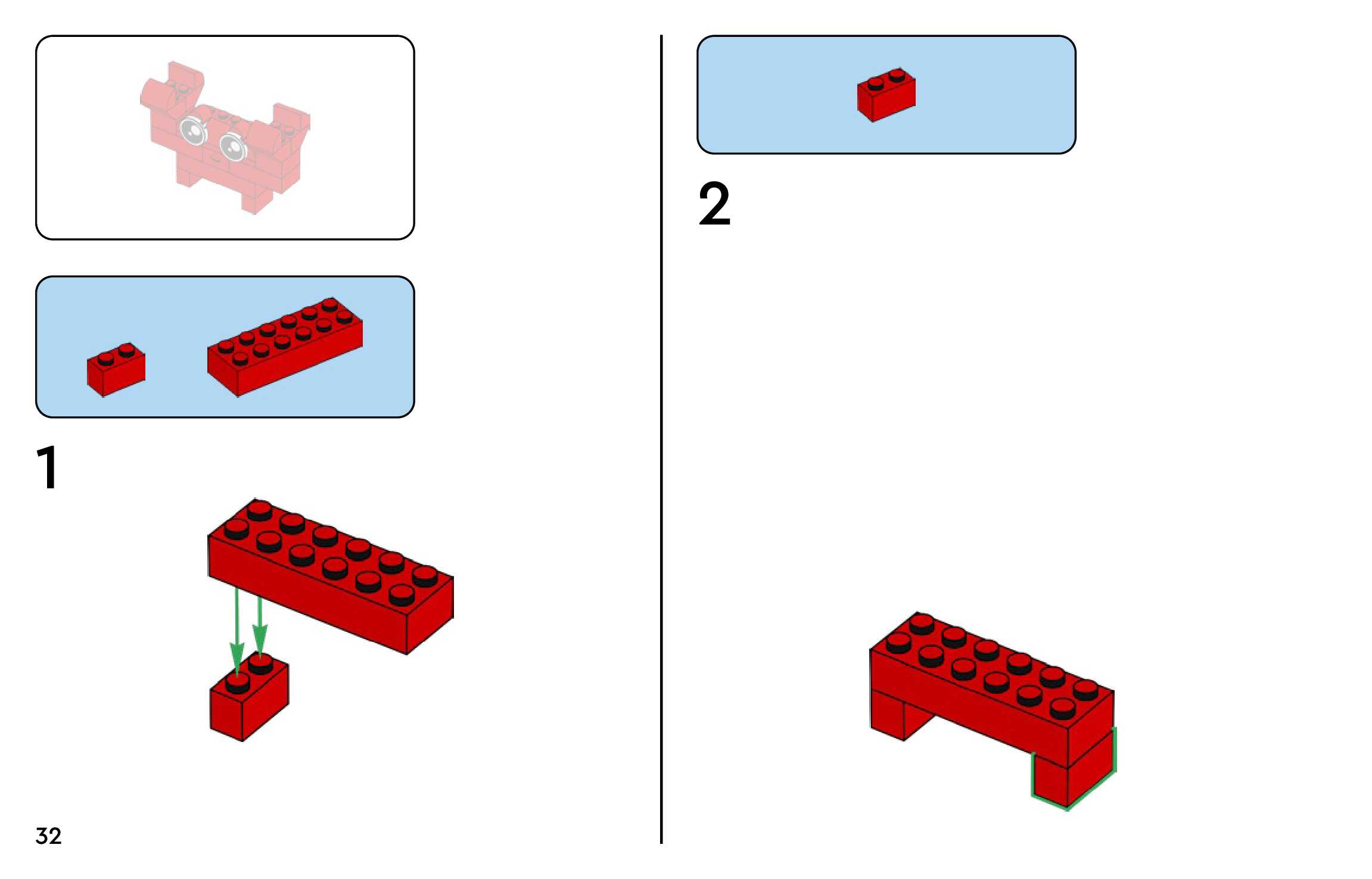 The assembly guide is prepared in a very understandable way for children and adult LEGO enthusiasts. A total of 108 picture galleries are shown, explaining the step-by-step construction stages for 2 different structures.