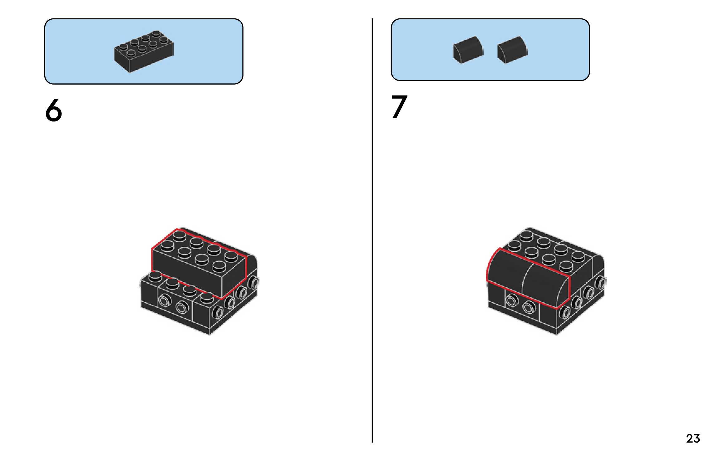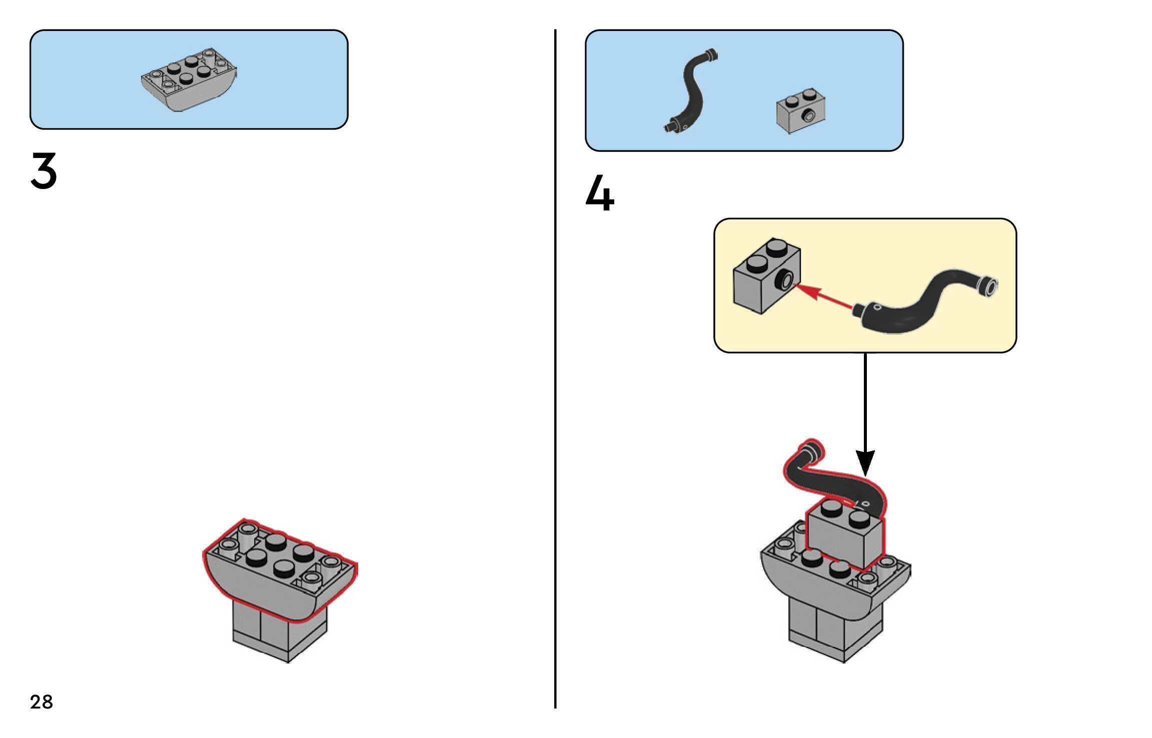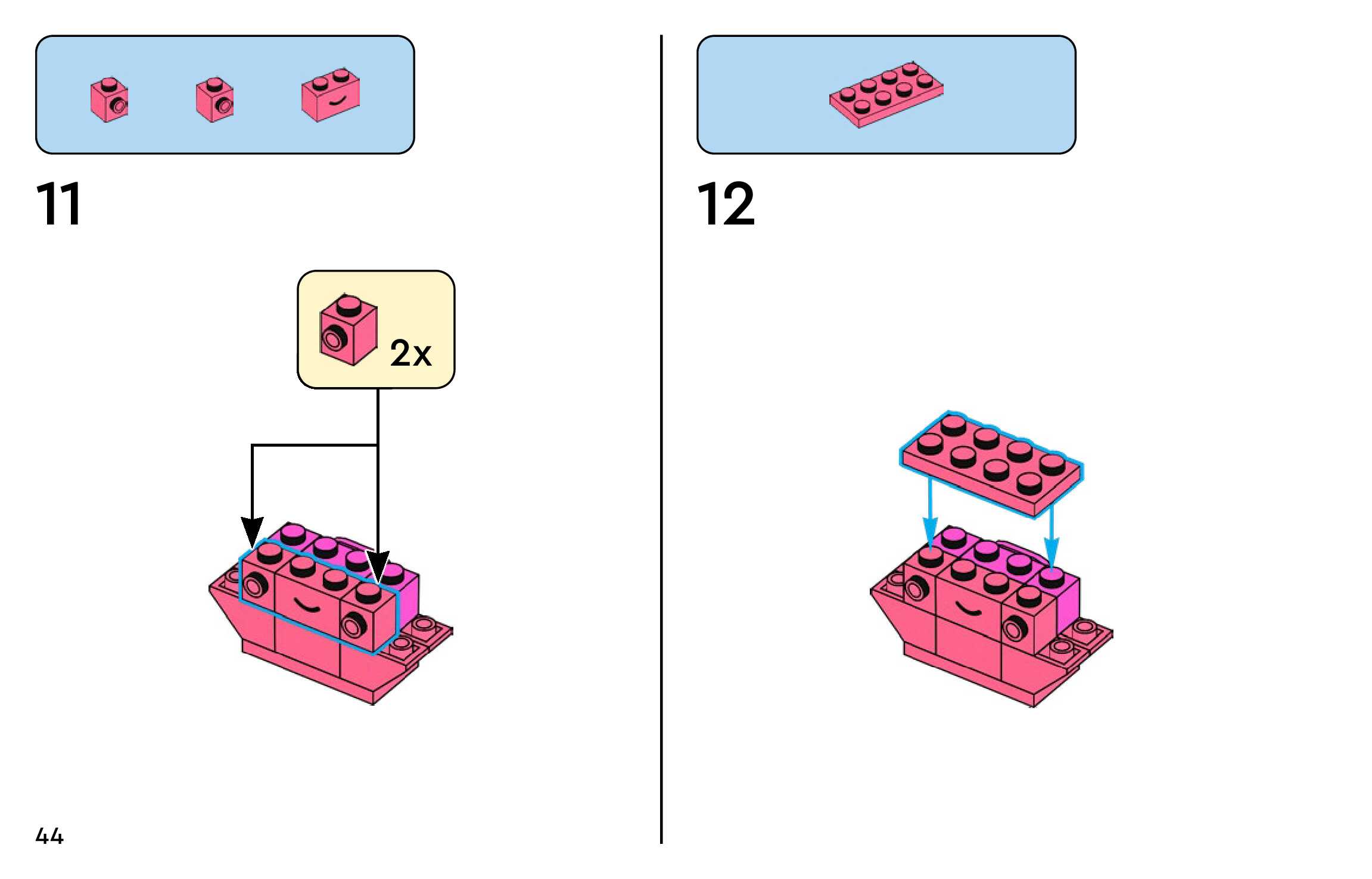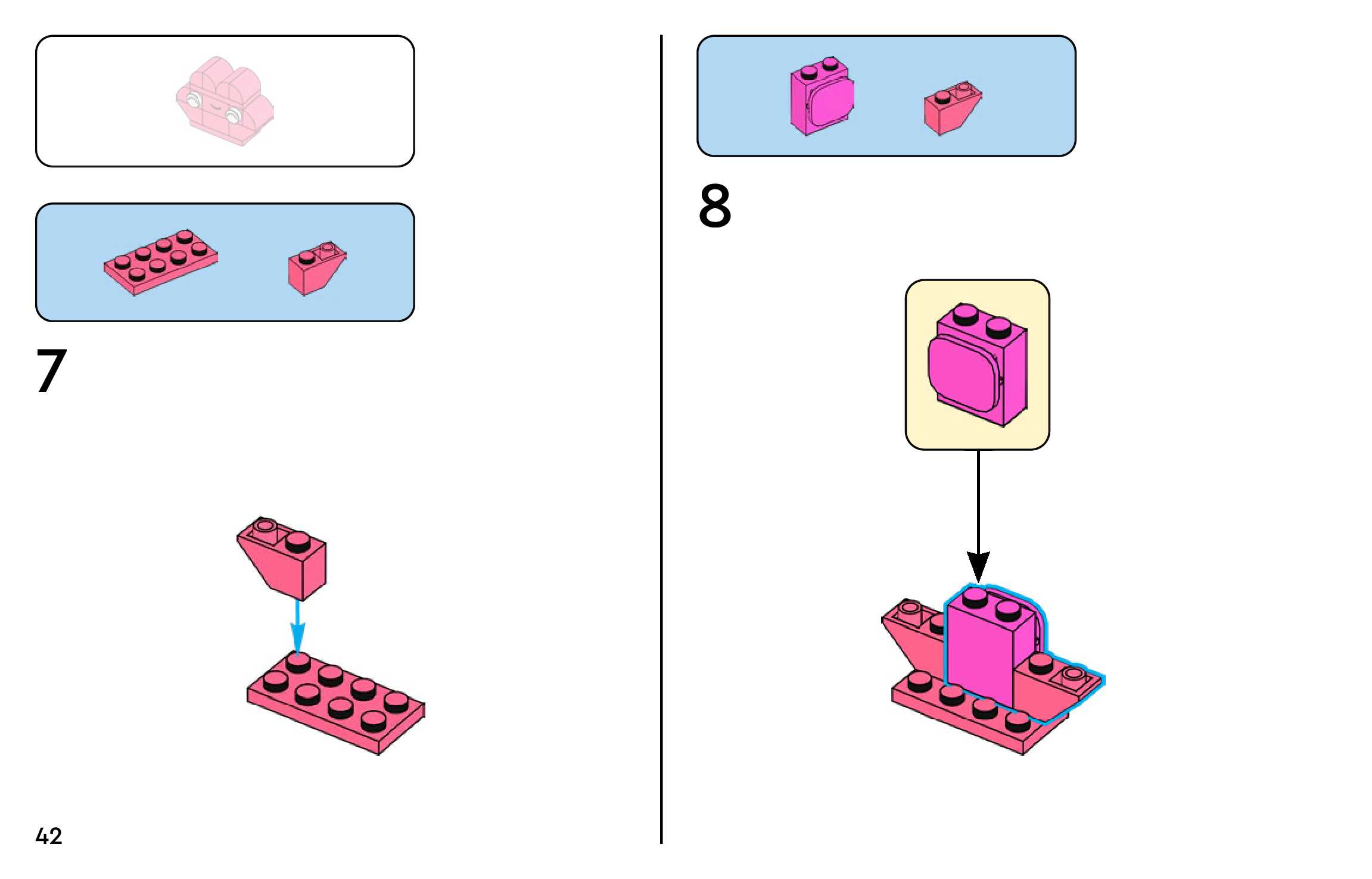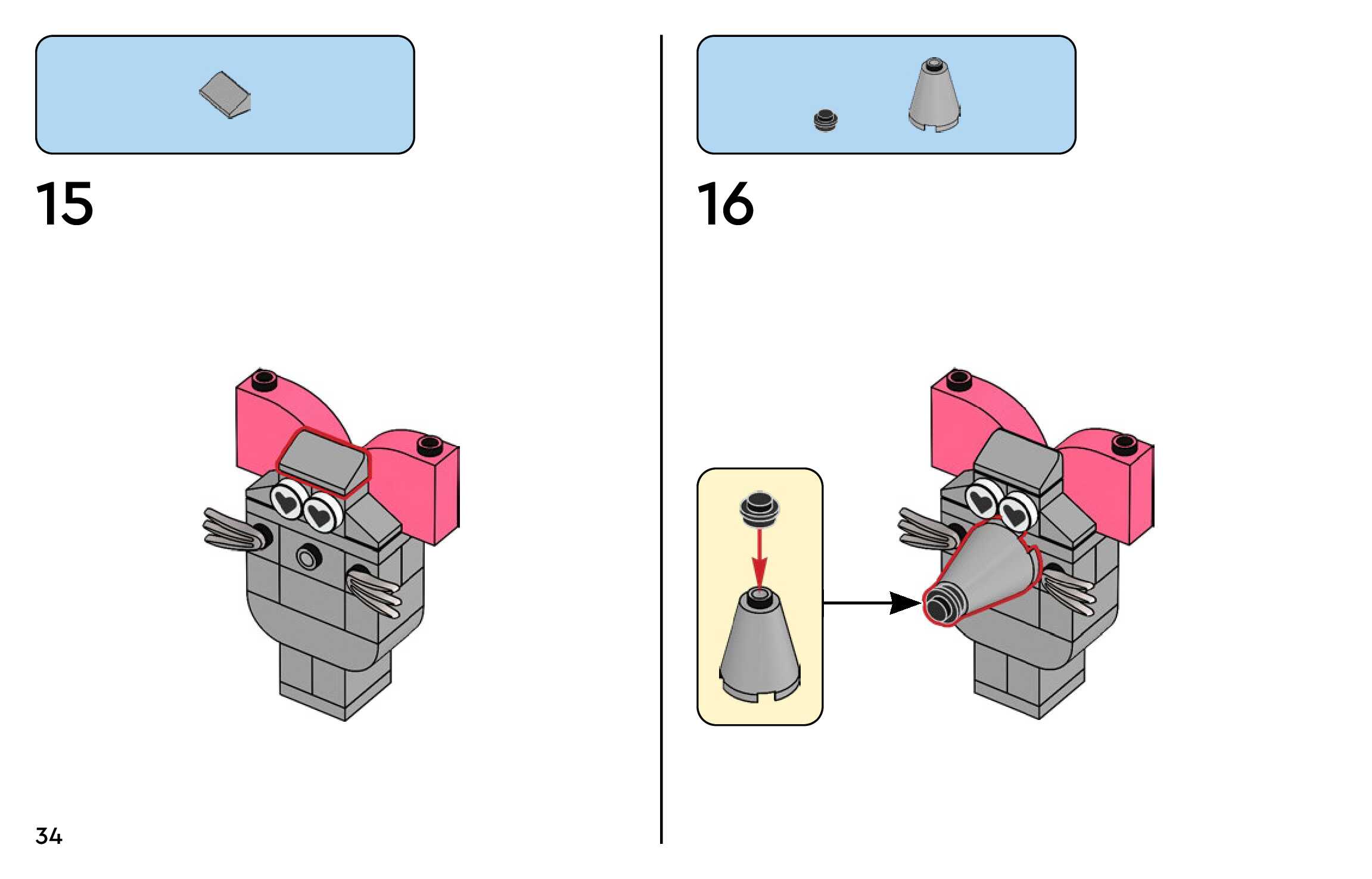 The assembly guide is prepared in a very understandable way for children and adult LEGO enthusiasts. A total of 108 picture galleries are shown, explaining the step-by-step construction stages for 2 different structures.