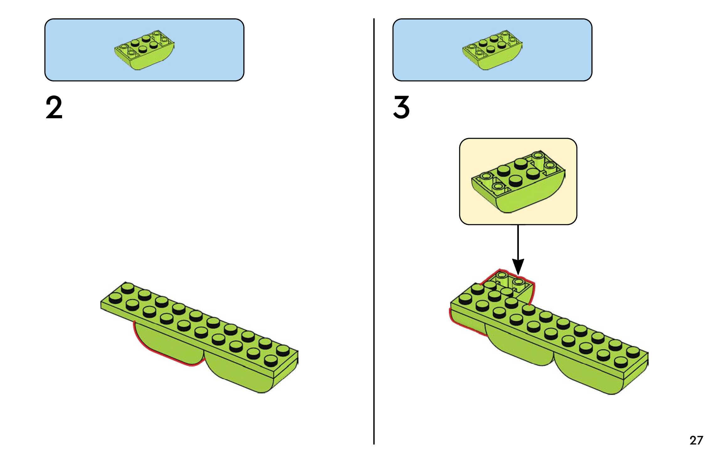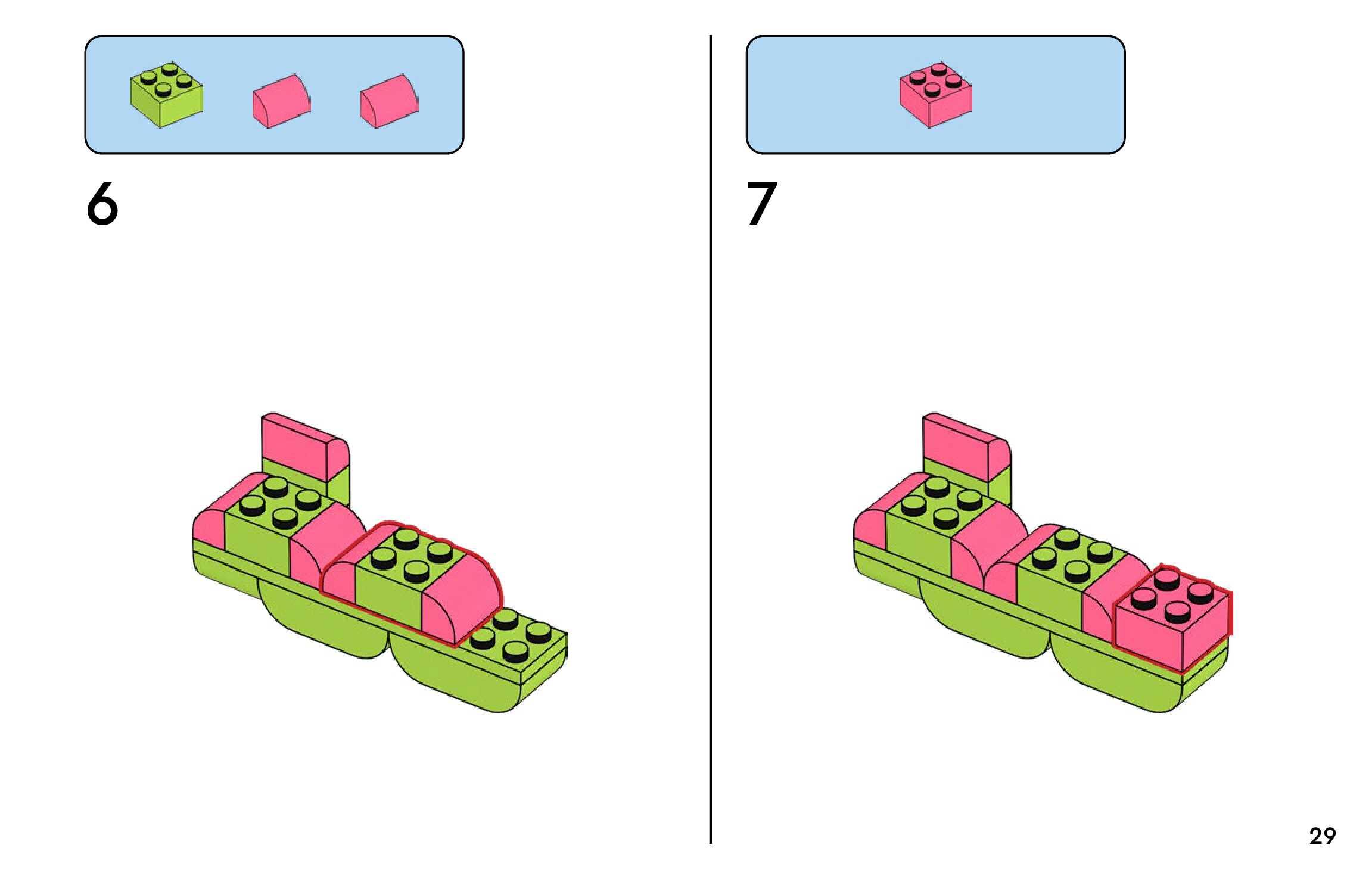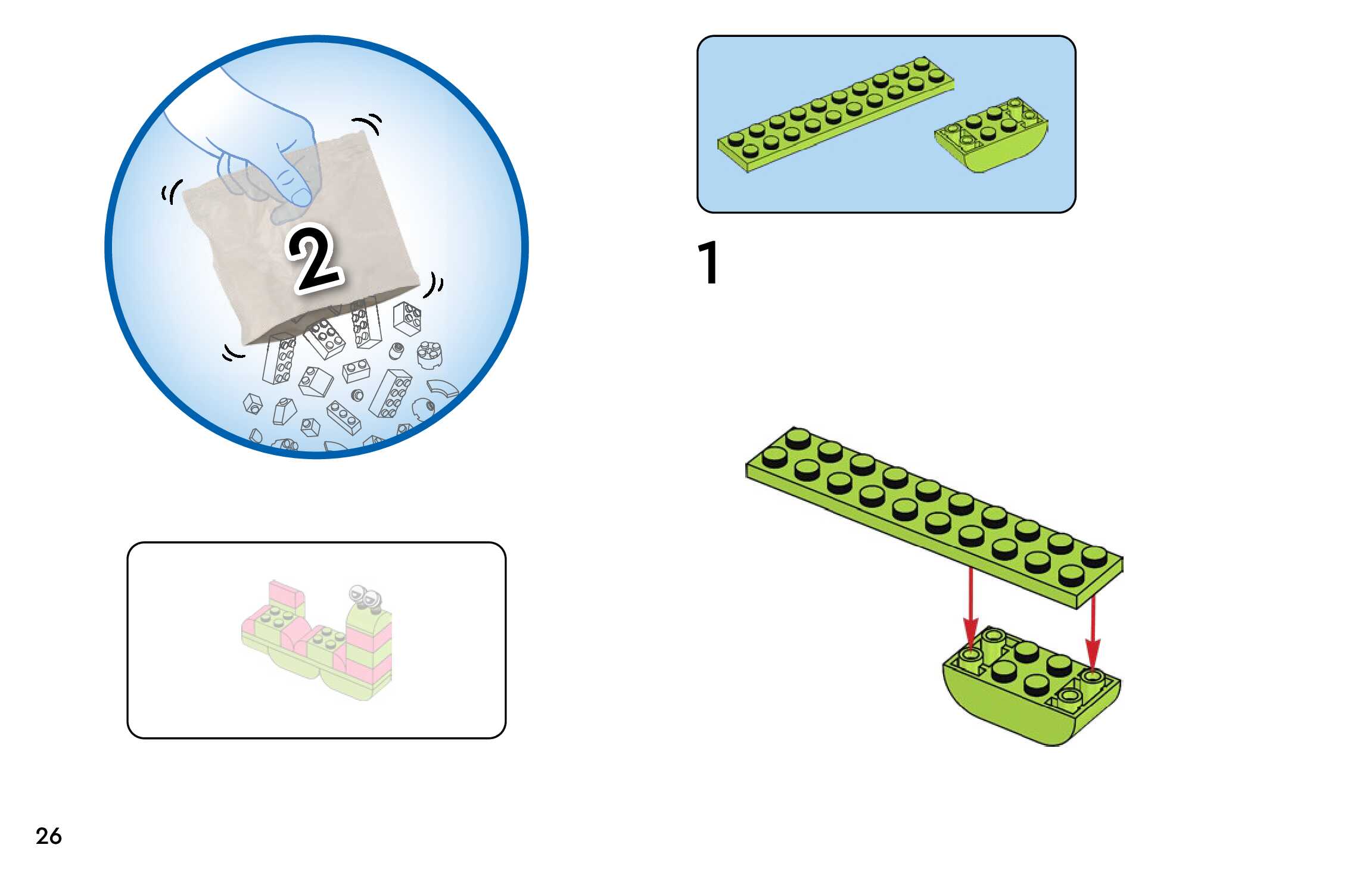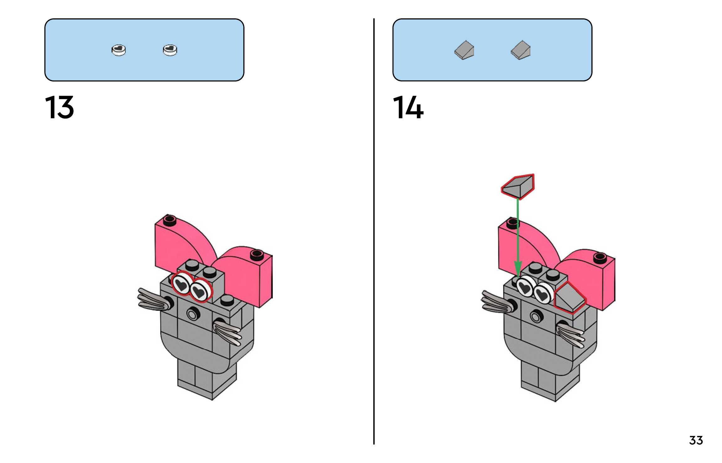The assembly guide is prepared in a very understandable way for children and adult LEGO enthusiasts. A total of 108 picture galleries are shown, explaining the step-by-step construction stages for 2 different structures.