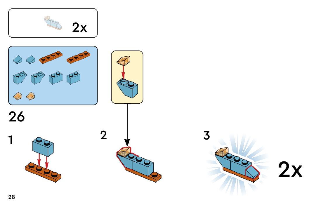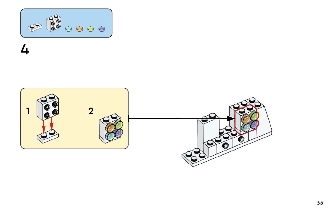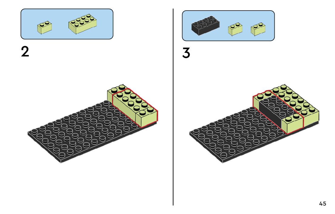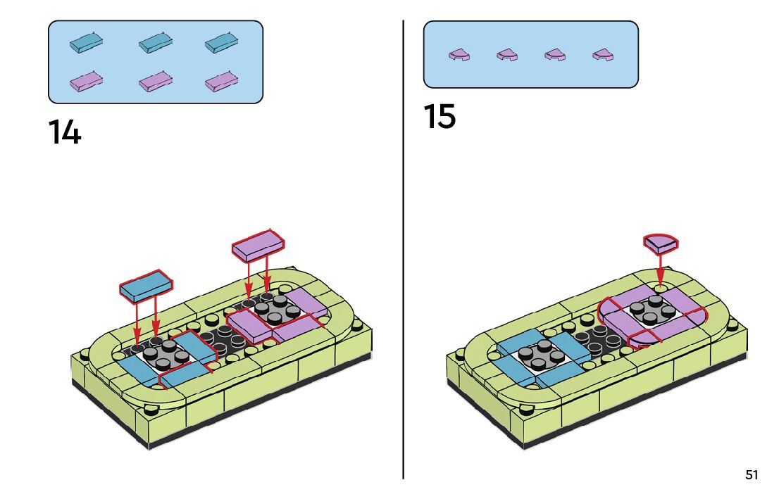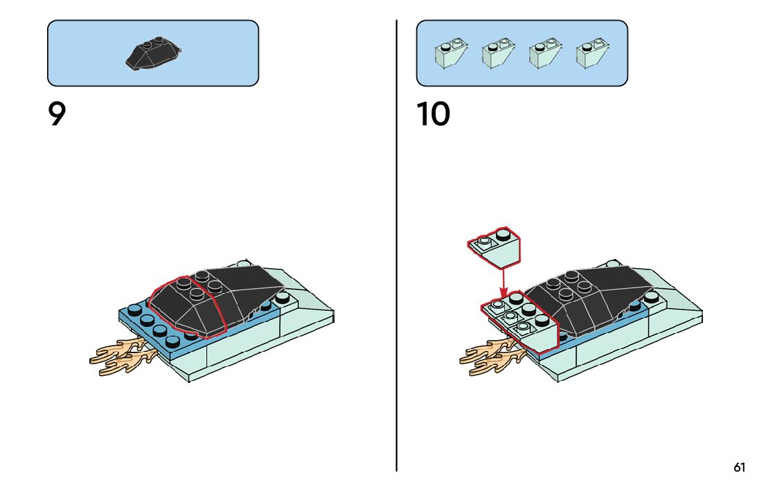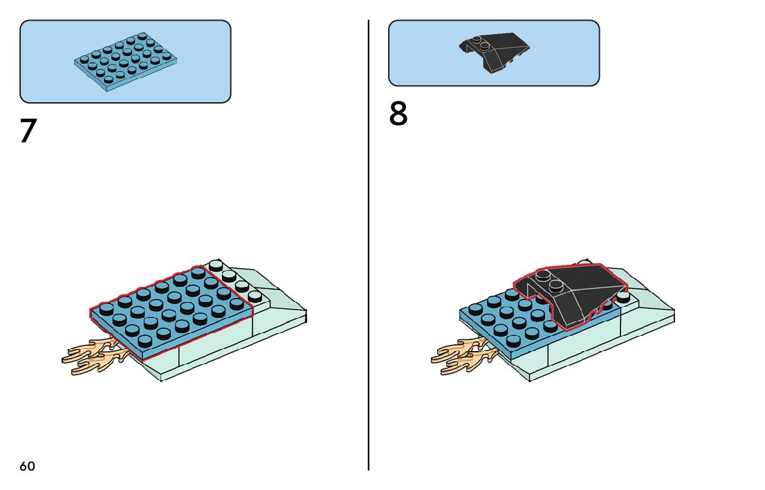 The assembly guide is prepared in a very understandable way for children and adult LEGO enthusiasts. A total of 72 picture galleries are shown, explaining the step-by-step construction stages for 1 different structures.