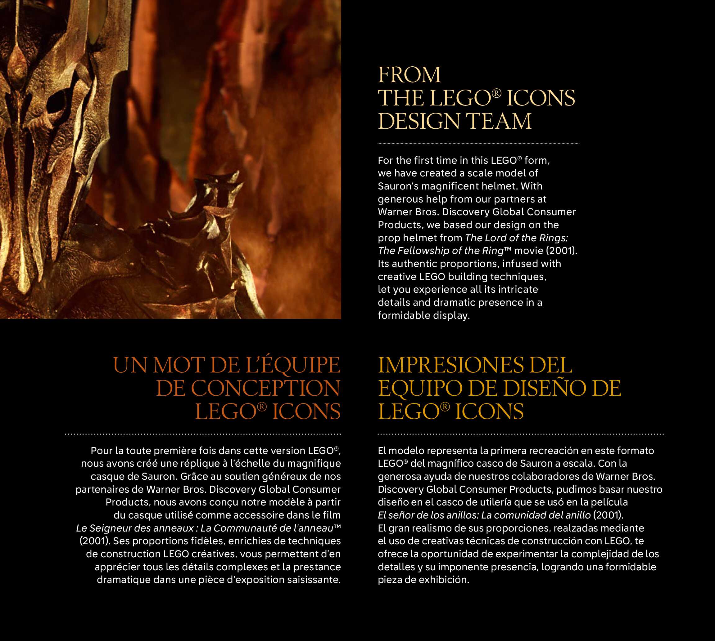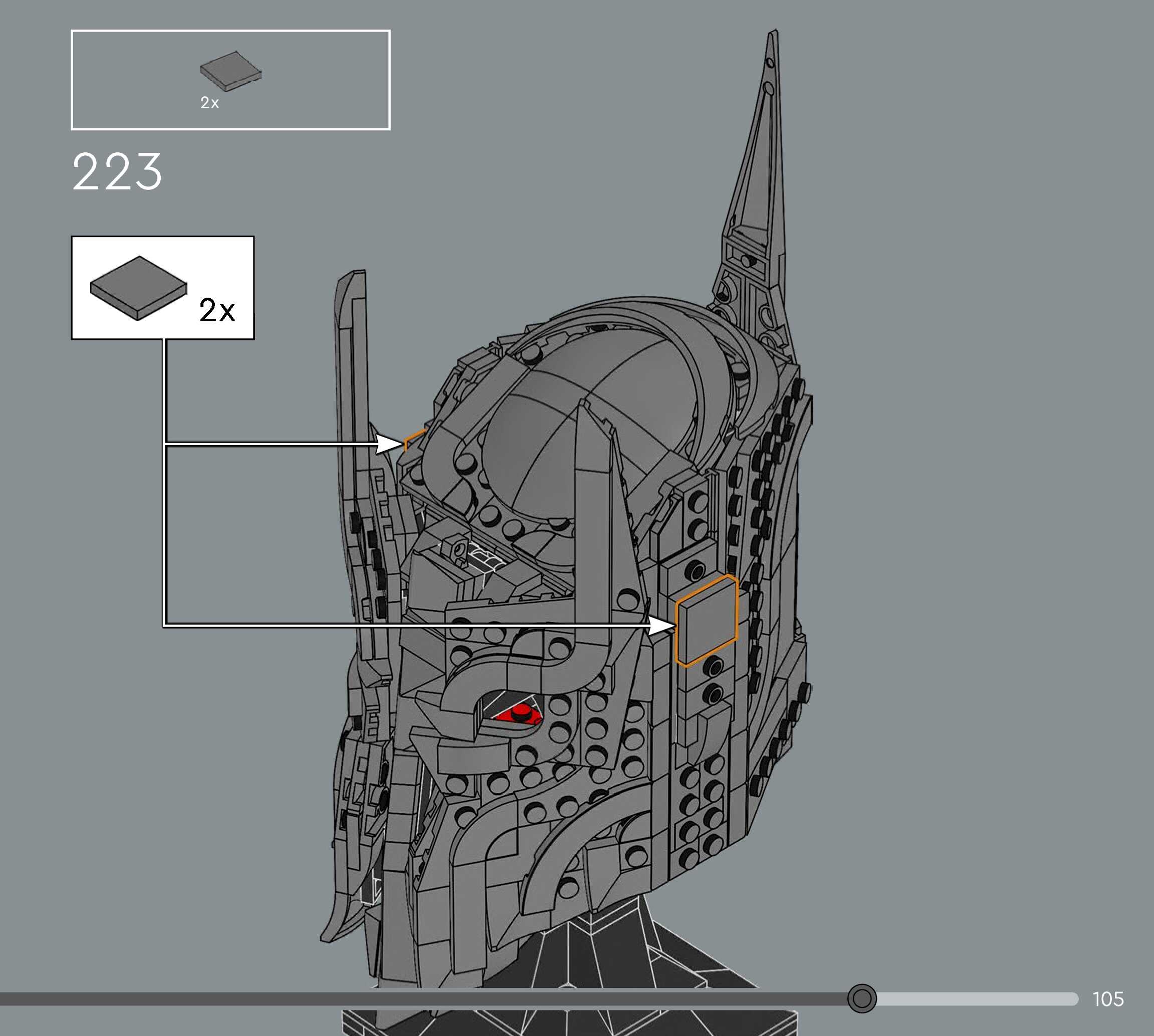 On this page you can find the original construction manual for the LEGO 11373 set. With the assembly manual you can easily learn how to build the The Lord of the Rings: Sauron's Helmet step by step. The set was released in 2026.