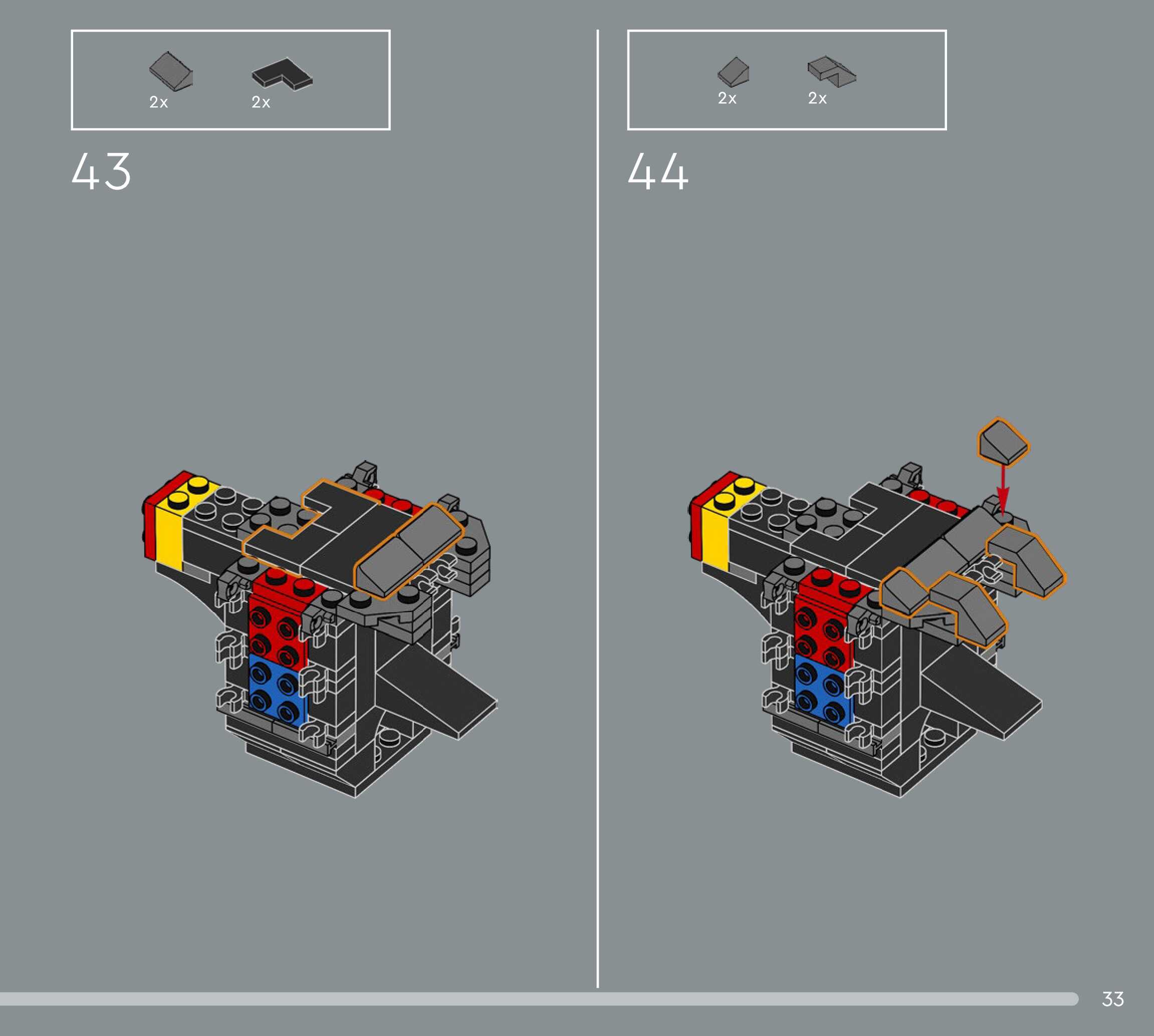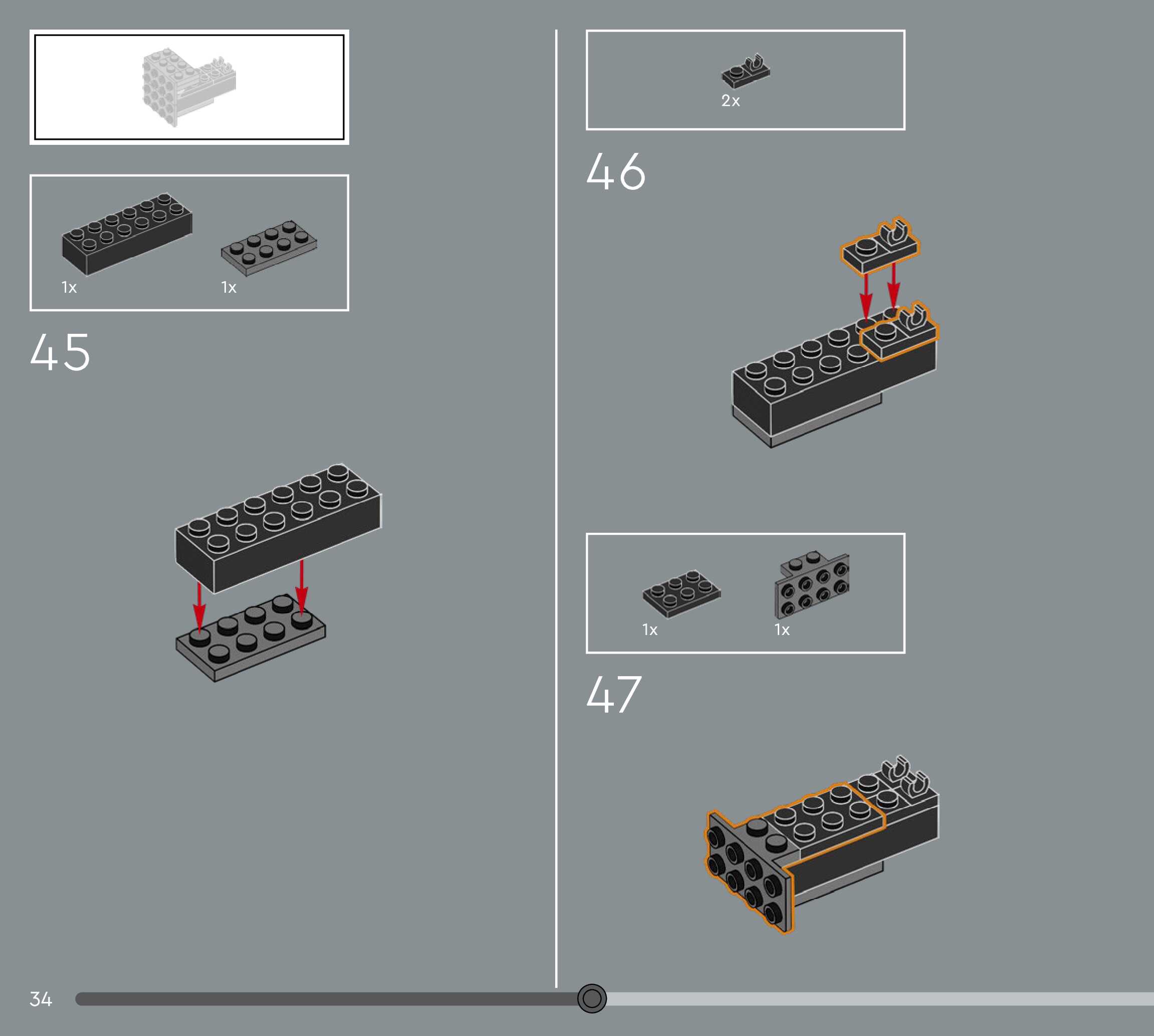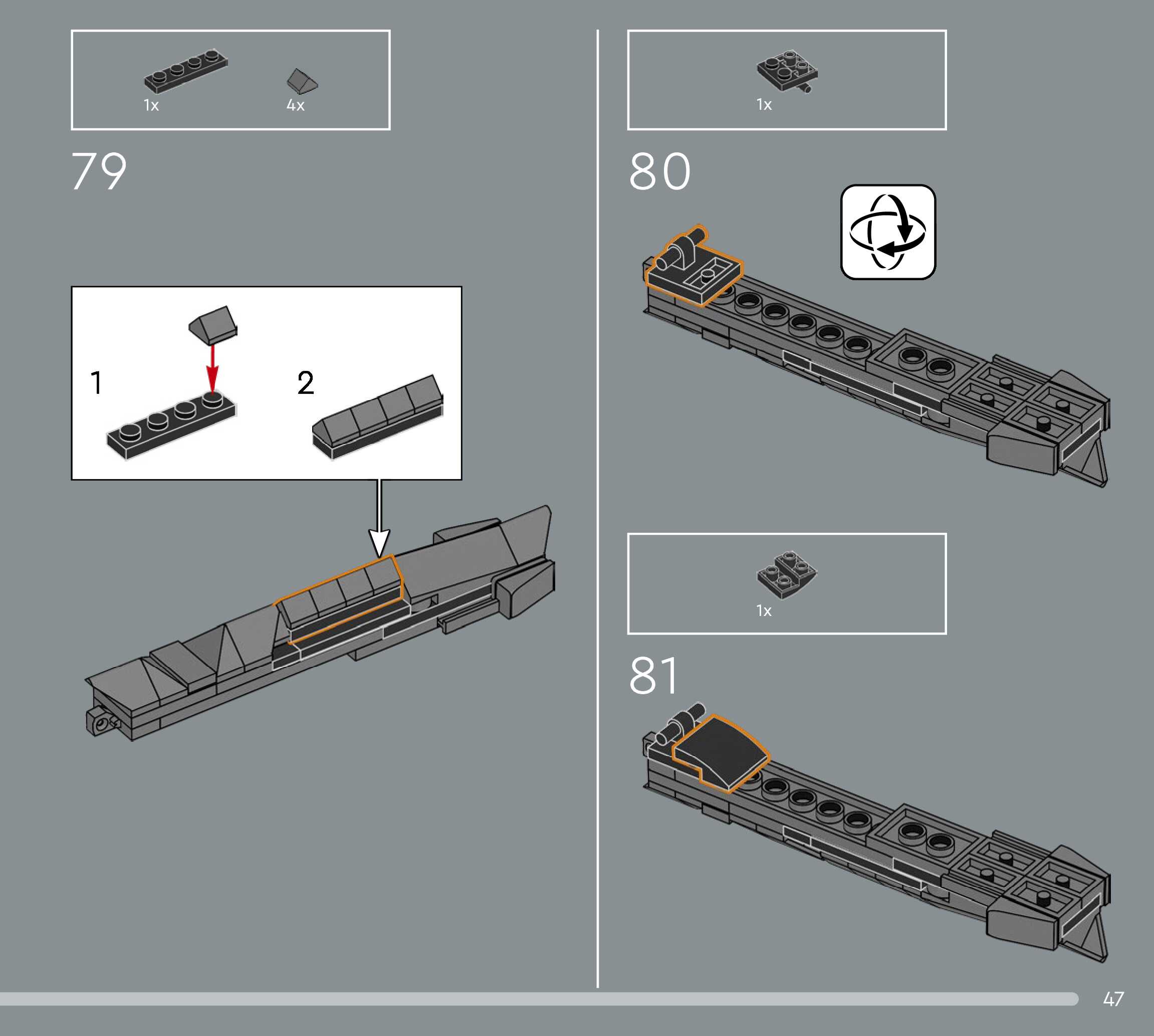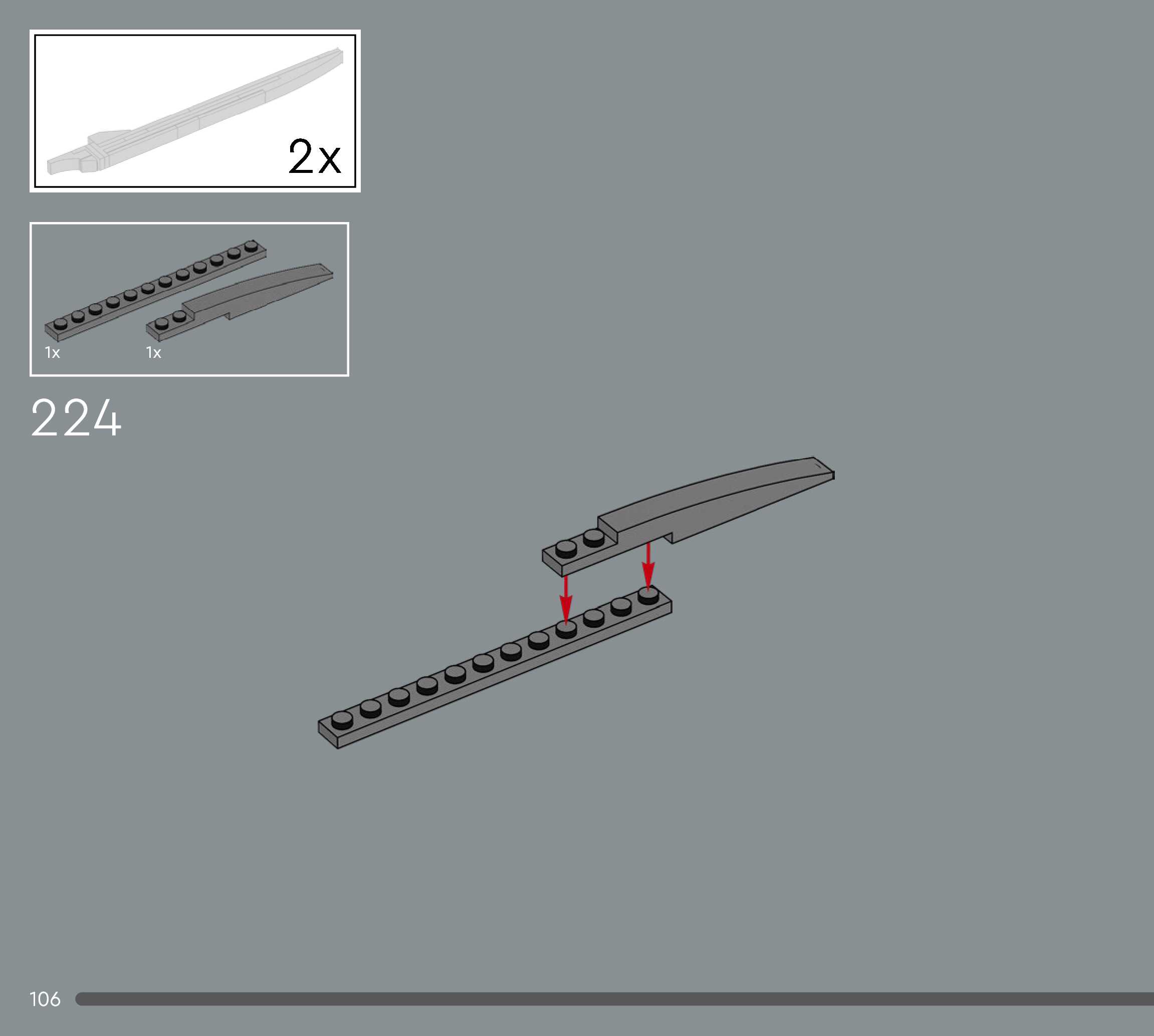 The assembly guide is prepared in a very understandable way for children and adult LEGO enthusiasts. A total of 124 picture galleries are shown, explaining the step-by-step construction stages for 1 different structures.