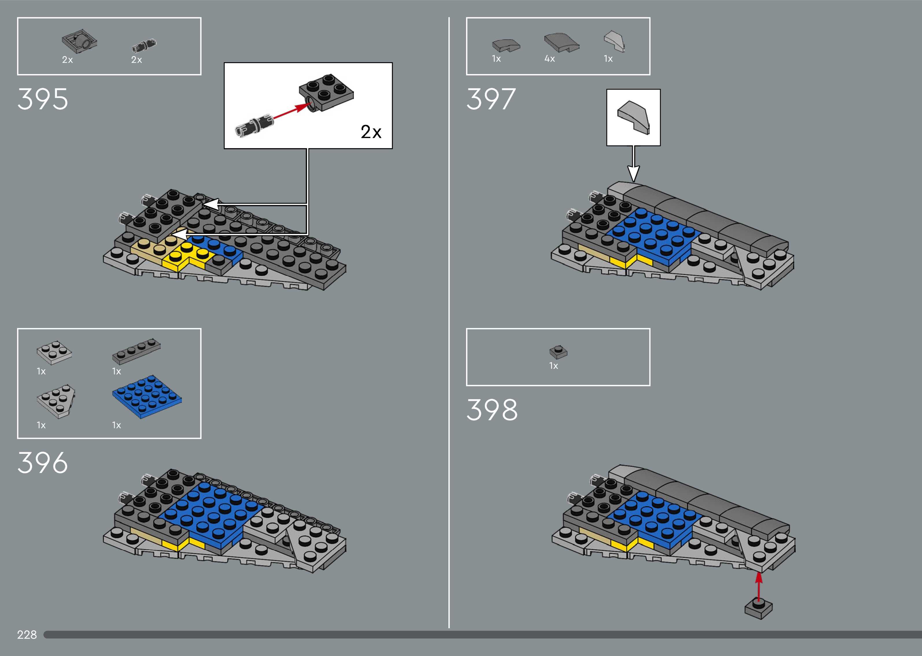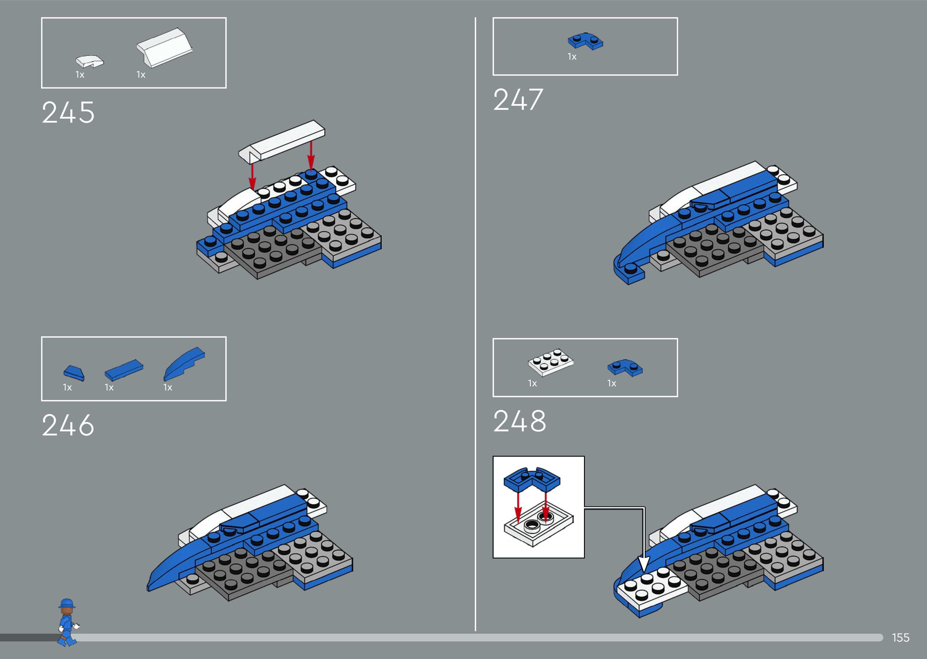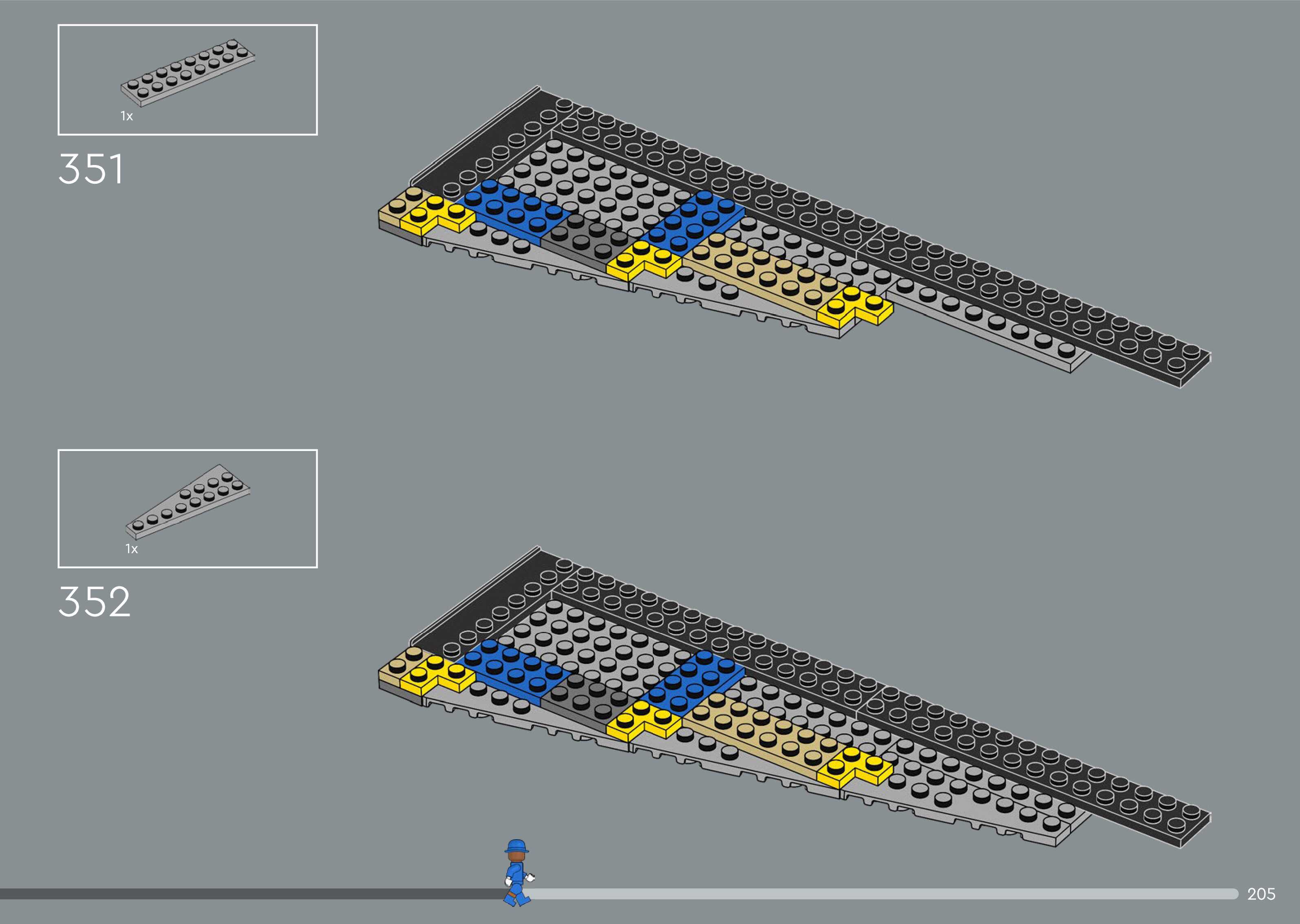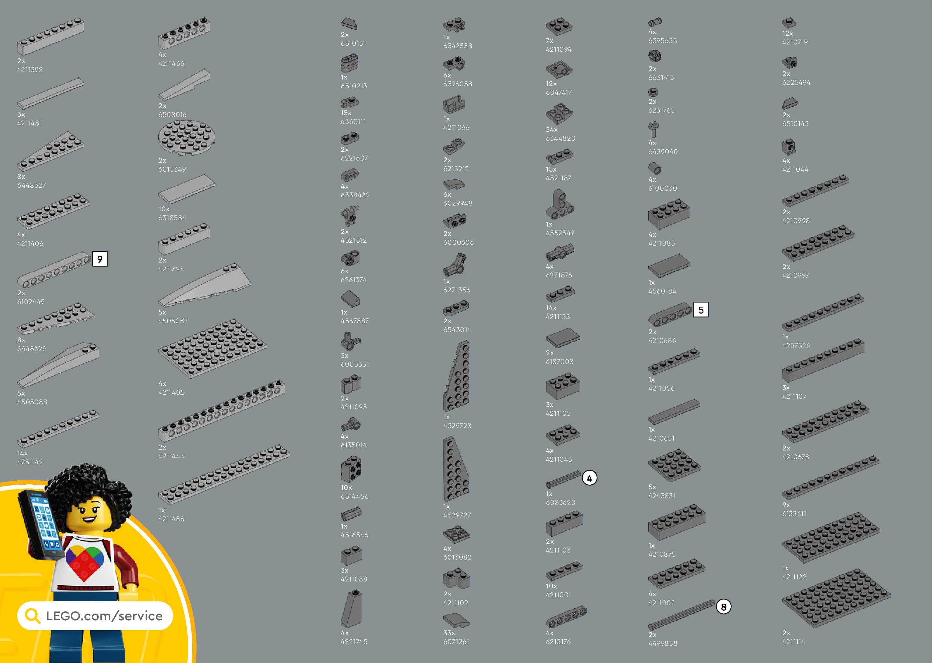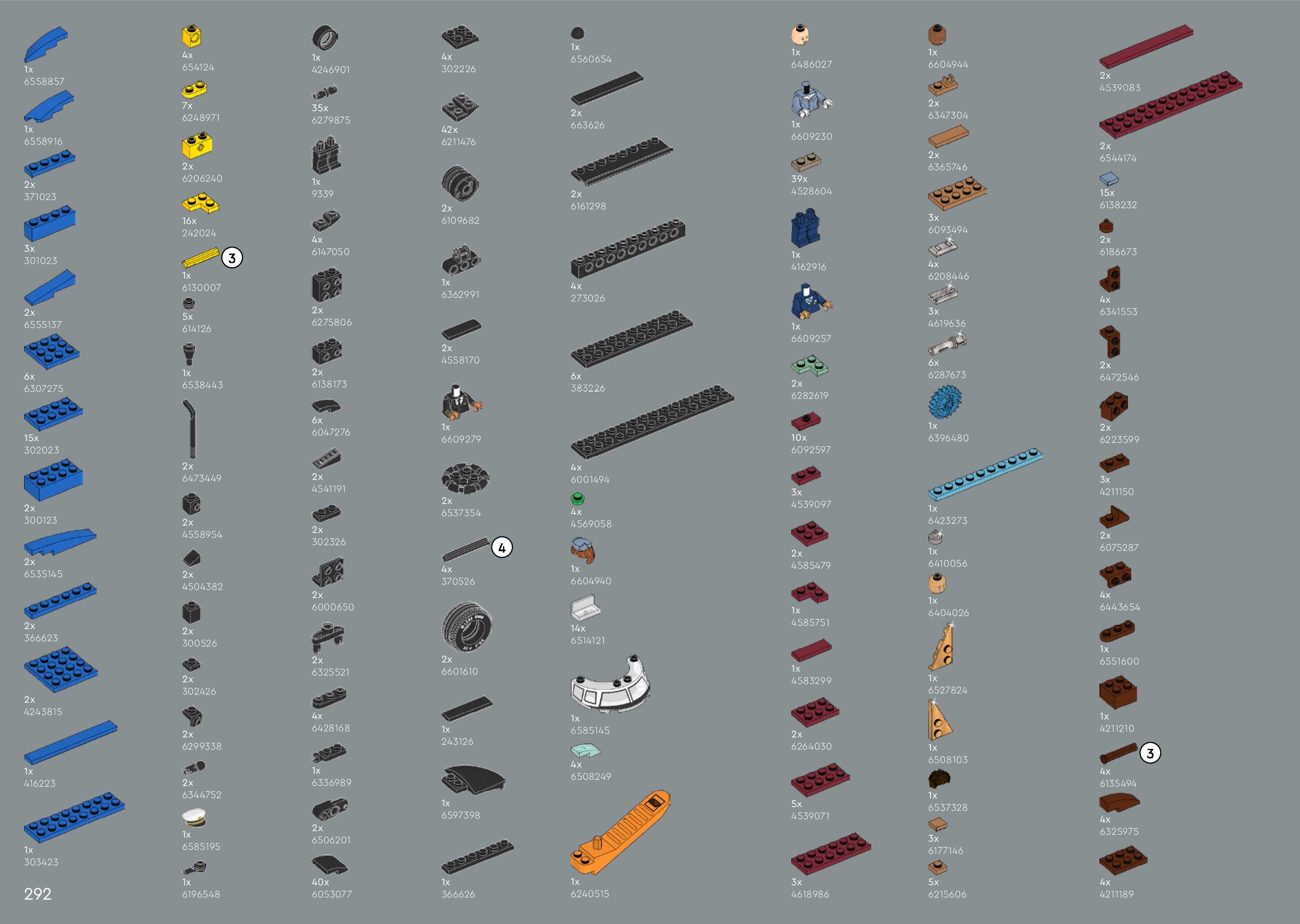The assembly guide is prepared in a very understandable way for children and adult LEGO enthusiasts. A total of 296 picture galleries are shown, explaining the step-by-step construction stages for 1 different structures.