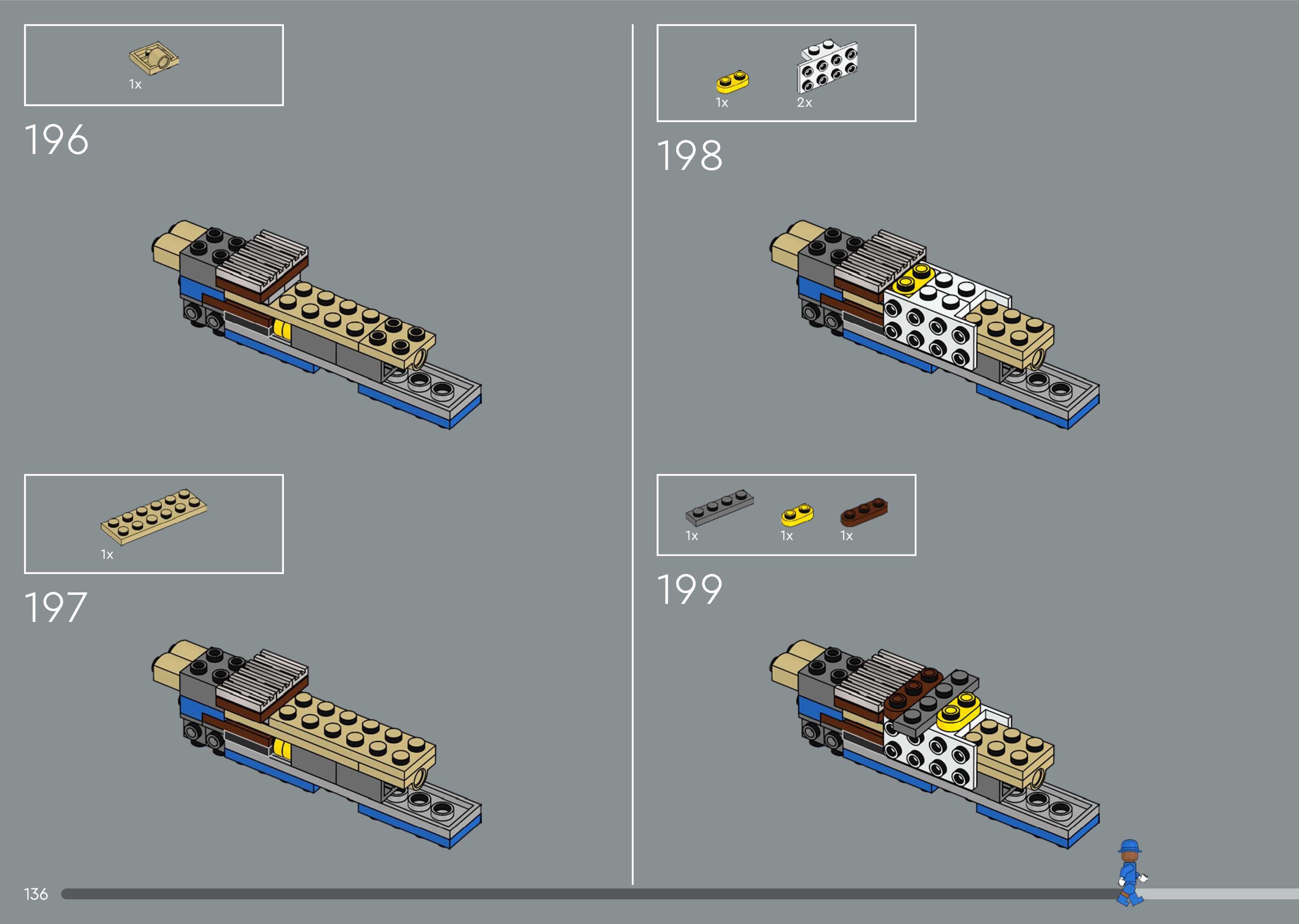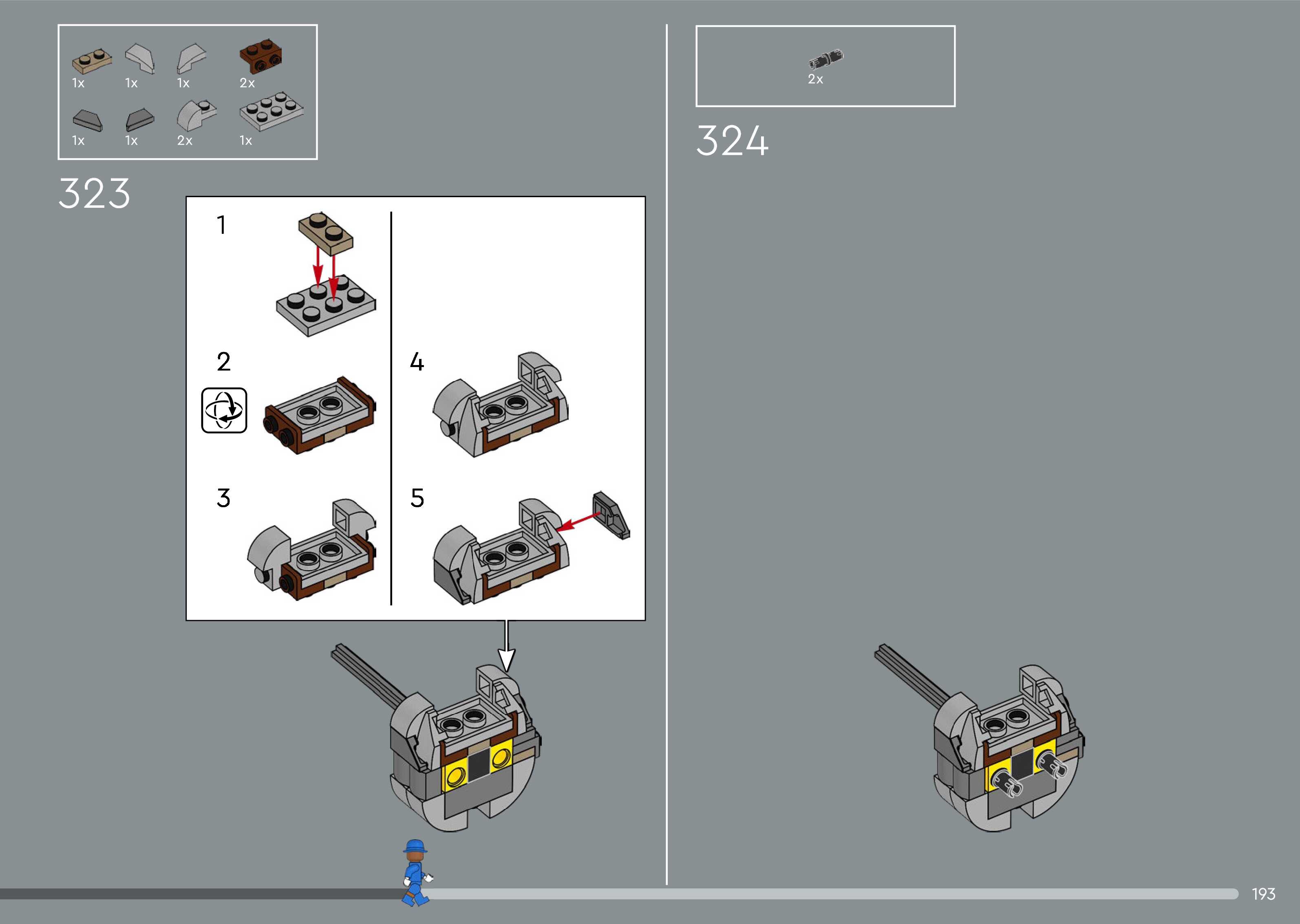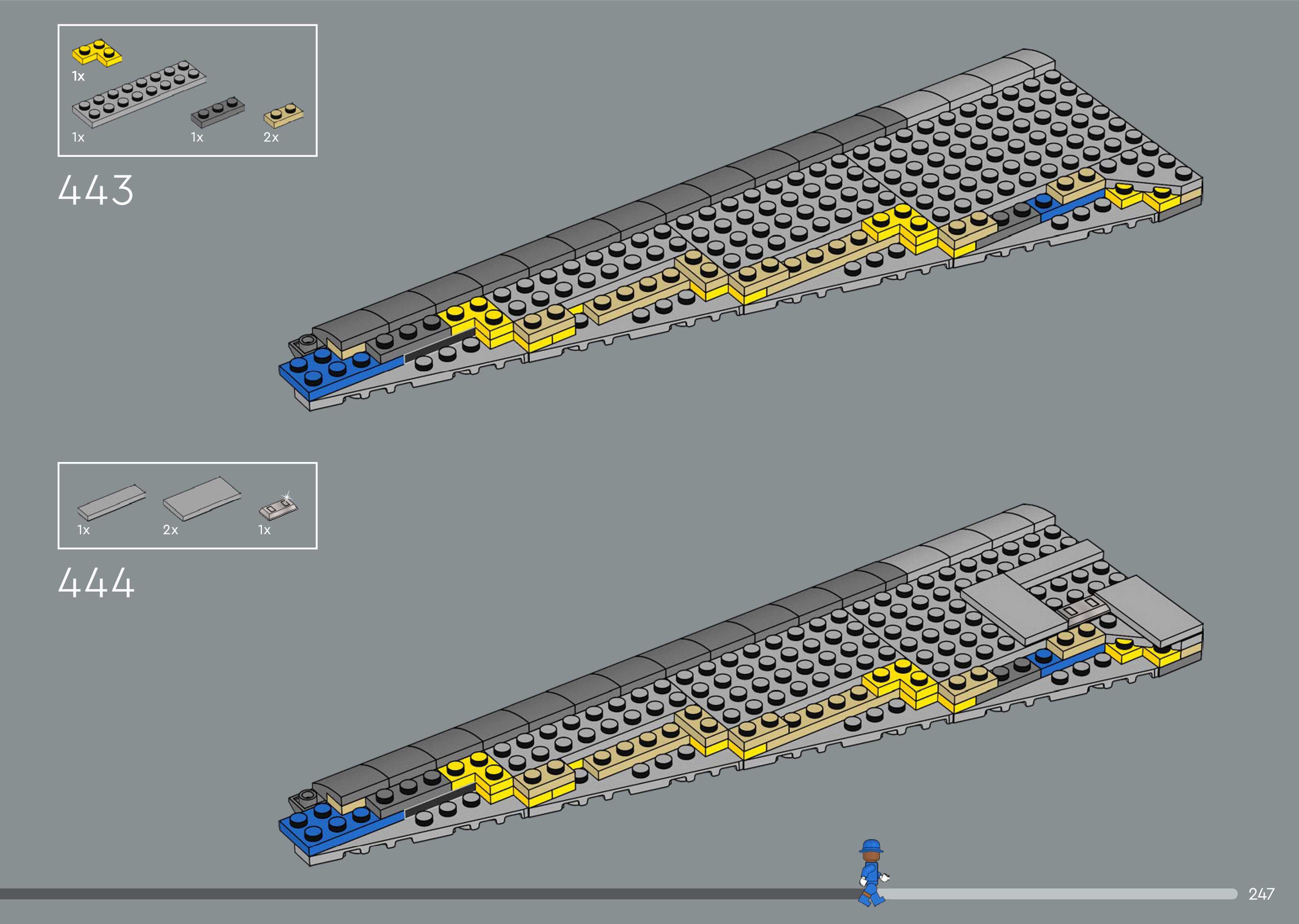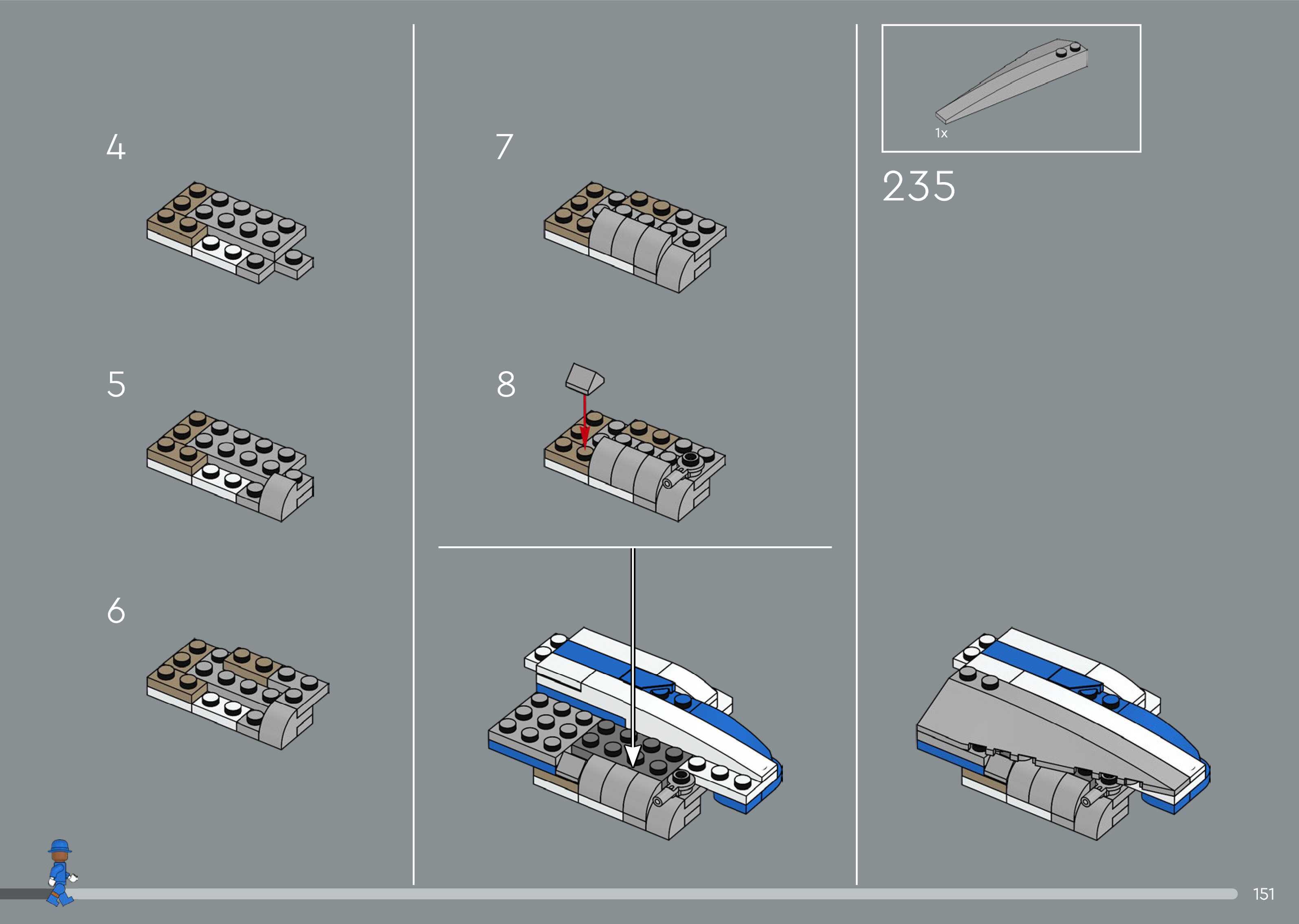 The assembly guide is prepared in a very understandable way for children and adult LEGO enthusiasts. A total of 296 picture galleries are shown, explaining the step-by-step construction stages for 1 different structures.