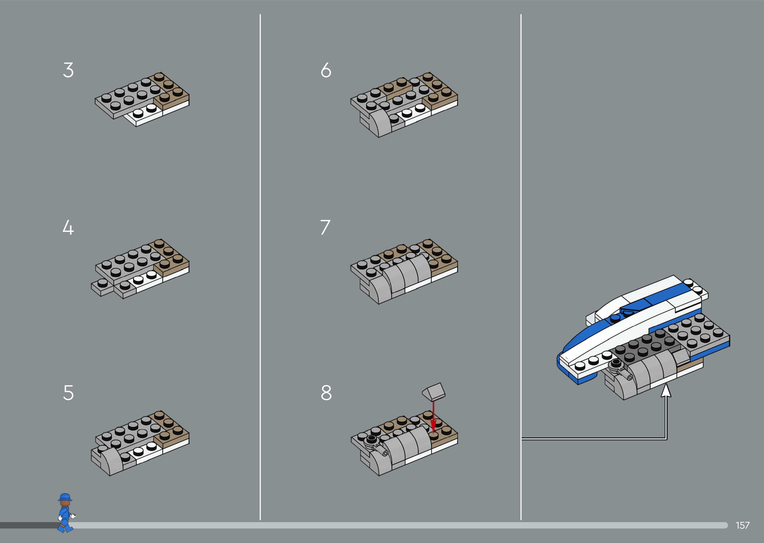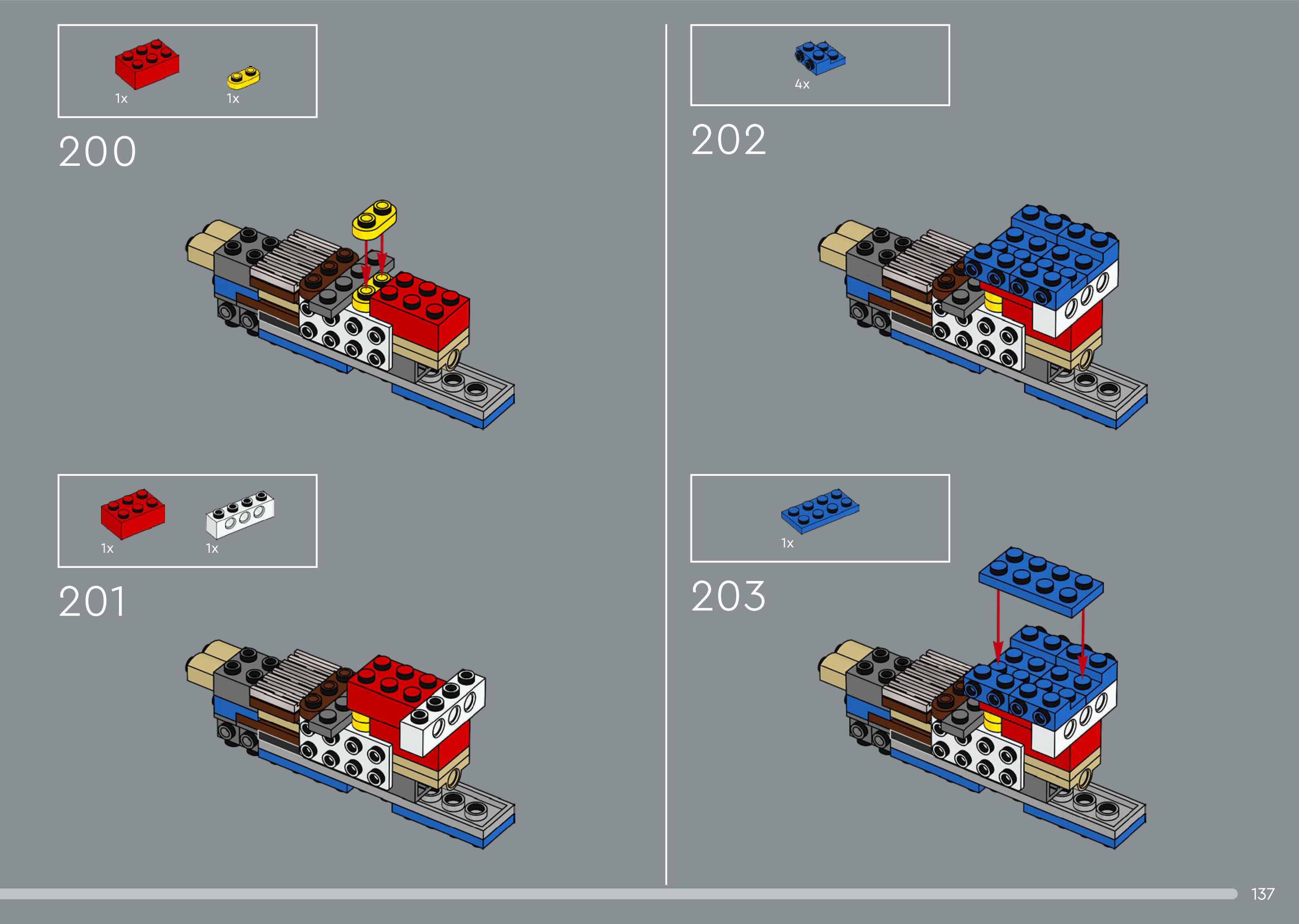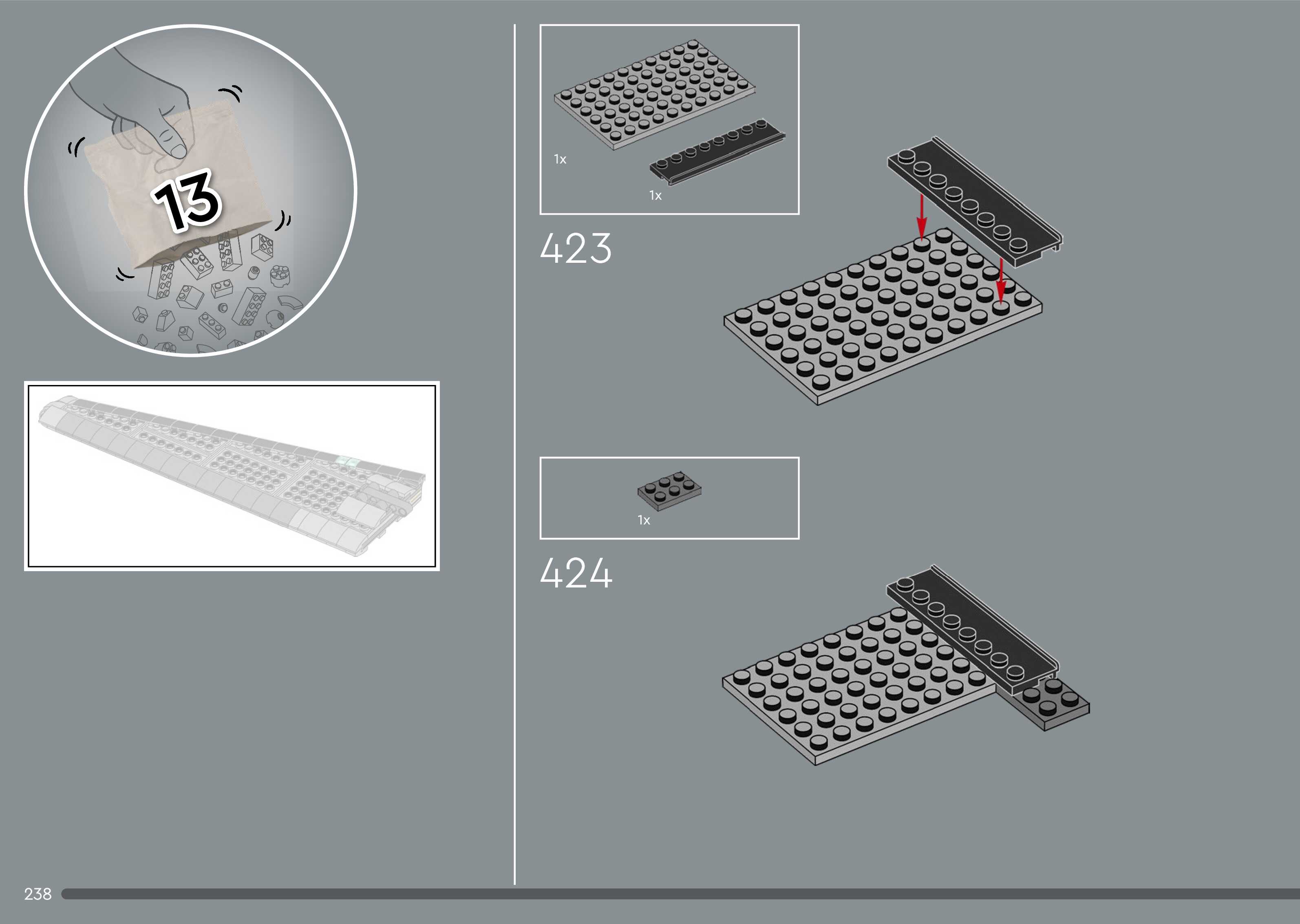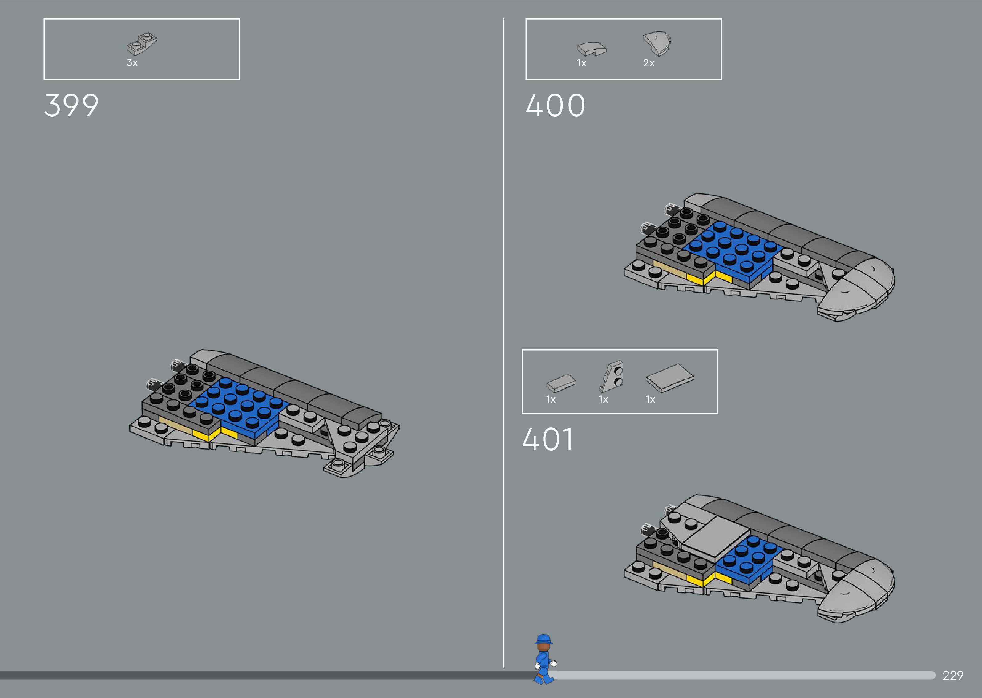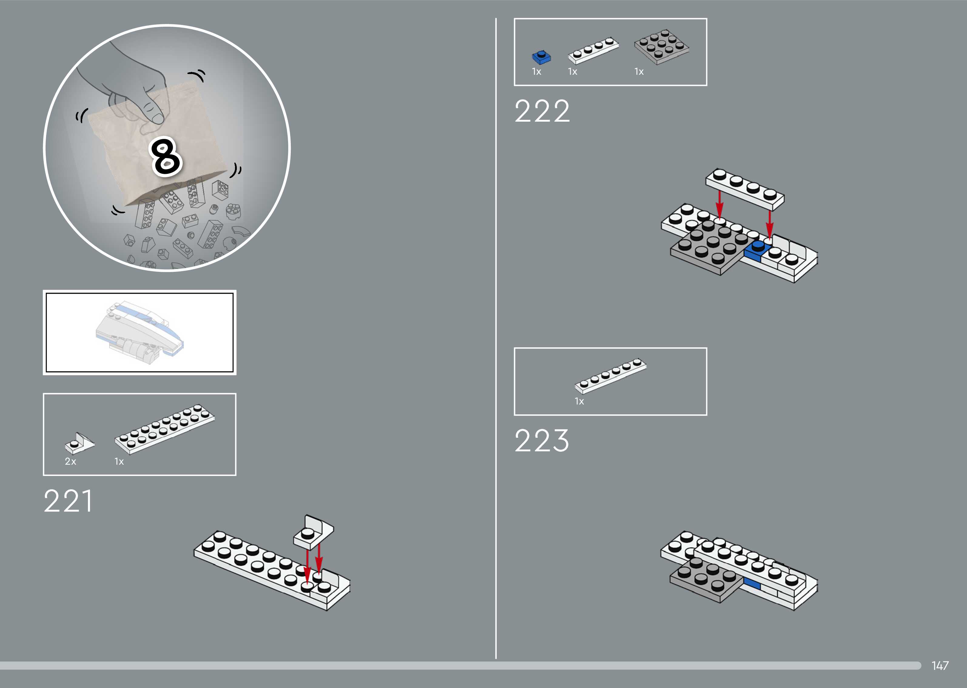 The assembly guide is prepared in a very understandable way for children and adult LEGO enthusiasts. A total of 296 picture galleries are shown, explaining the step-by-step construction stages for 1 different structures.