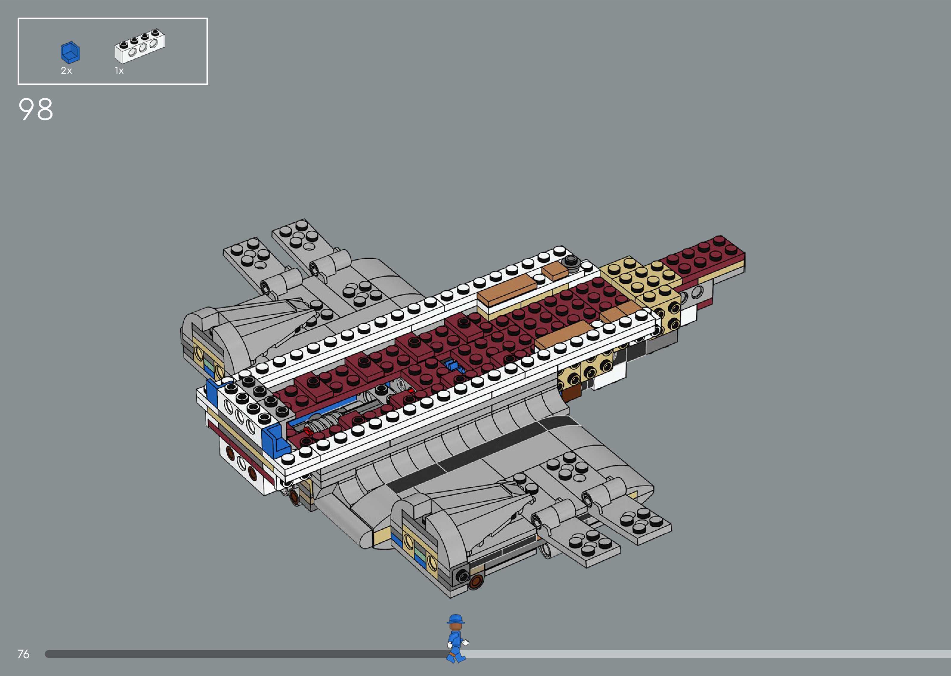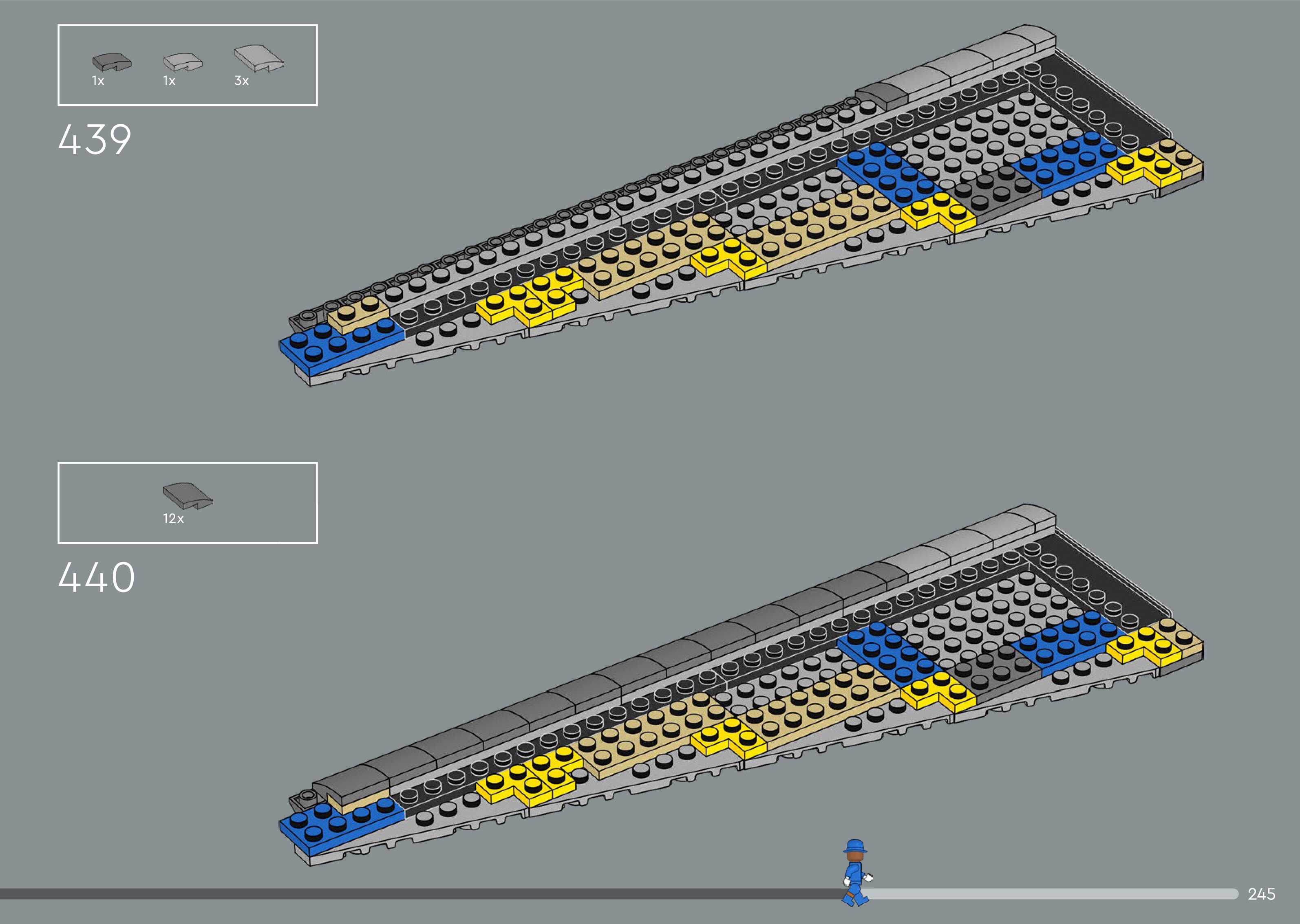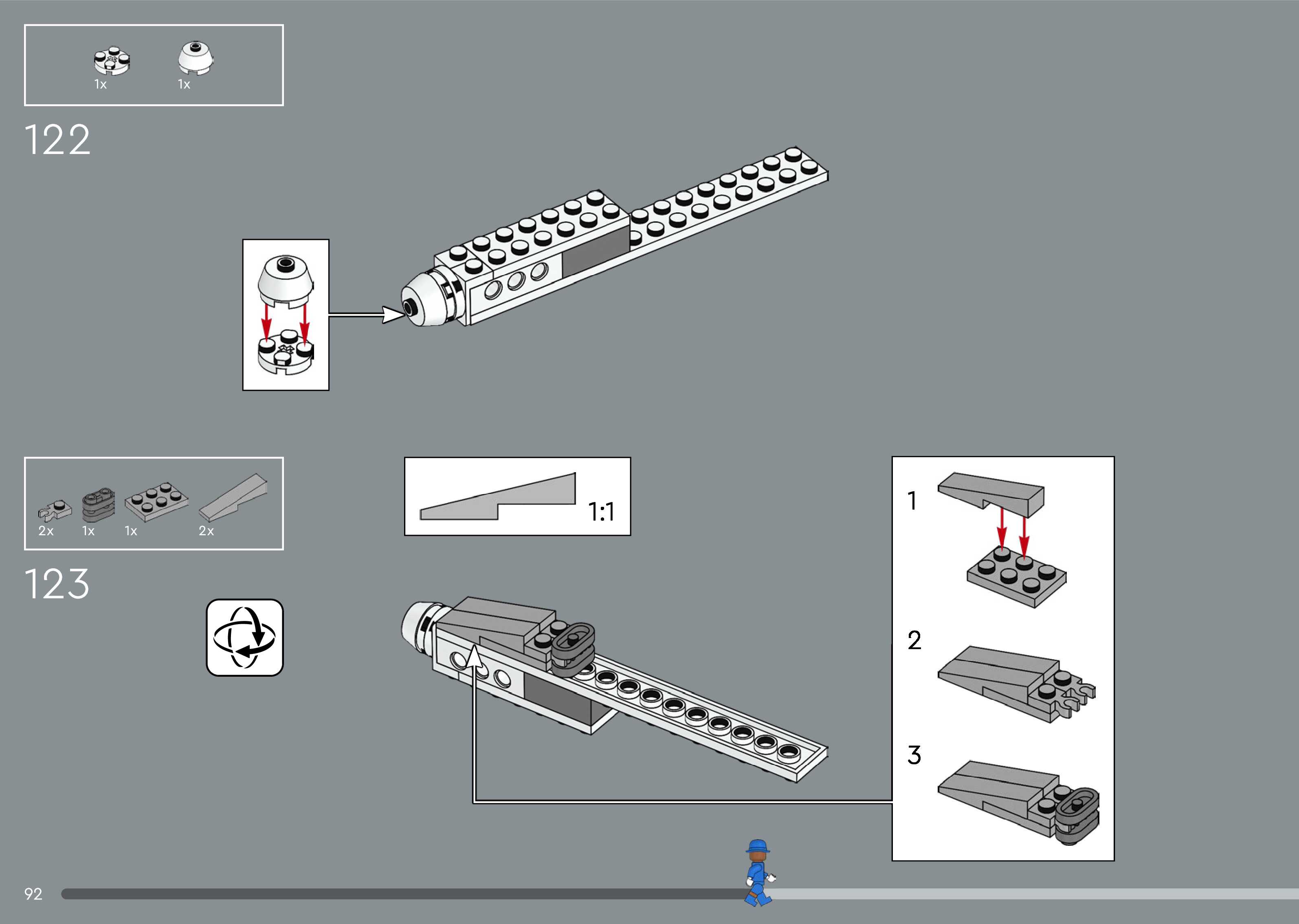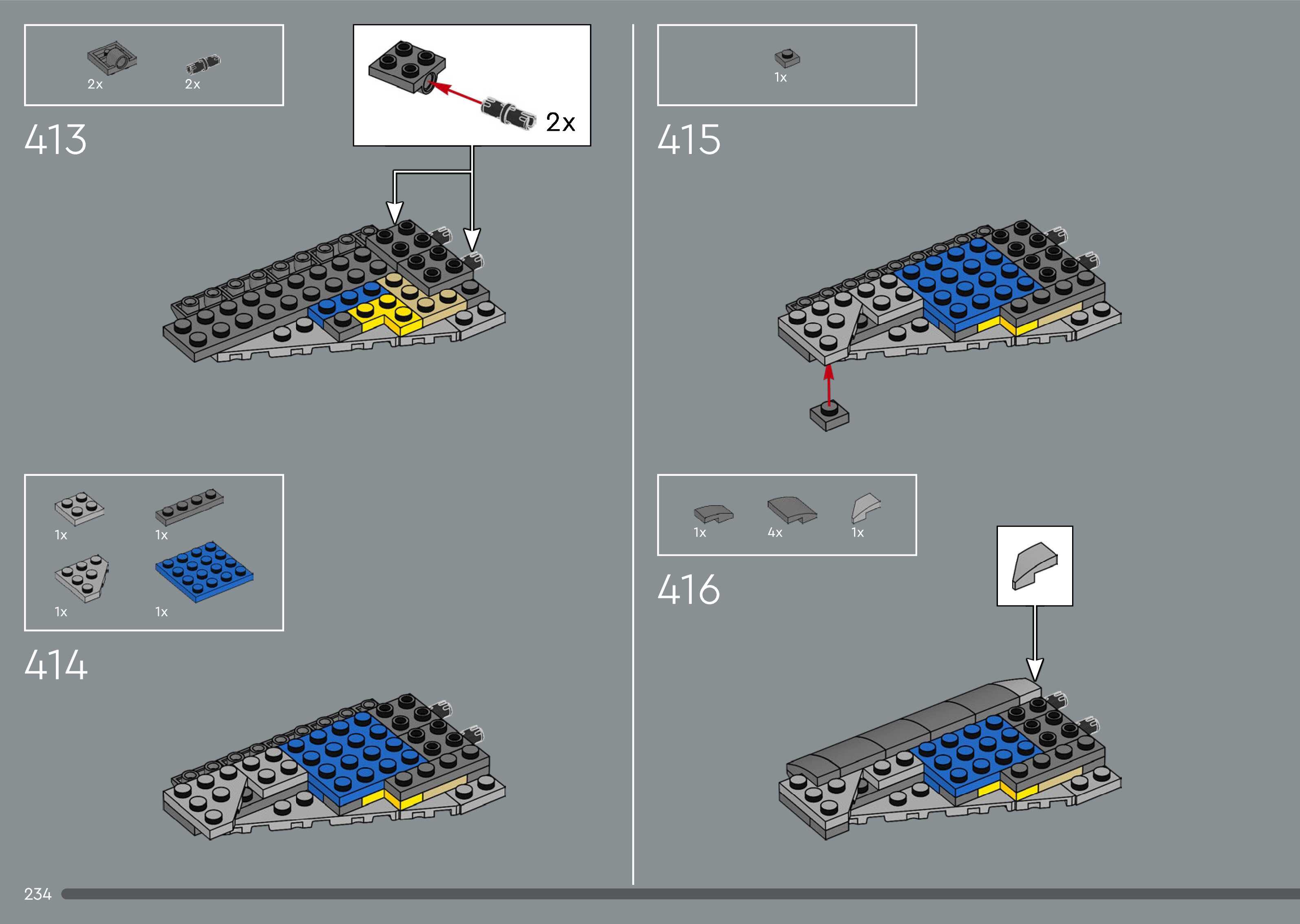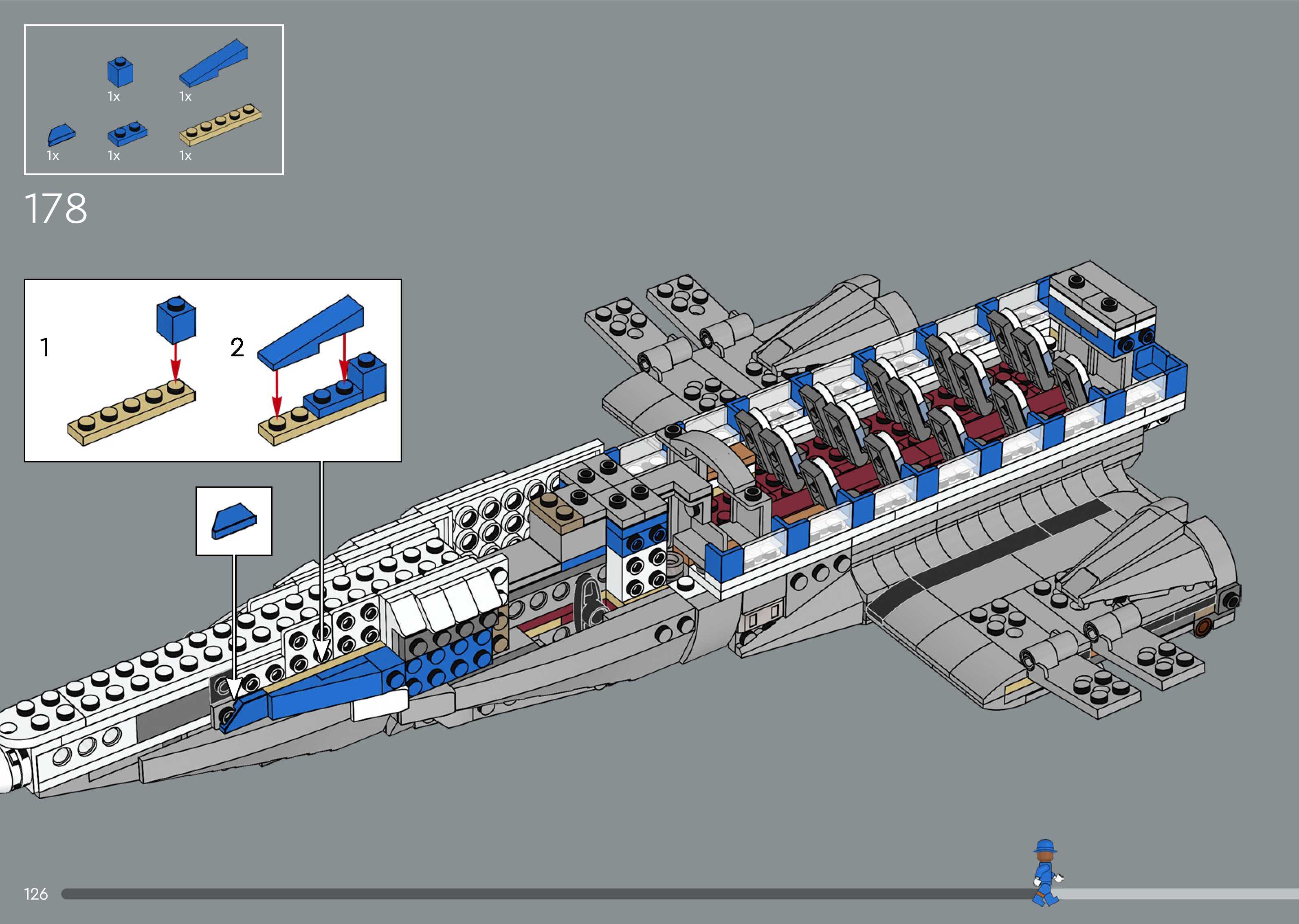 The assembly guide is prepared in a very understandable way for children and adult LEGO enthusiasts. A total of 296 picture galleries are shown, explaining the step-by-step construction stages for 1 different structures.